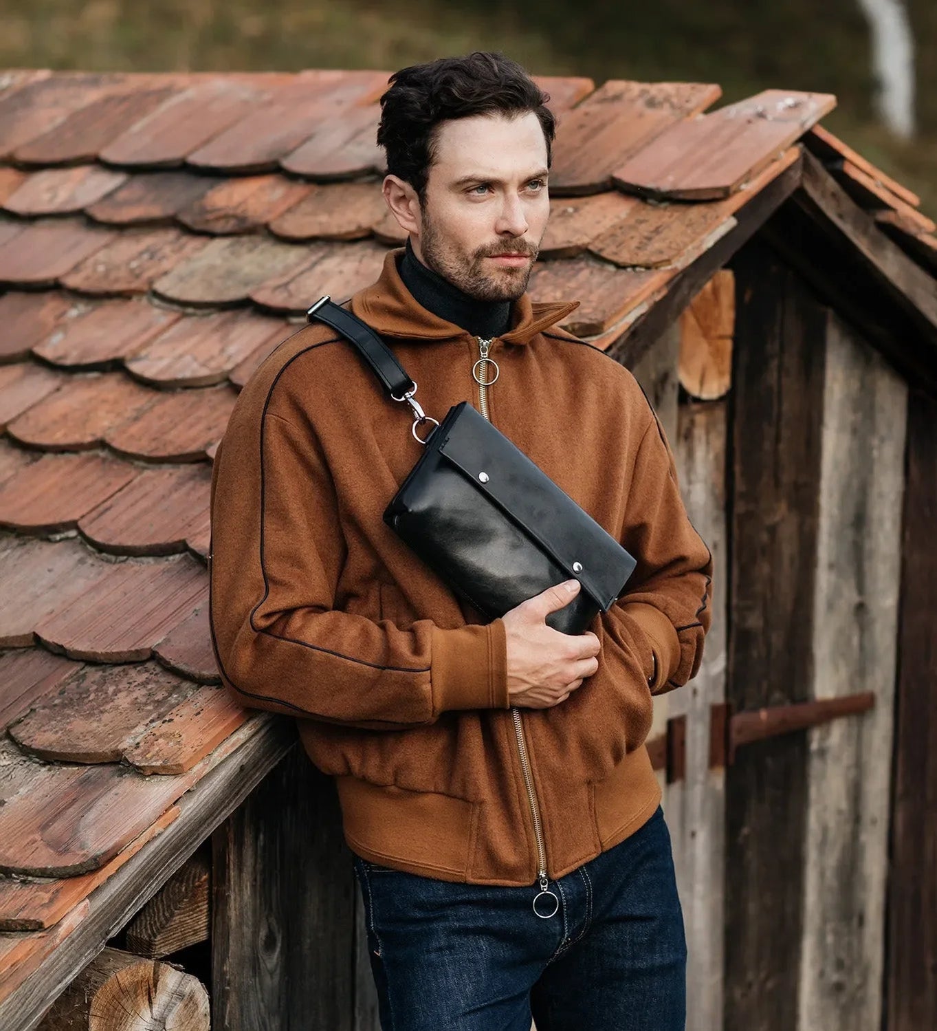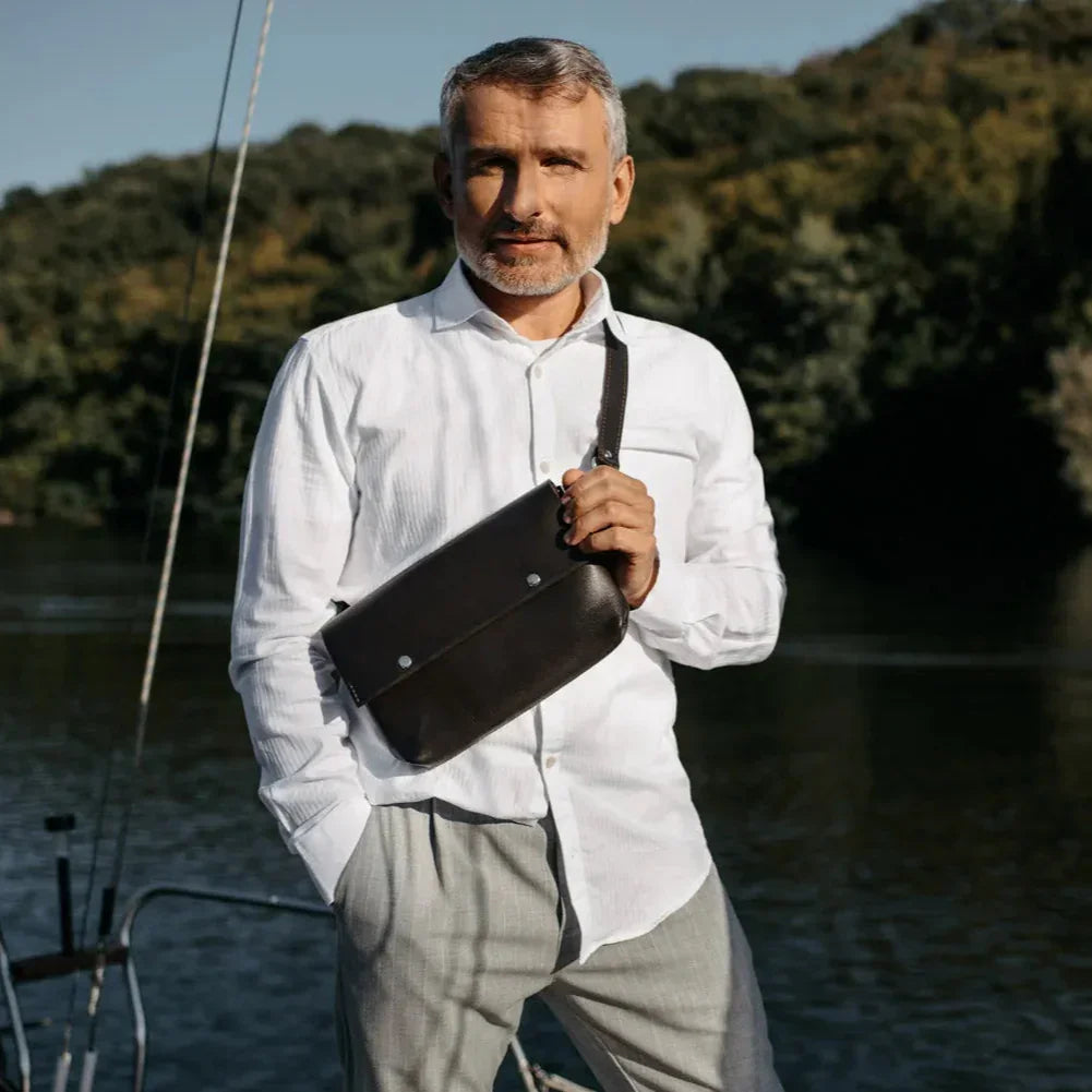 Men's Leather Crossbody Bag L | Smooth Black - Skin and Skin