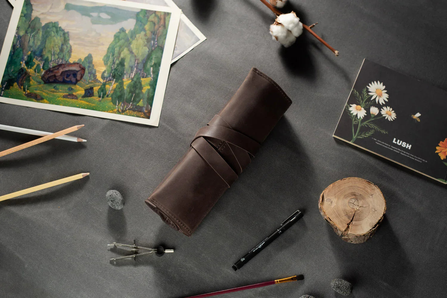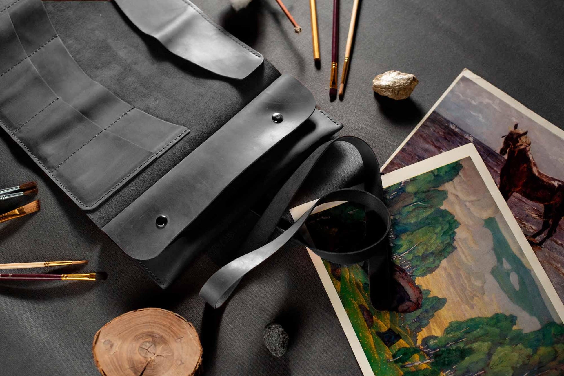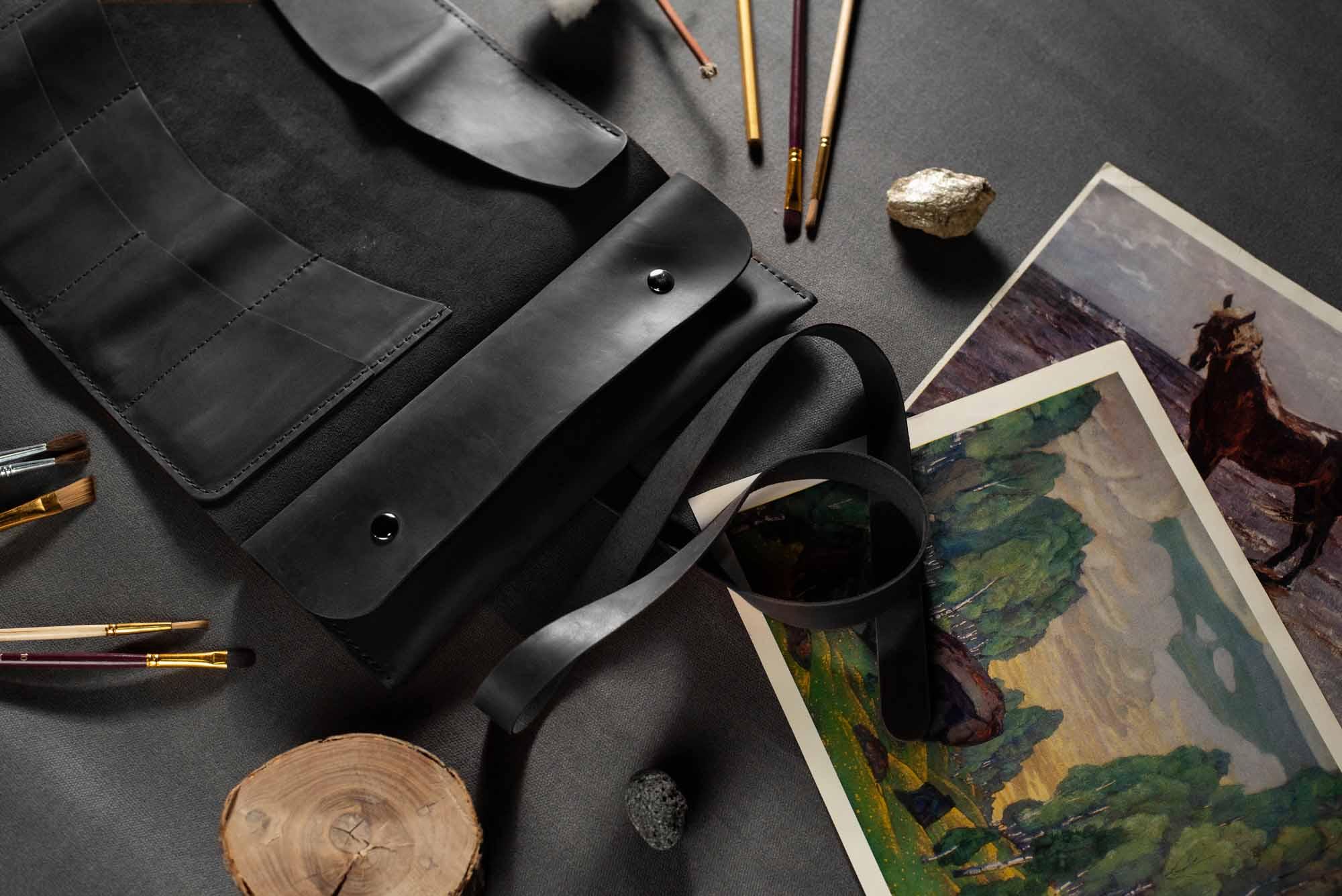 Шкіряний рол-органайзер – універсальний футляр для пензлів, інструментів або косметики