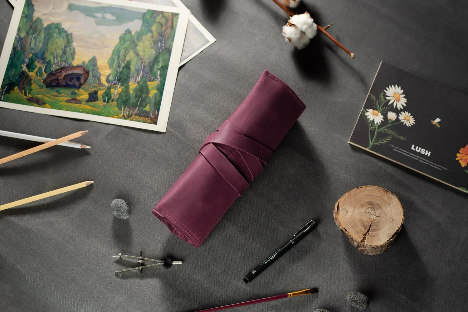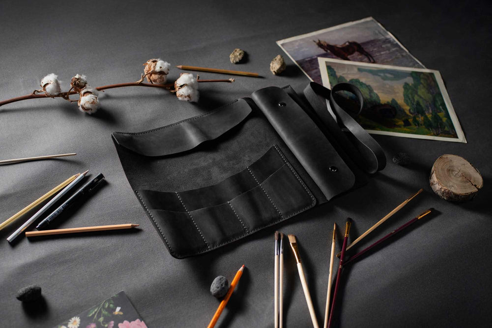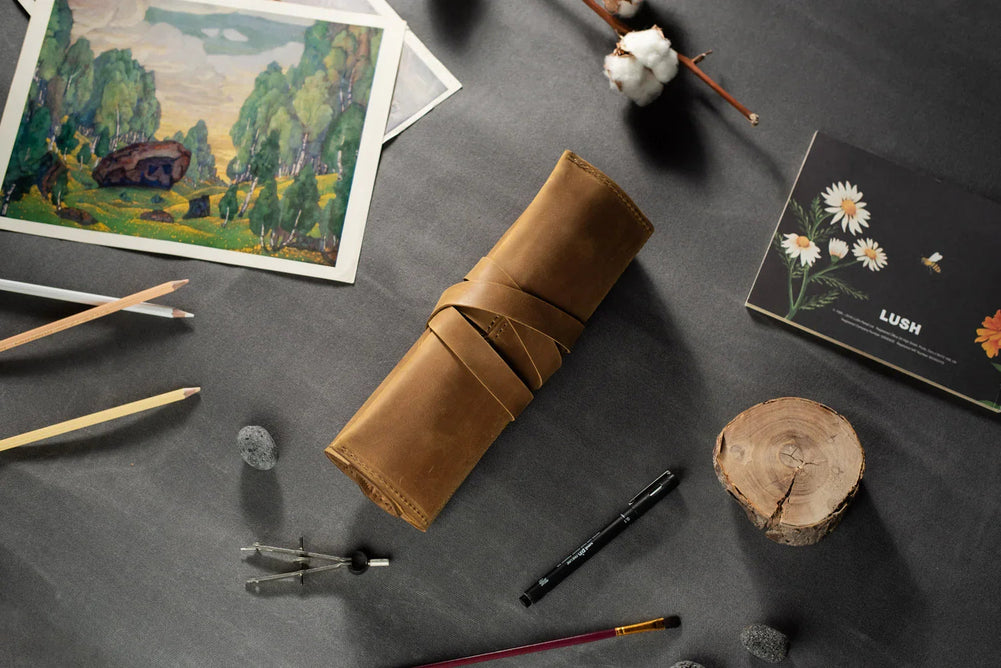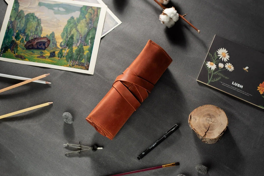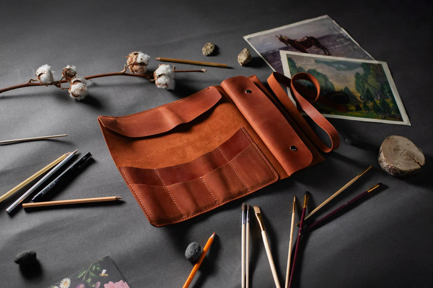 Шкіряний рол-органайзер – універсальний футляр для пензлів, інструментів або косметики