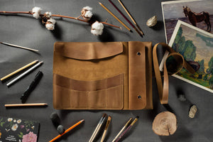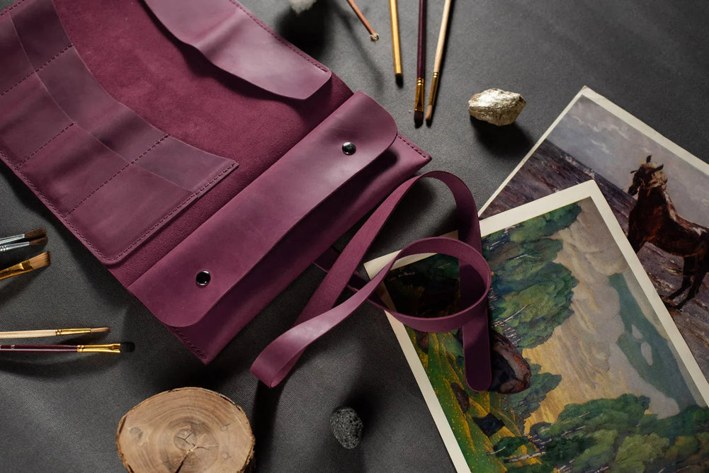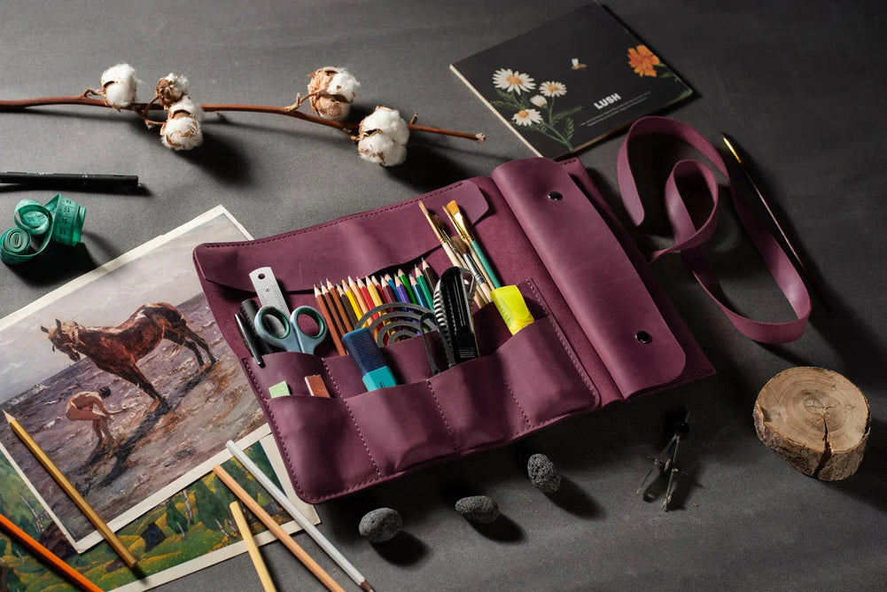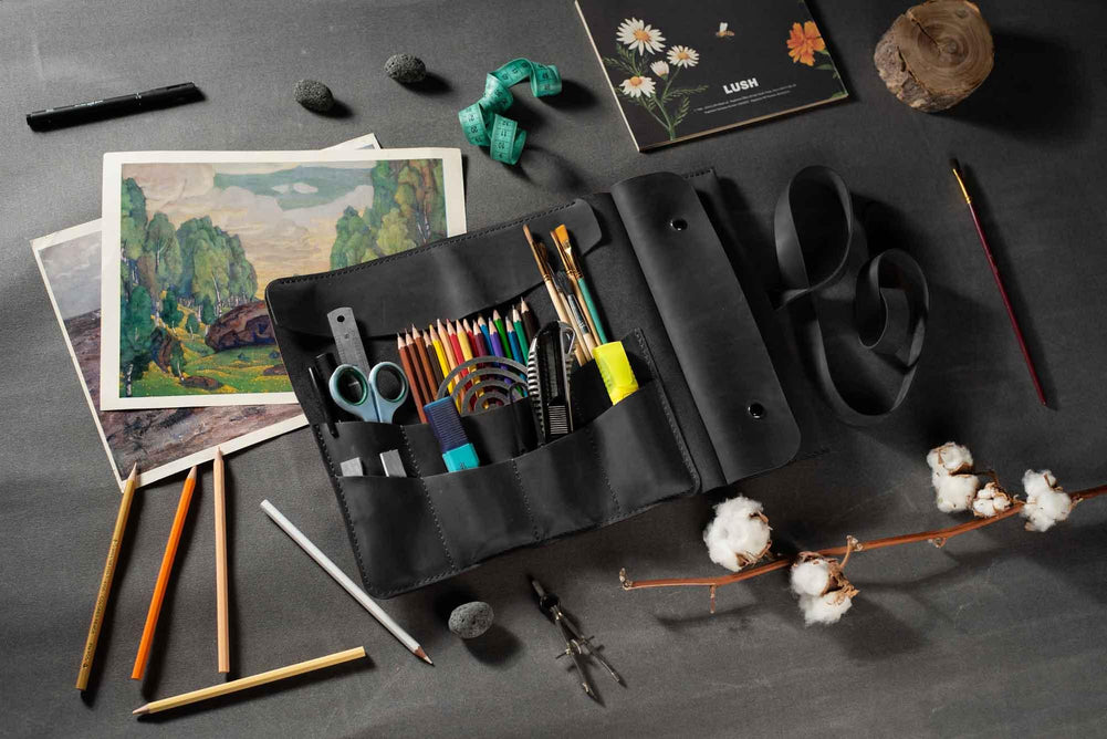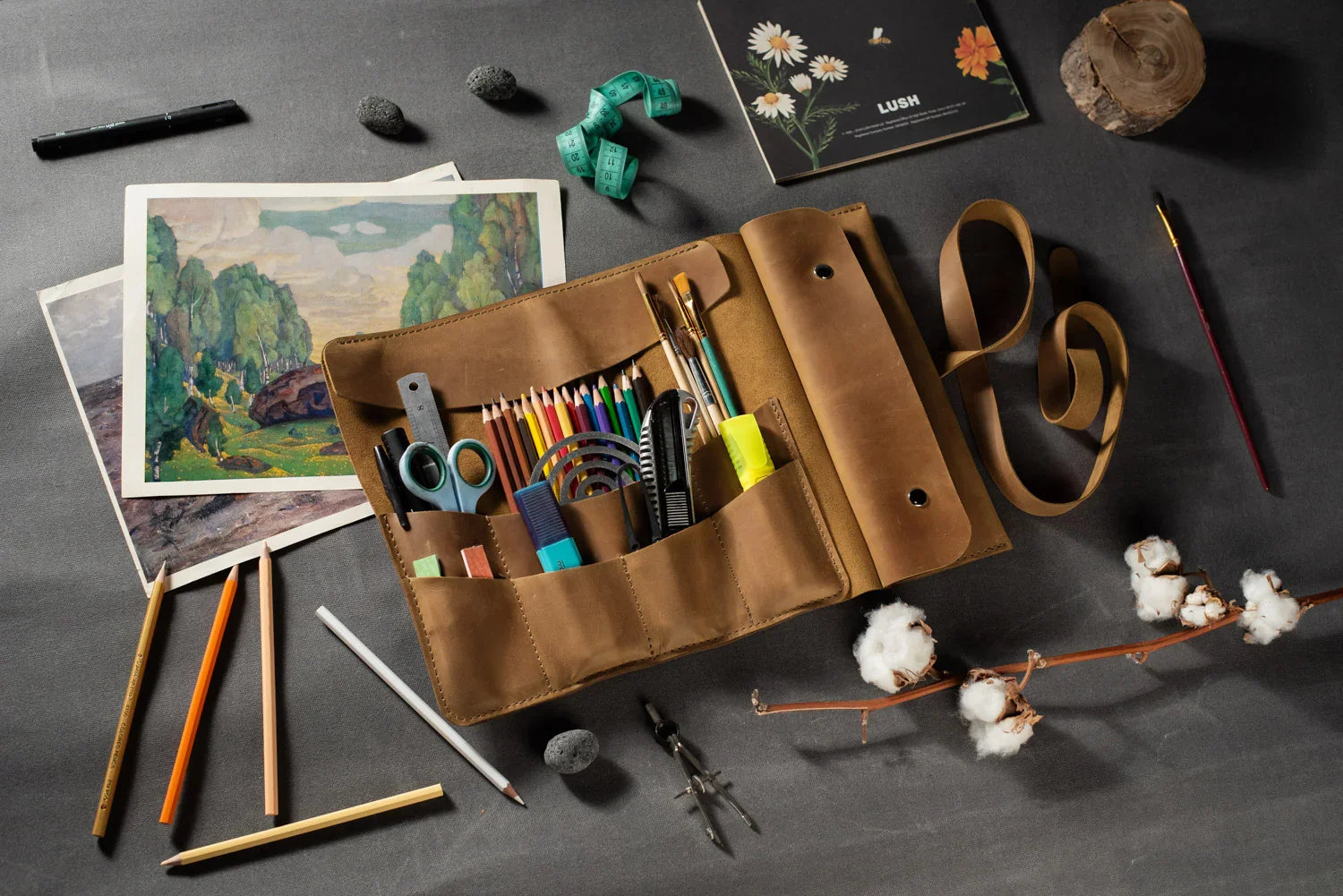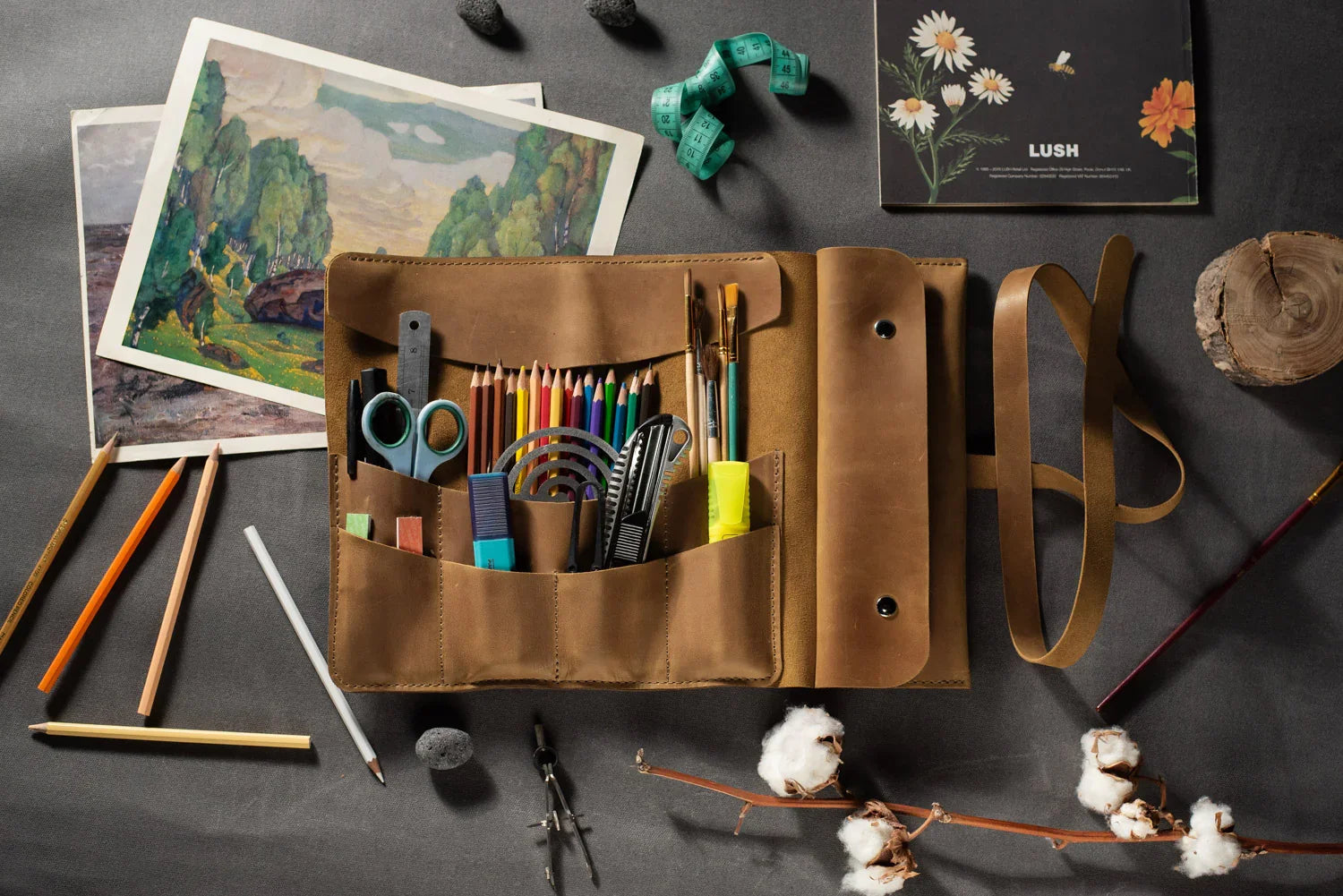 Практичний шкіряний органайзер створений для майстрів, художників, студентів і фахівців, яким потрібне компактне рішення для зберігання робочих інструментів. У ньому зручно тримати пензлі, ручки, ножі, косметичні пензлі чи креслярські приладдя – все під рукою й у безпеці.