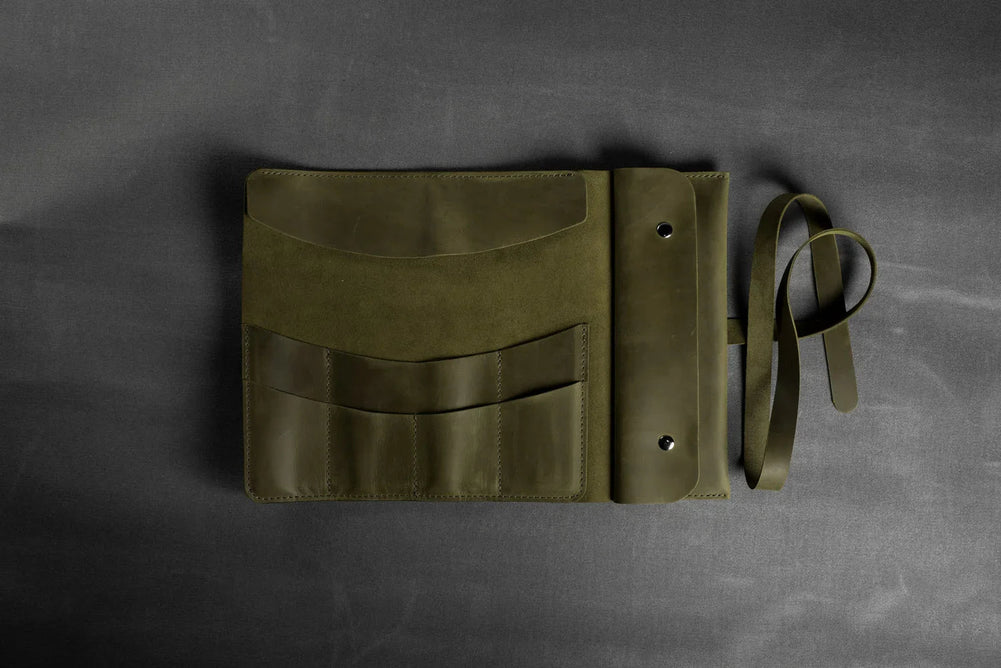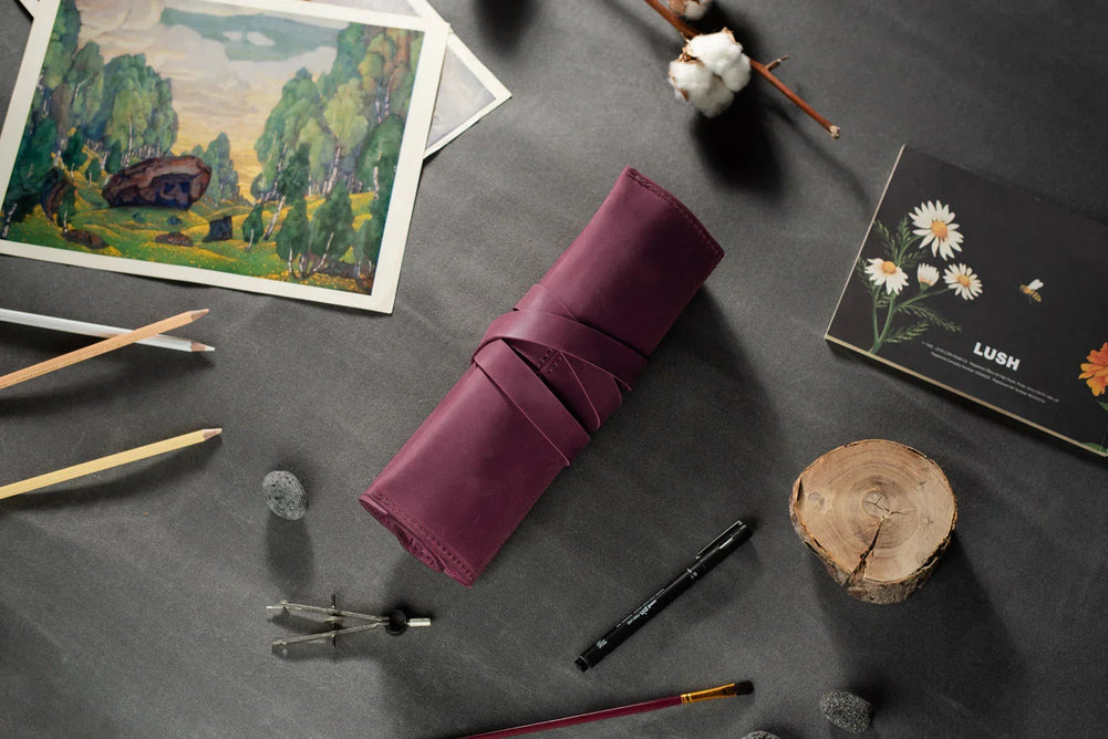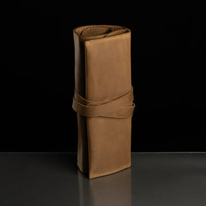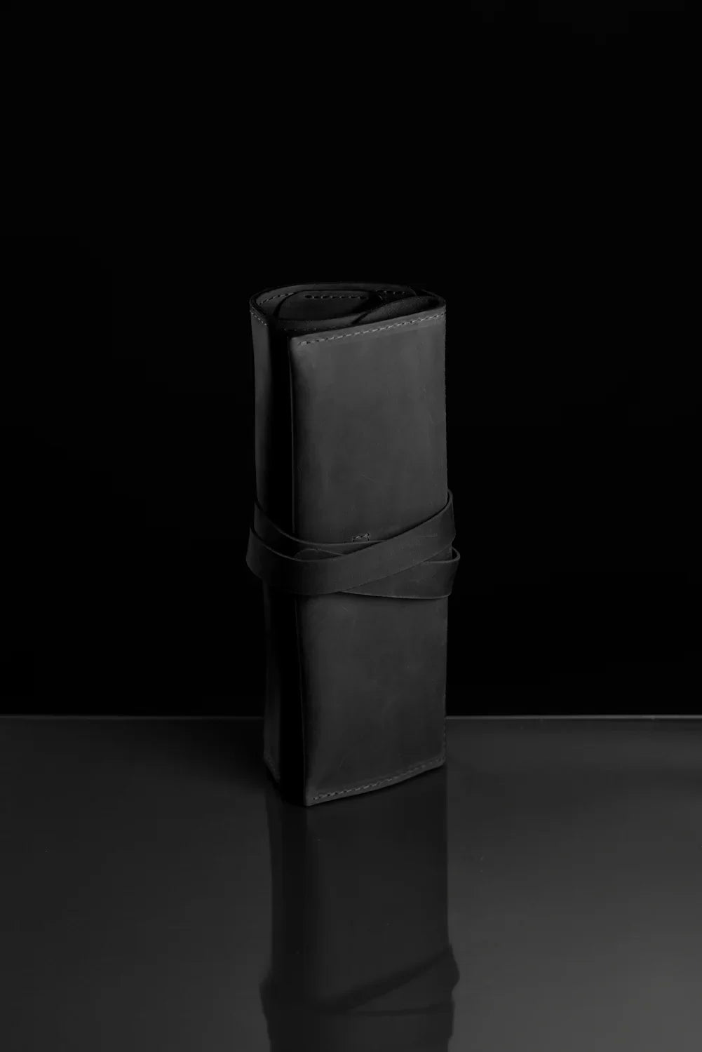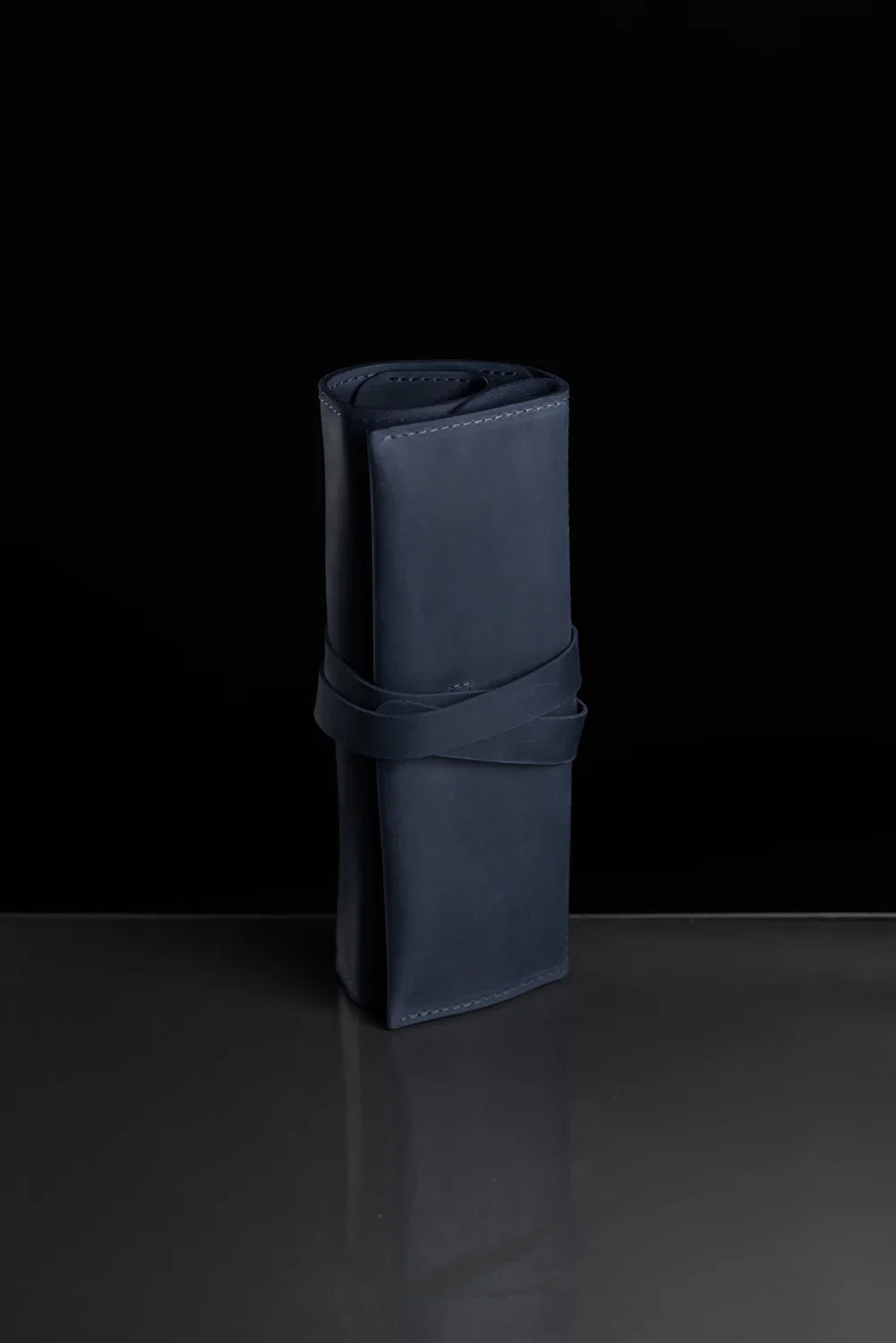 Згортайте футляр у рулон і фіксуйте шкіряним ремінцем – він легко поміщається у рюкзак, сумку або валізу.