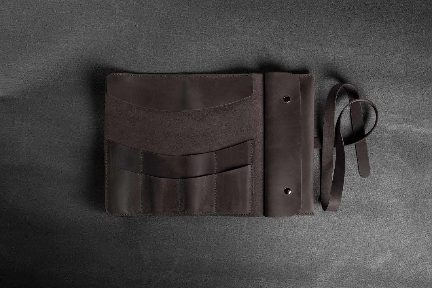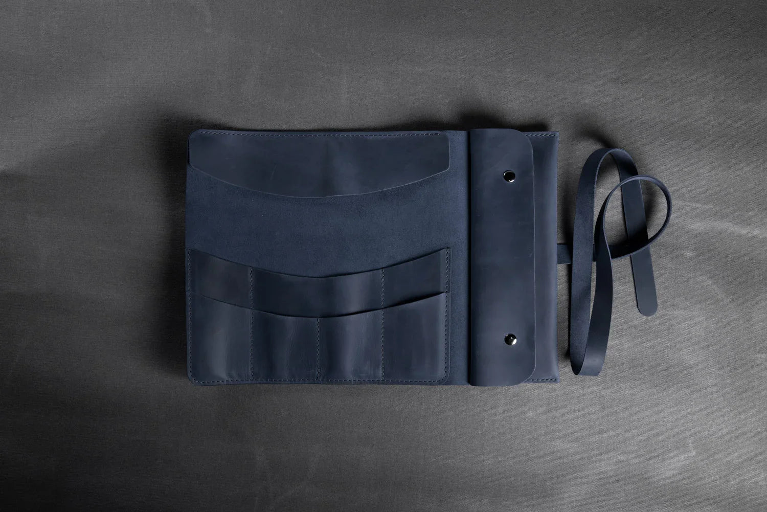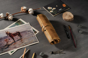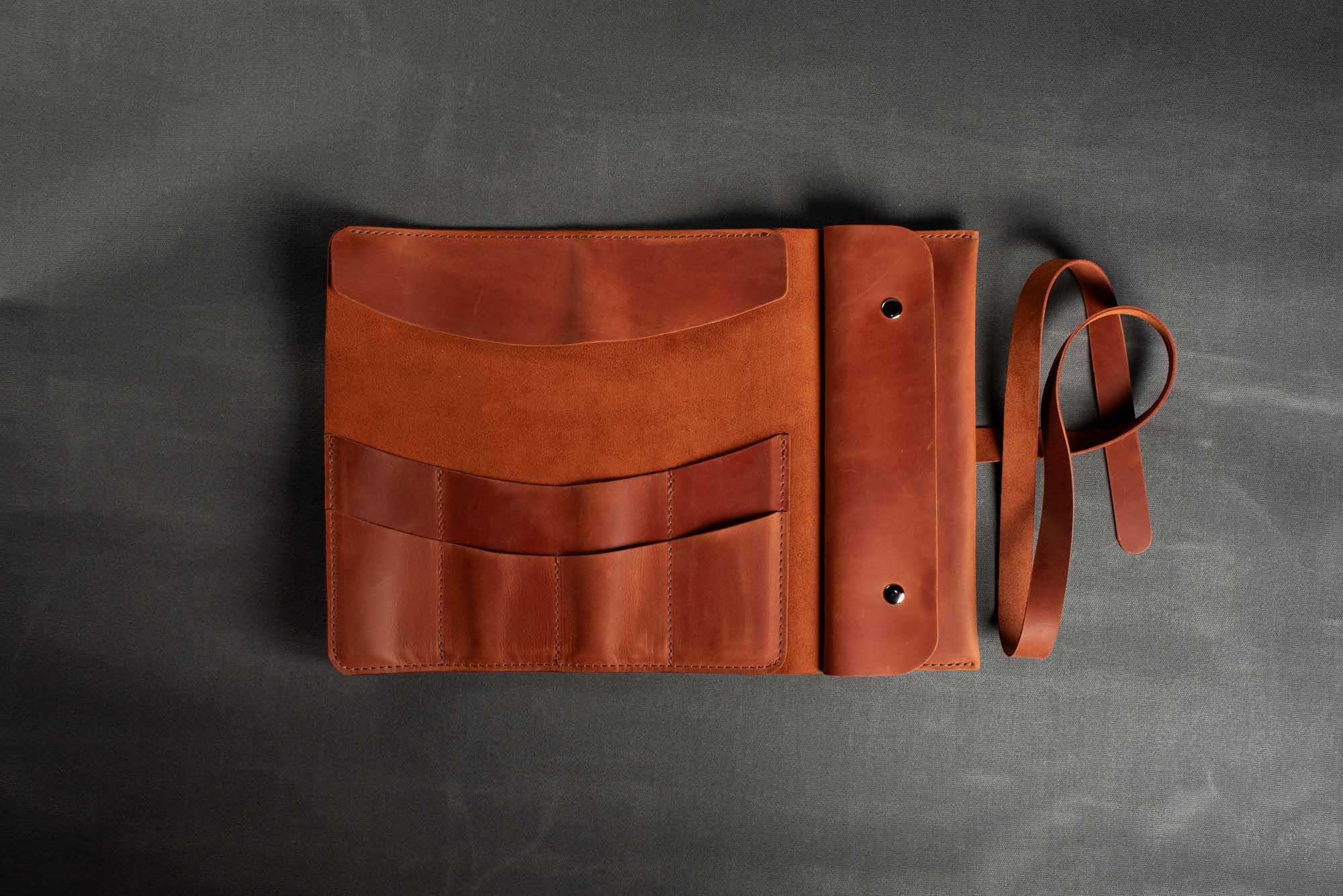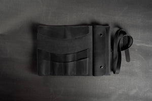 Згортайте футляр у рулон і фіксуйте шкіряним ремінцем – він легко поміщається у рюкзак, сумку або валізу.