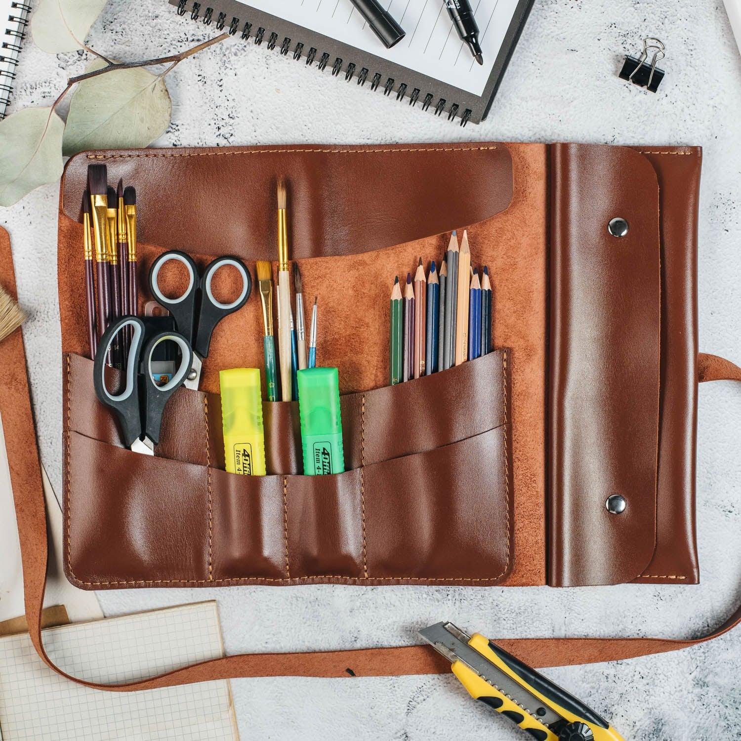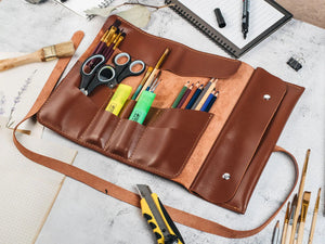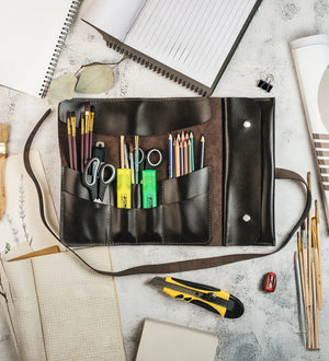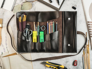 Шкіряний рол для інструментів, пензлів чи косметики — елегантний та зручний у щоденному використанні