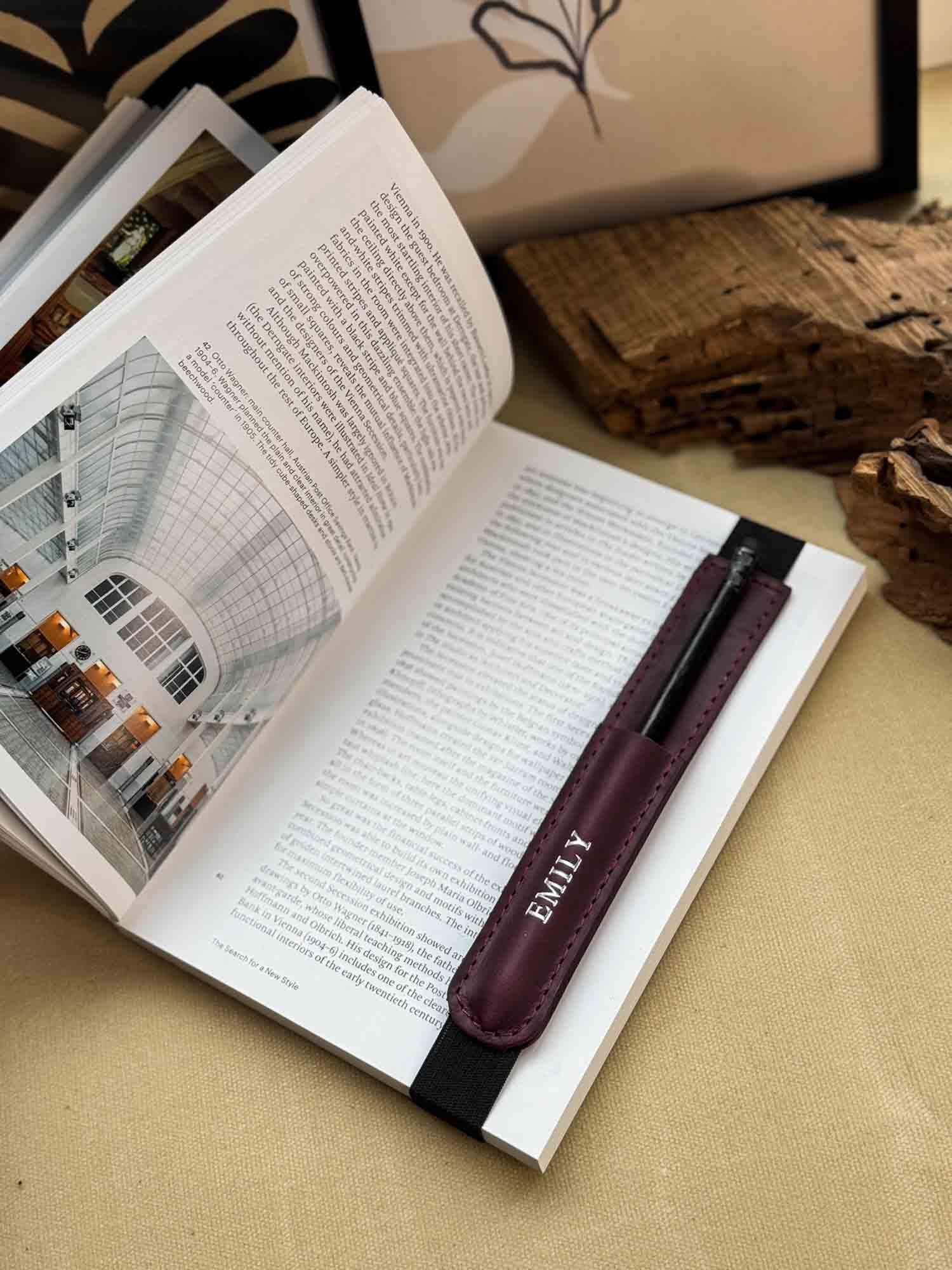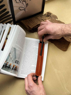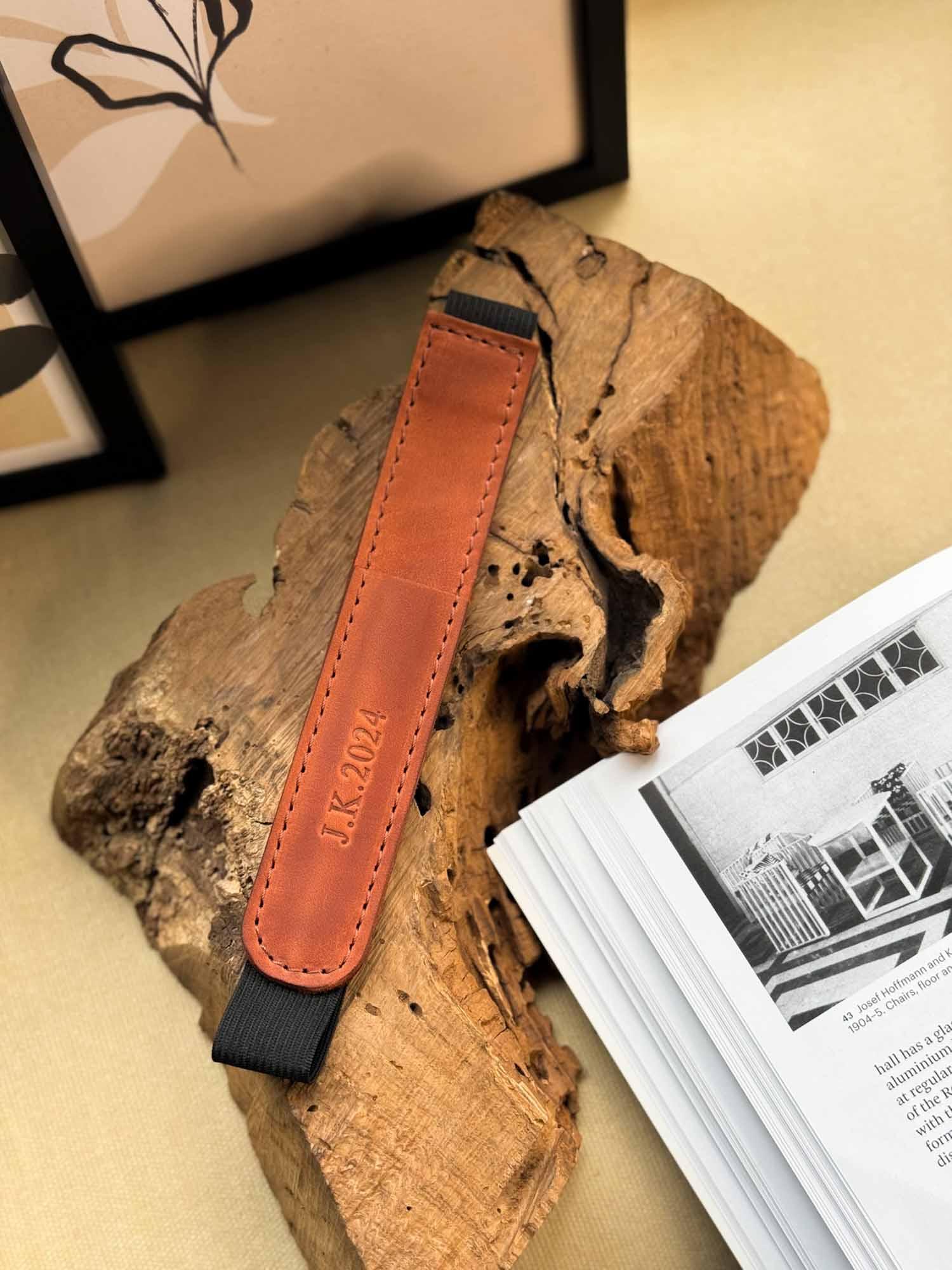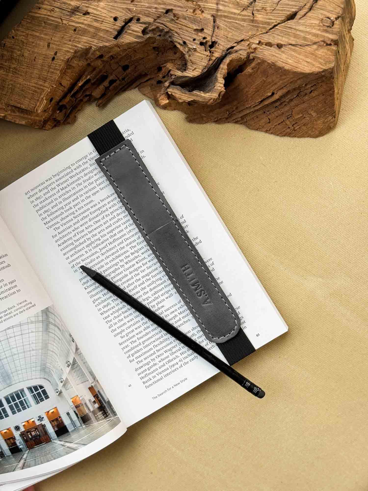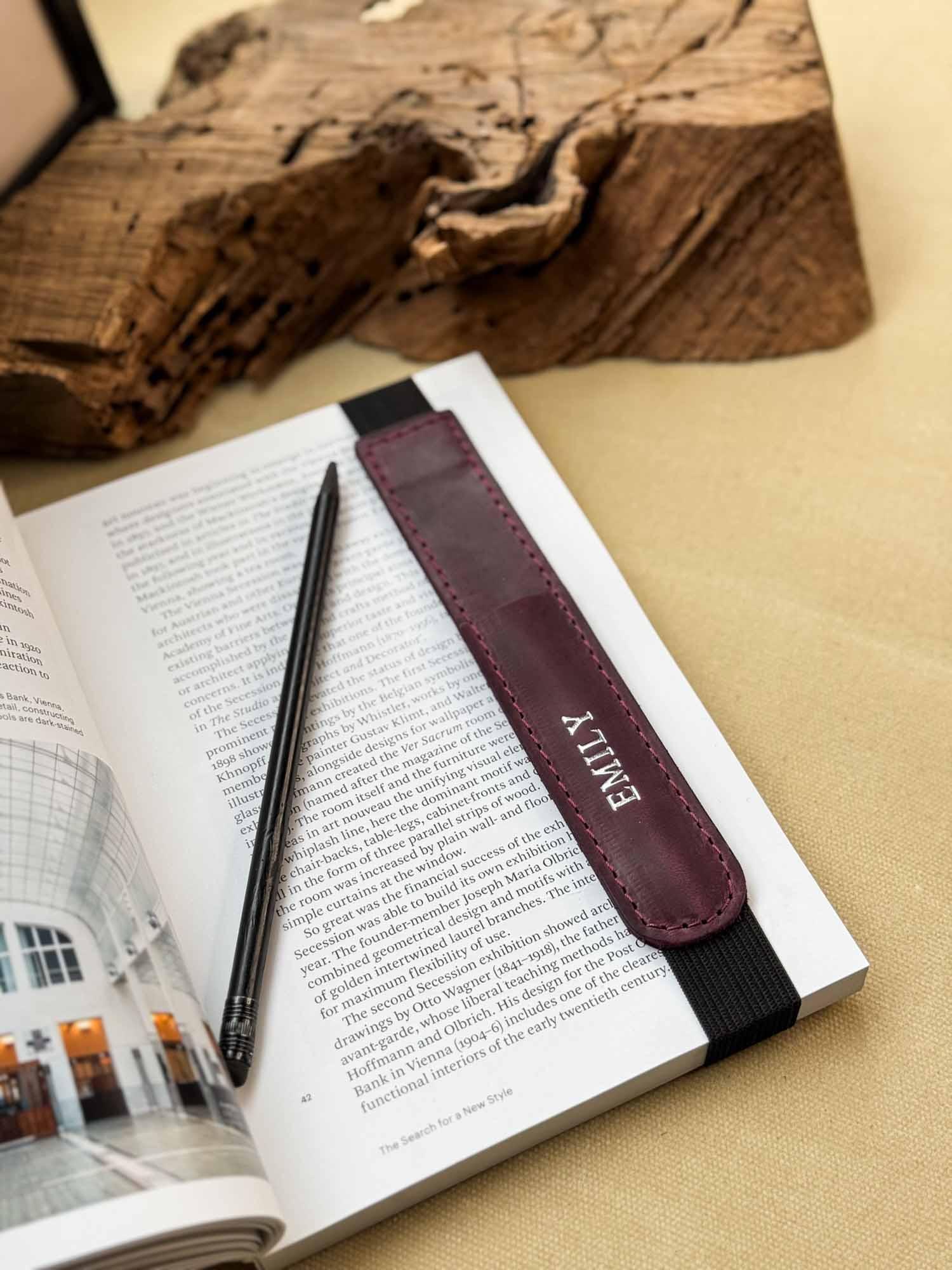 Універсальна шкіряна закладка з тримачем для олівця – регульована та персоналізована