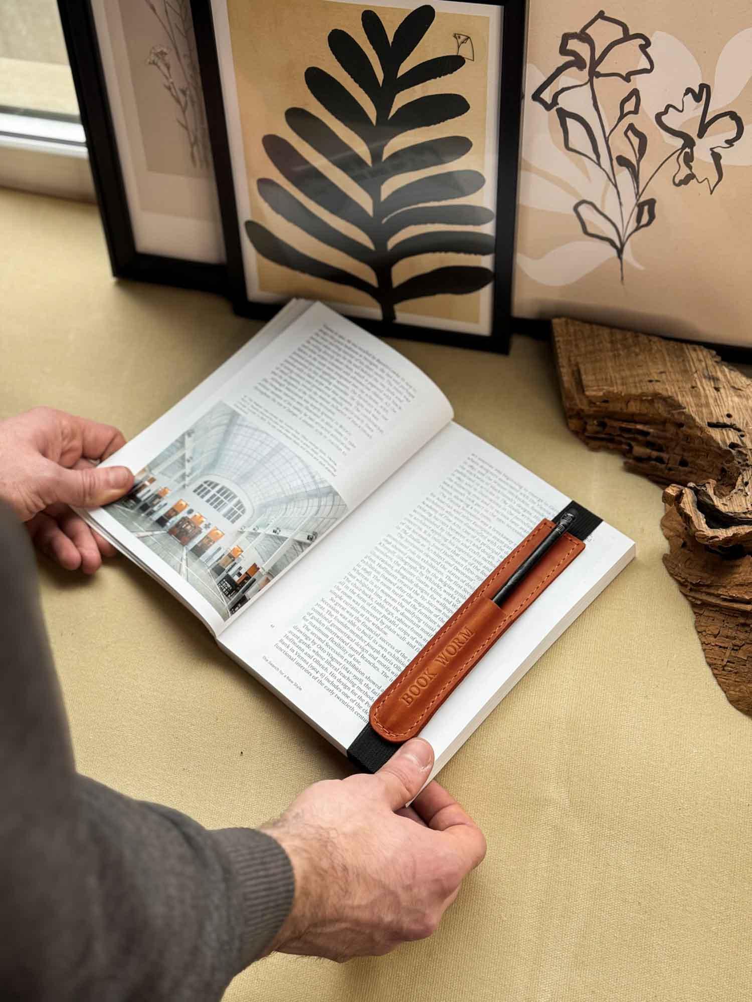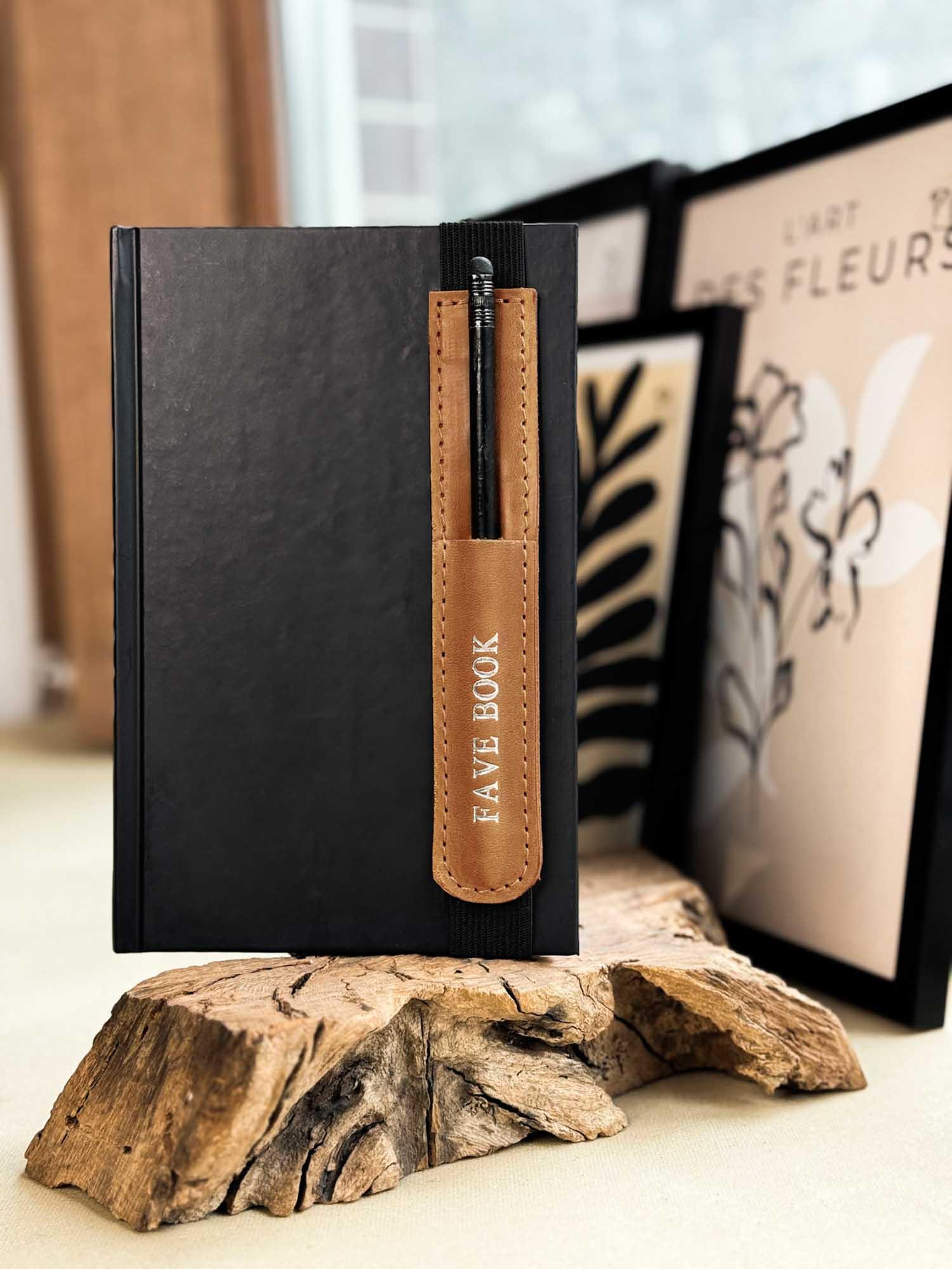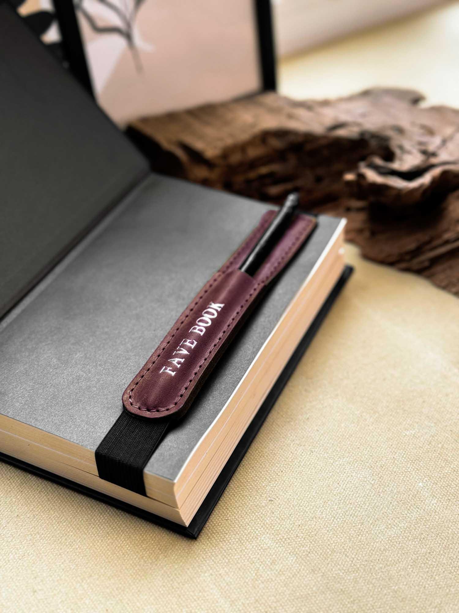Універсальна шкіряна закладка з тримачем для олівця – регульована та персоналізована