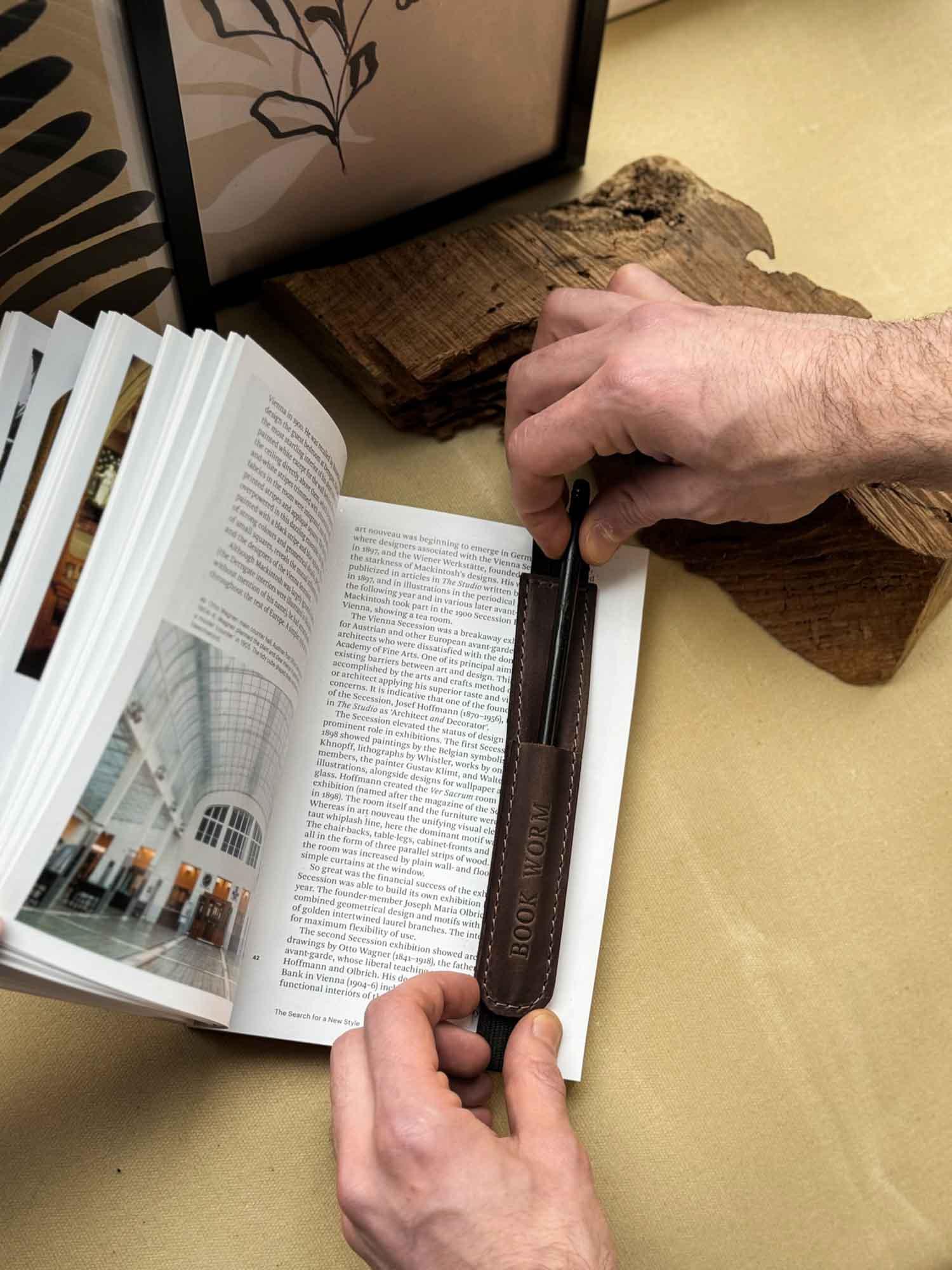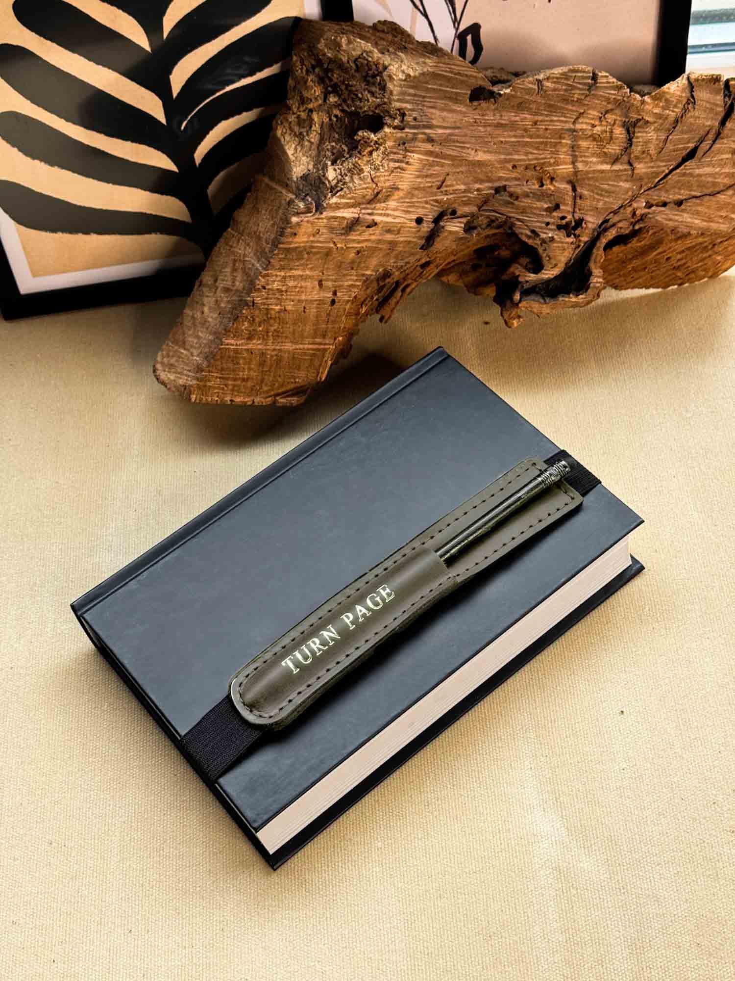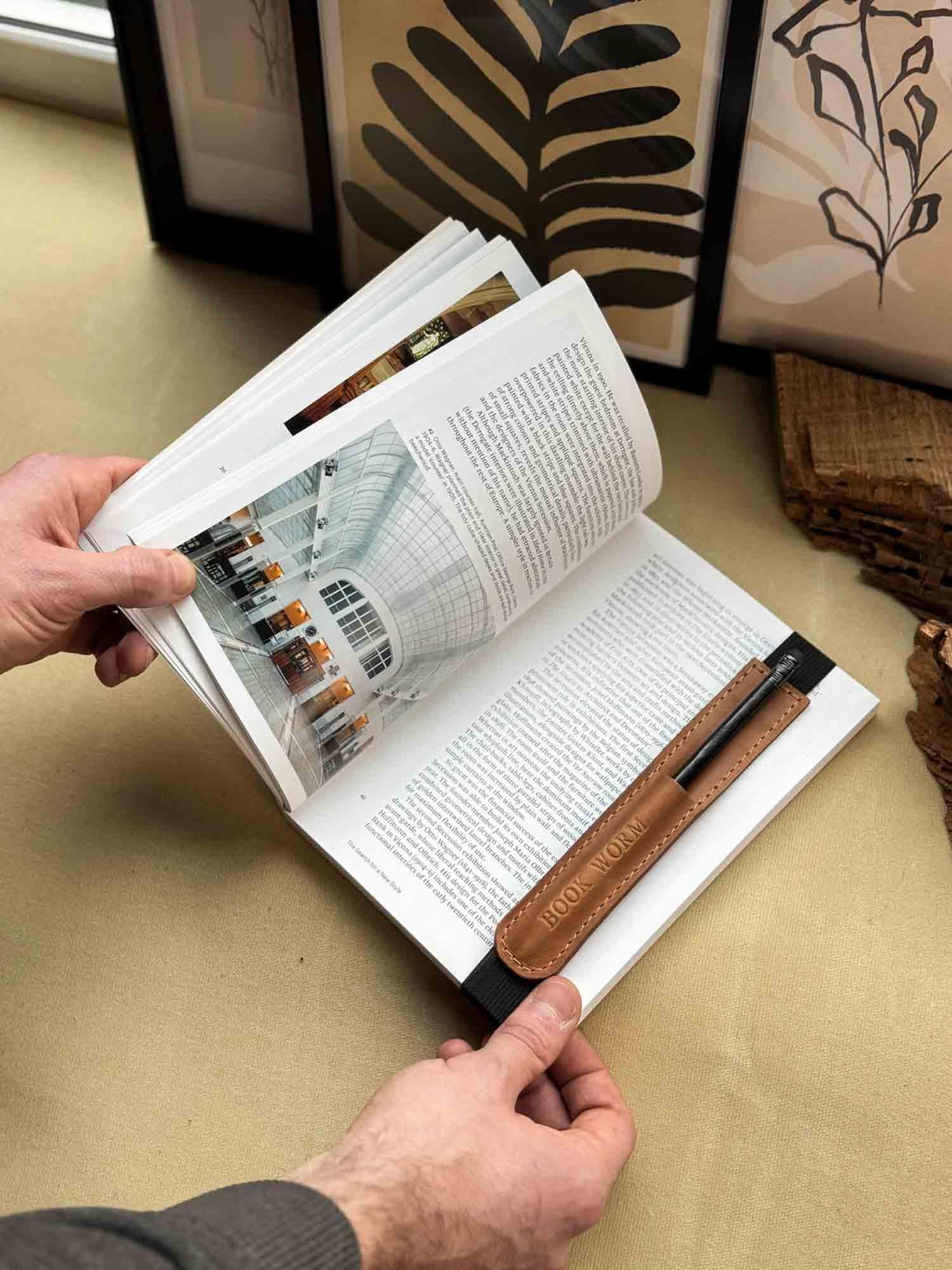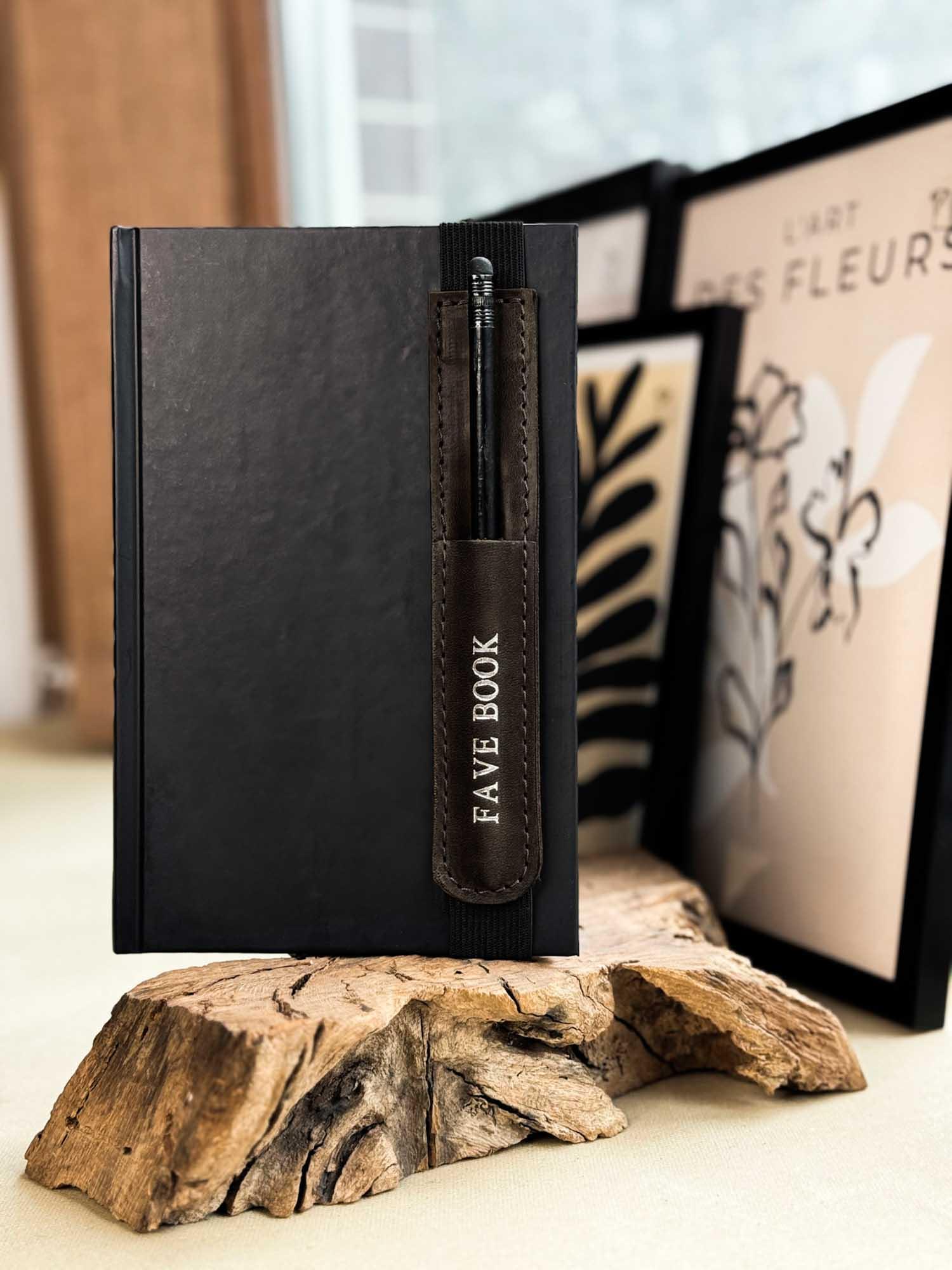 Універсальна шкіряна закладка з тримачем для олівця – регульована та персоналізована