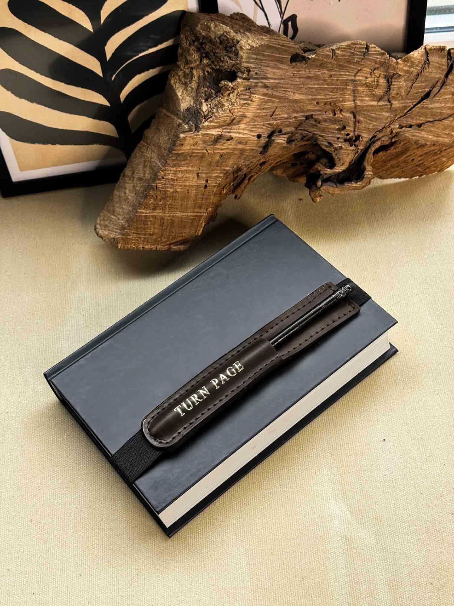 Еластична стрічка всередині / шкіра зовні – зручно тримати ручку або олівець зовні для швидкого доступу до записів.