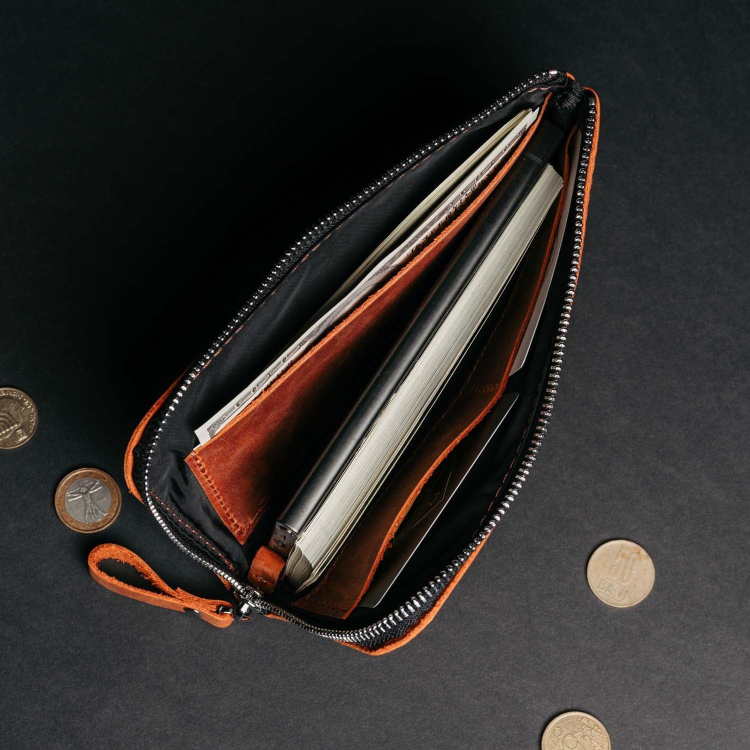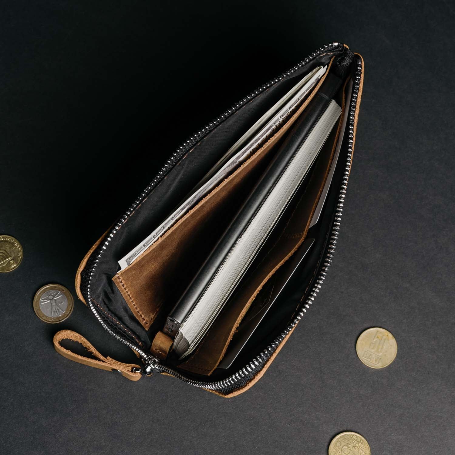Преміальні аксесуари зі шкіри, виготовлені вручну у власній майстерні, створені для довговічності. Ми проектуємо їх так, щоб вони не втрачали актуальності з часом, допомагали зменшувати надлишкове споживання та несли особистий характер у кожній деталі.