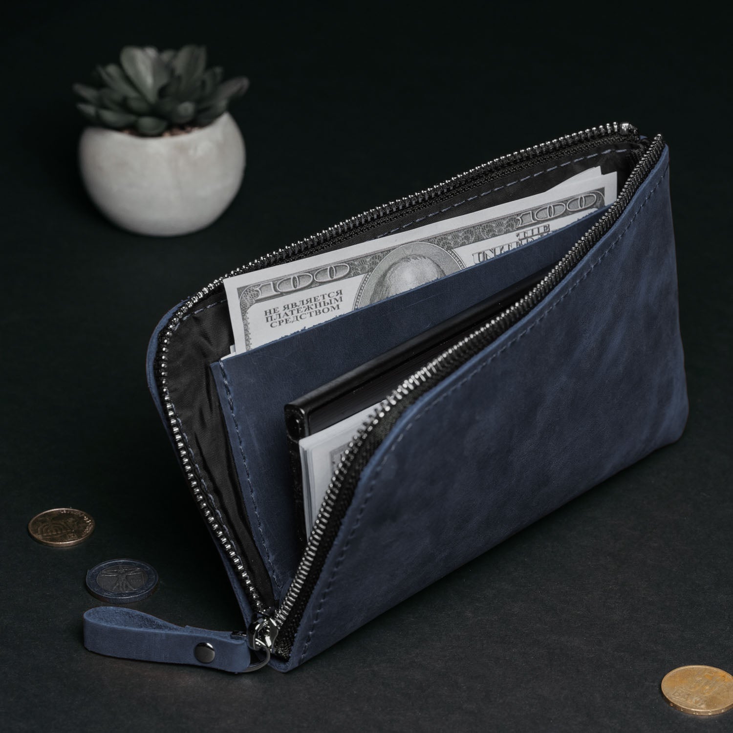 - Гаманець вміщає смартфон будь-якого розміру.