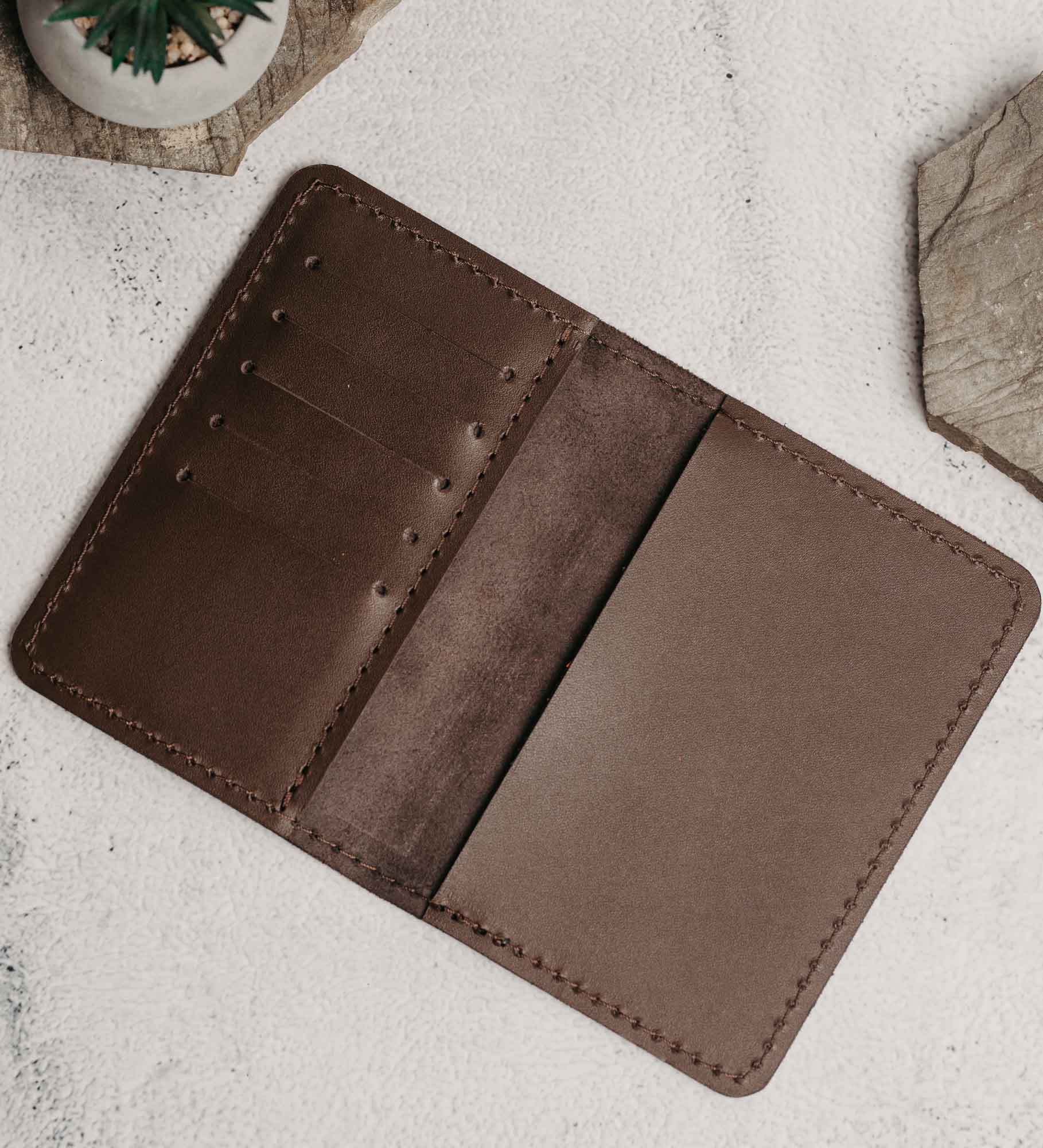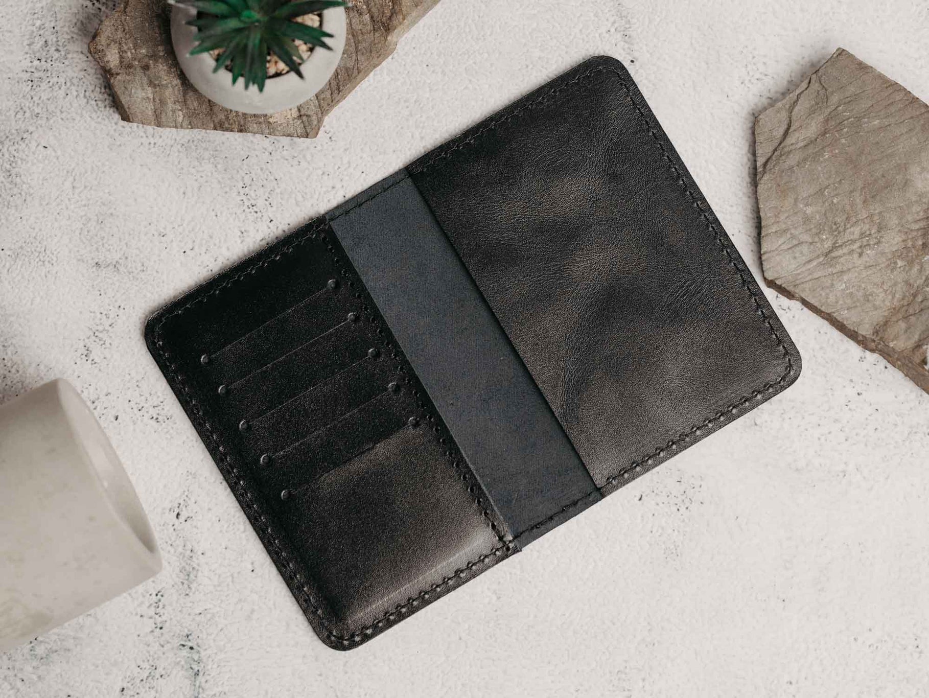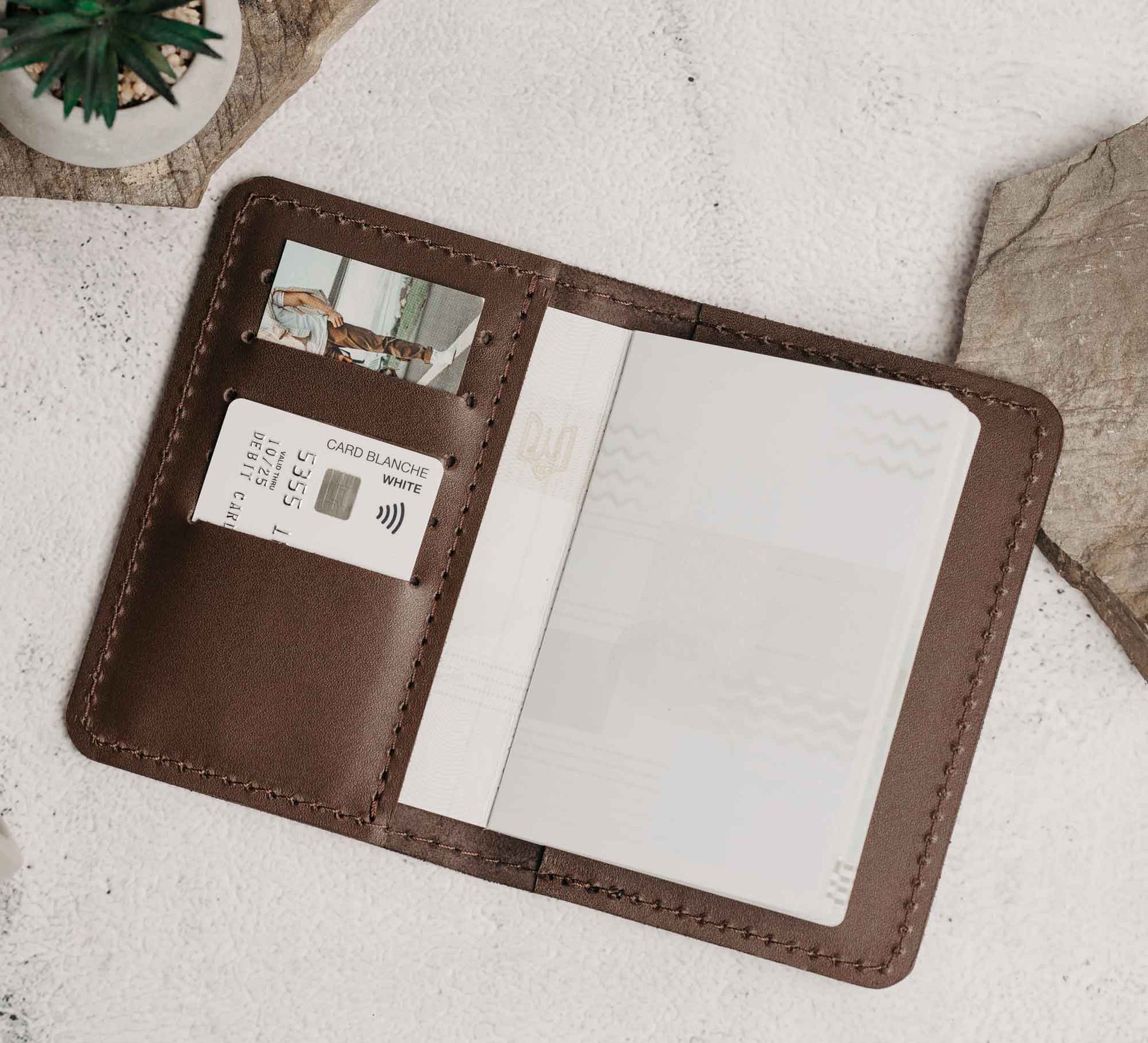 - Шкіряна документниця має 1 відділення під паспорт і 5 слотів під картки.
