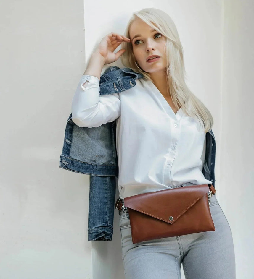 Шкіряна сумка-трансформер на пояс і через плече | Crossbody конверт
