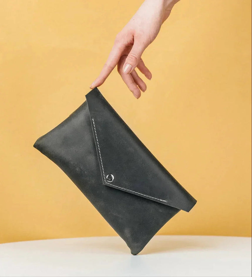 Women's Leather Envelope Bag | Smooth Black - Skin and Skin