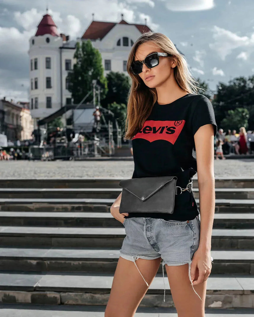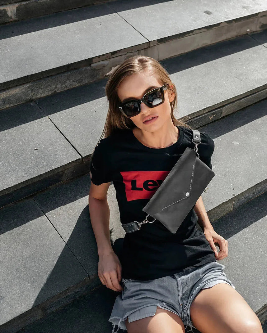 Та сама невеличка сумочка, яка потрібна на прогулянку, вечірку, в кафе чи для будь-якого виходу в люди – вотевер. Можна носити трьома способами: на поясі, через плече або як клатч, якщо зняти ремінець. Має лаконічний дизайн, тож пасуватиме як під сукню, так і під джинси зі светром.