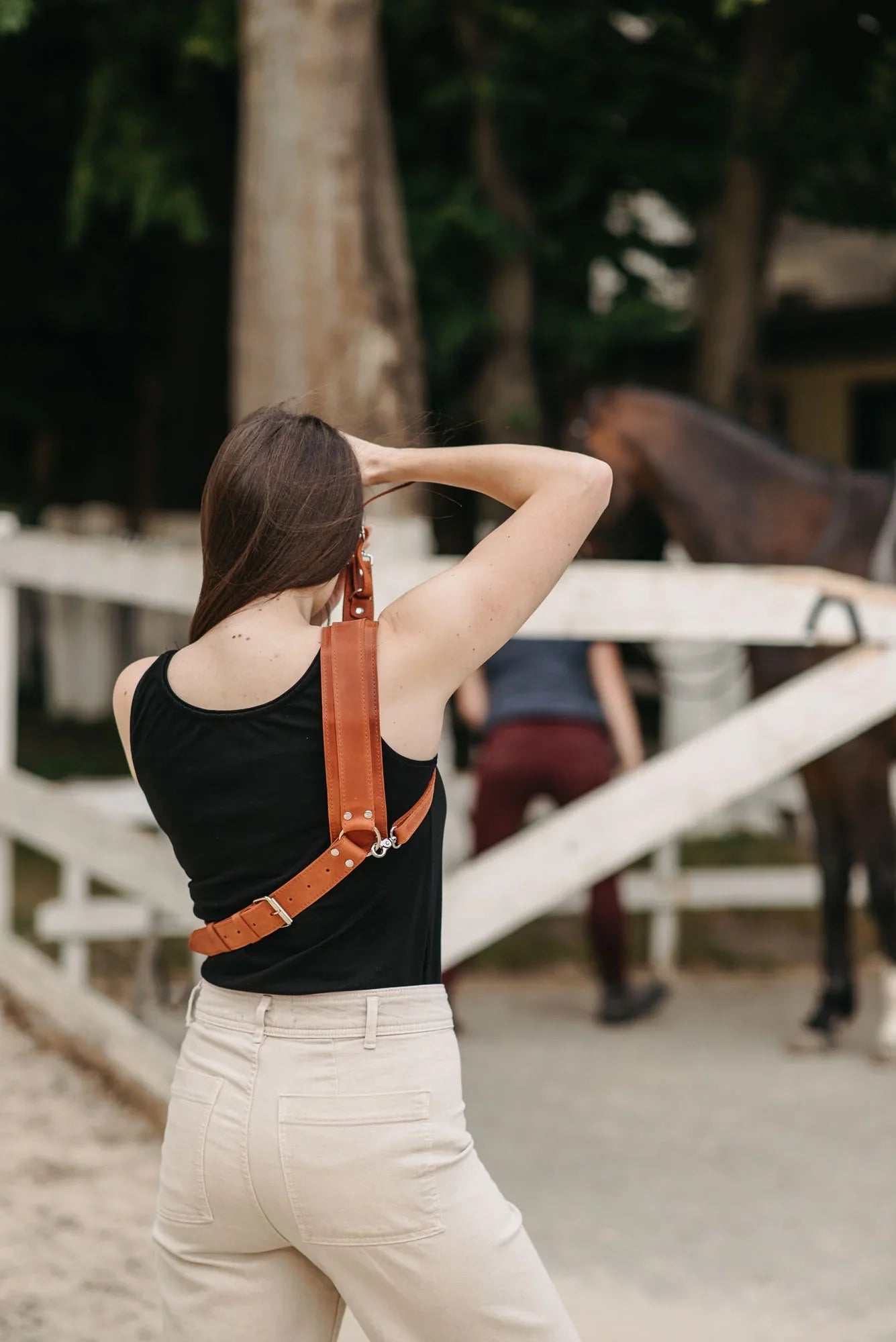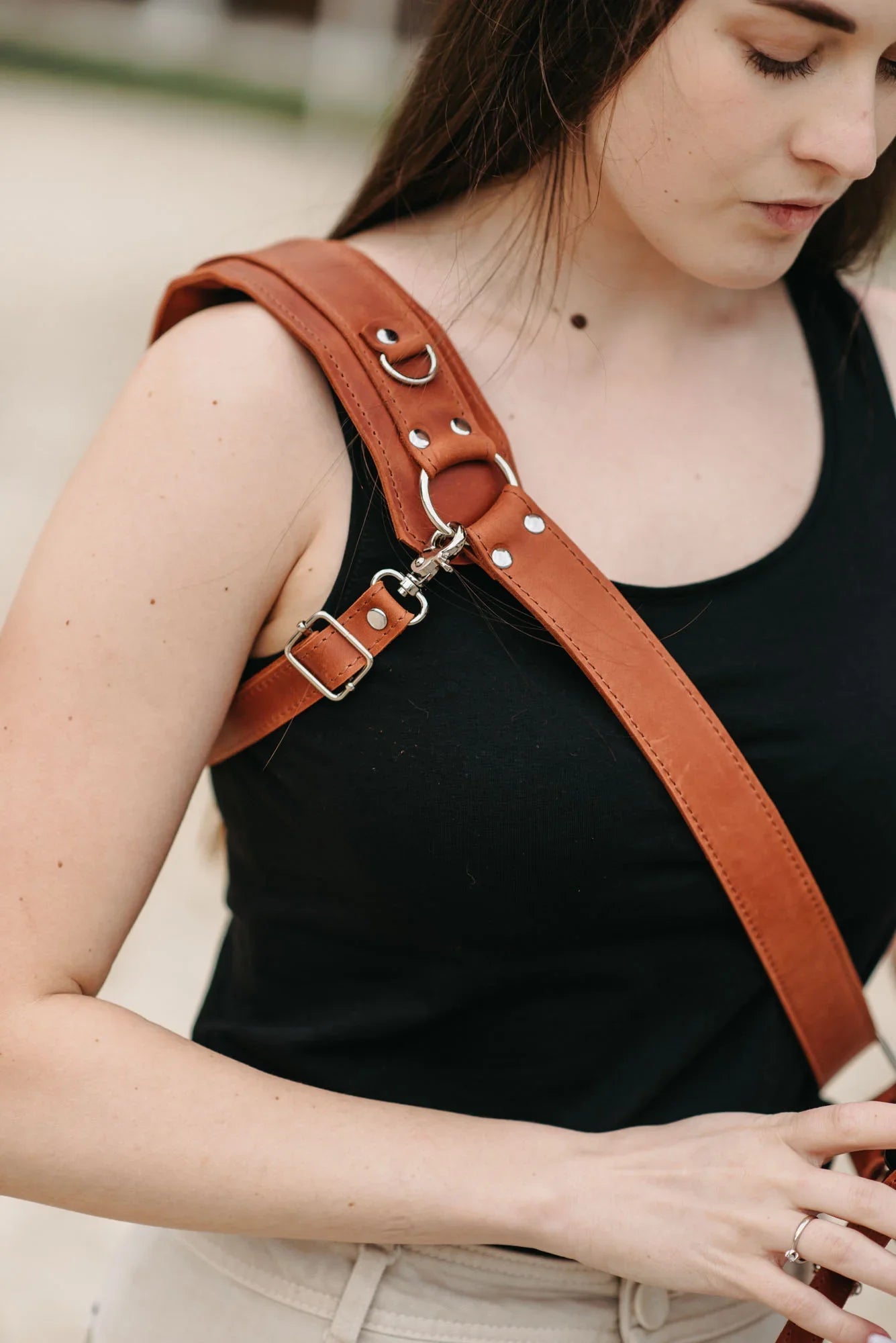 Одноремінна шкіряна портупея створена для фотографів, які цінують свободу руху й міцність матеріалів. Виготовлена з матової воскової шкіри, вона забезпечує надійну фіксацію камери без компромісів щодо комфорту.