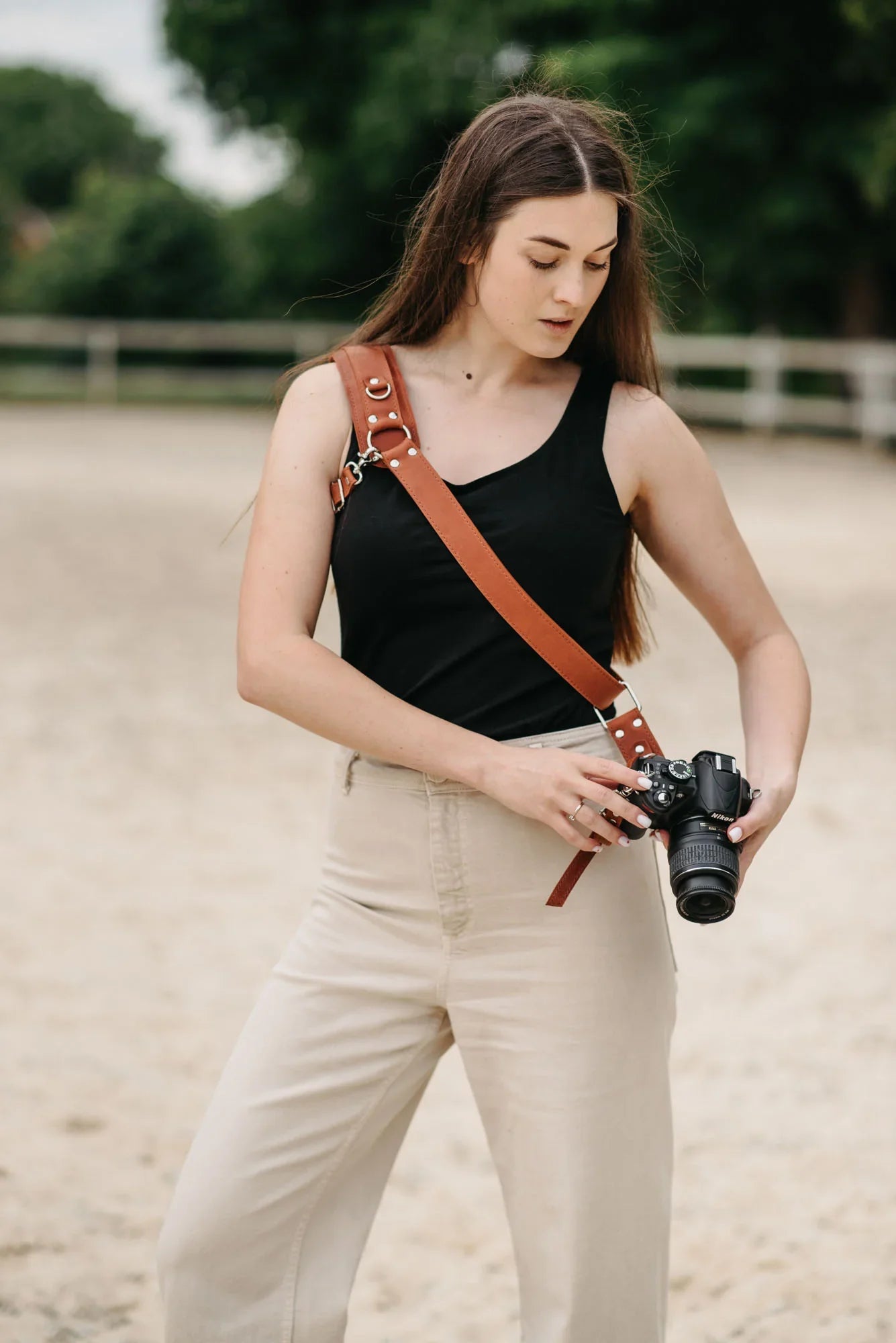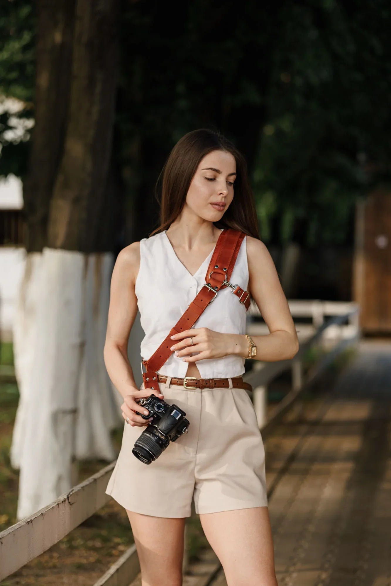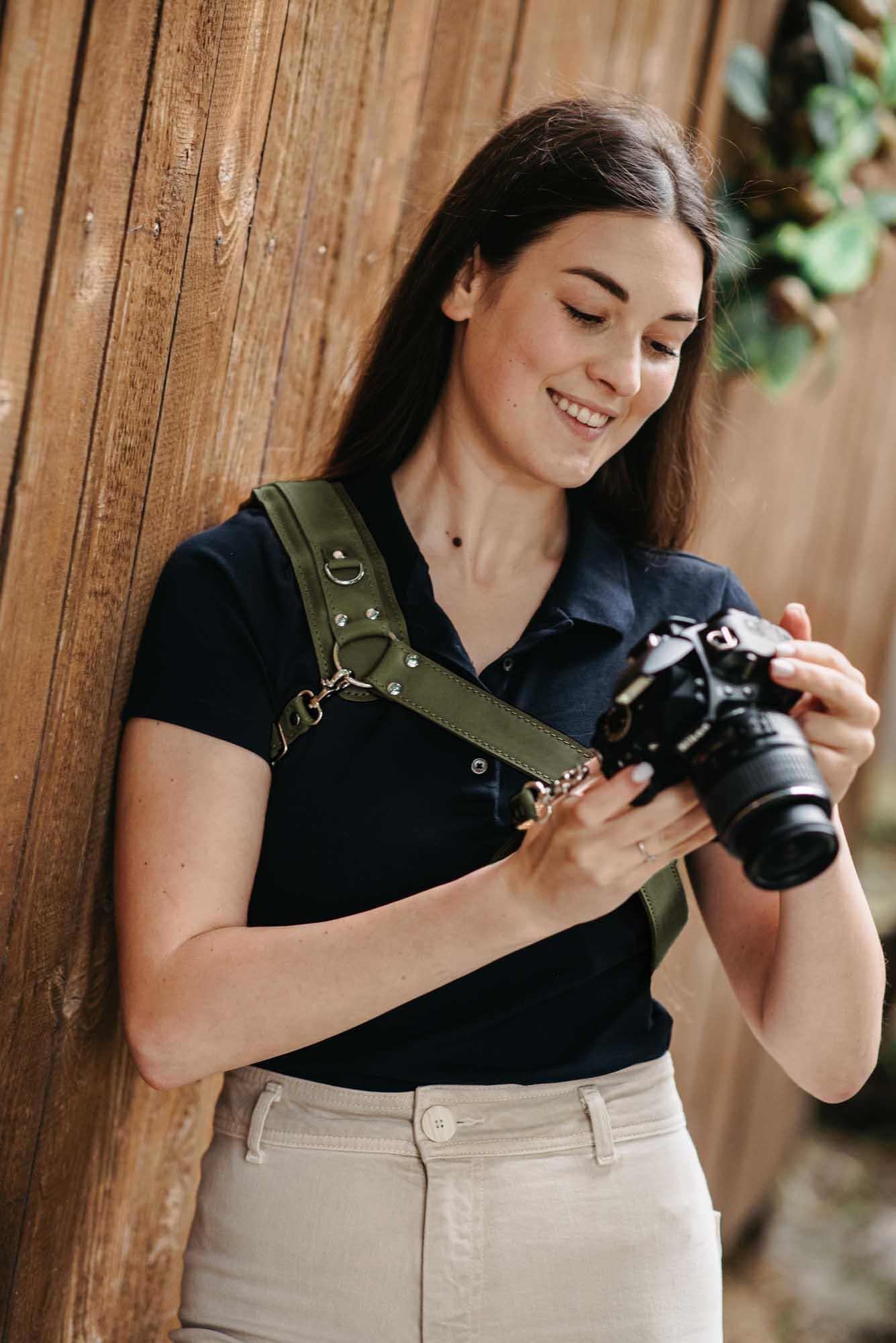 Сумісна з усіма камерами, що мають стандартне різьблення 1/4”. Завдяки кросбоді-дизайну та стабілізатору ремінь плавно ковзає з положення на боці до робочої позиції. М’яка накладка на плече опційна – можна використовувати з нею або без неї, залежно від уподобань.