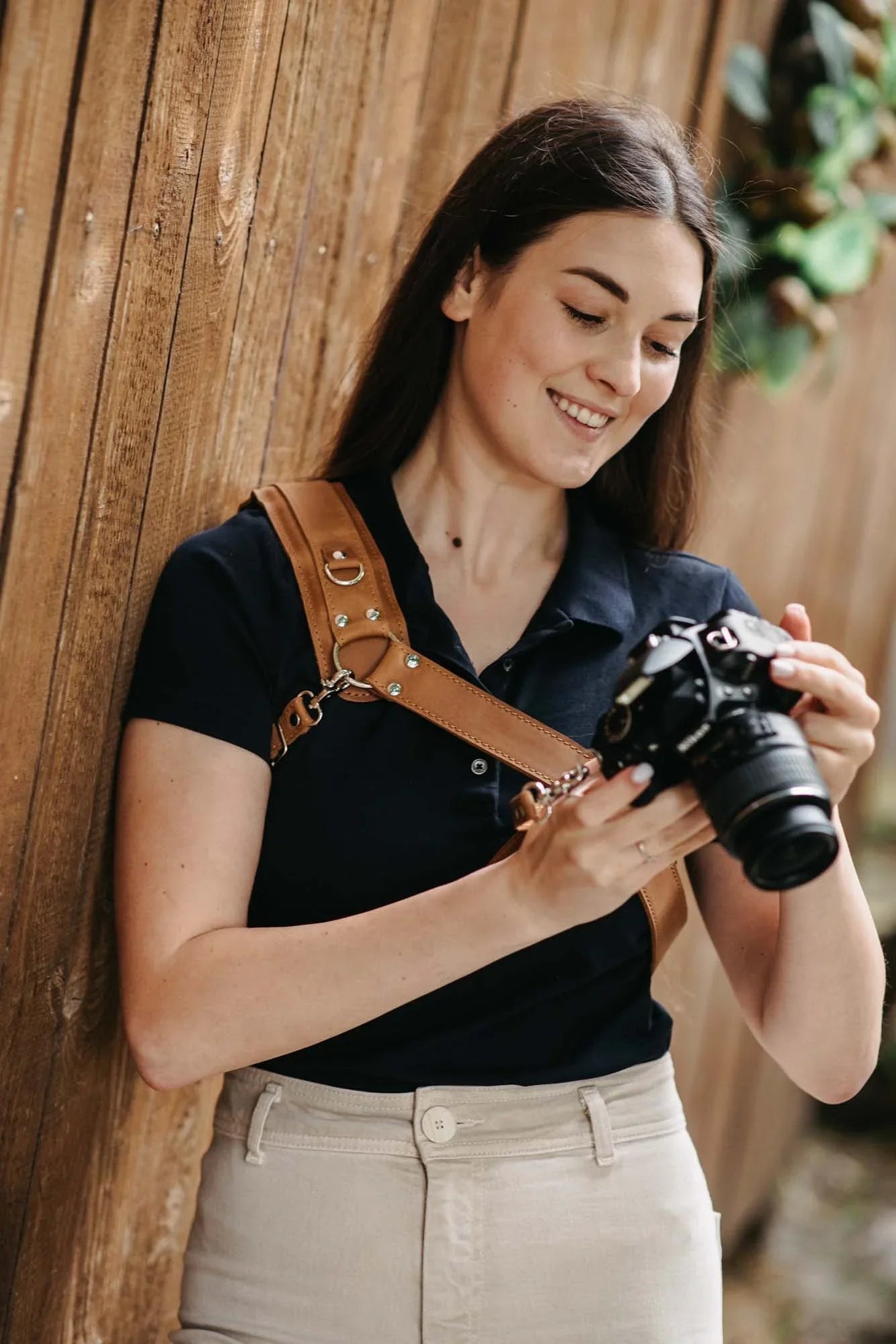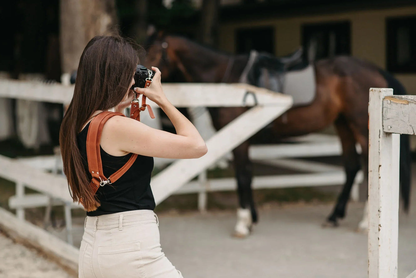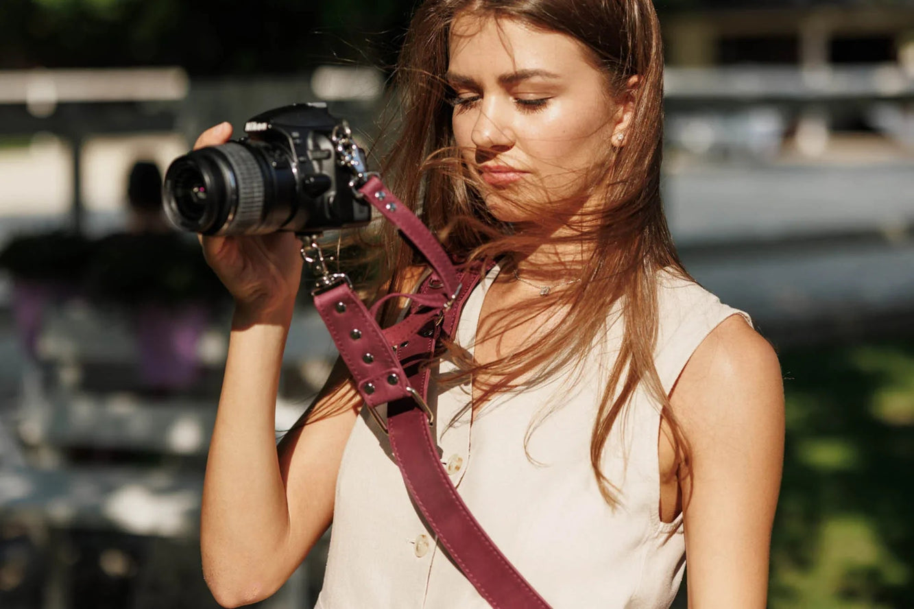 Одноремінна шкіряна портупея створена для фотографів, які цінують свободу руху й міцність матеріалів. Виготовлена з матової воскової шкіри, вона забезпечує надійну фіксацію камери без компромісів щодо комфорту.