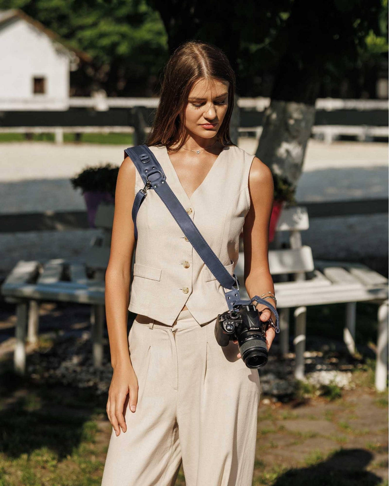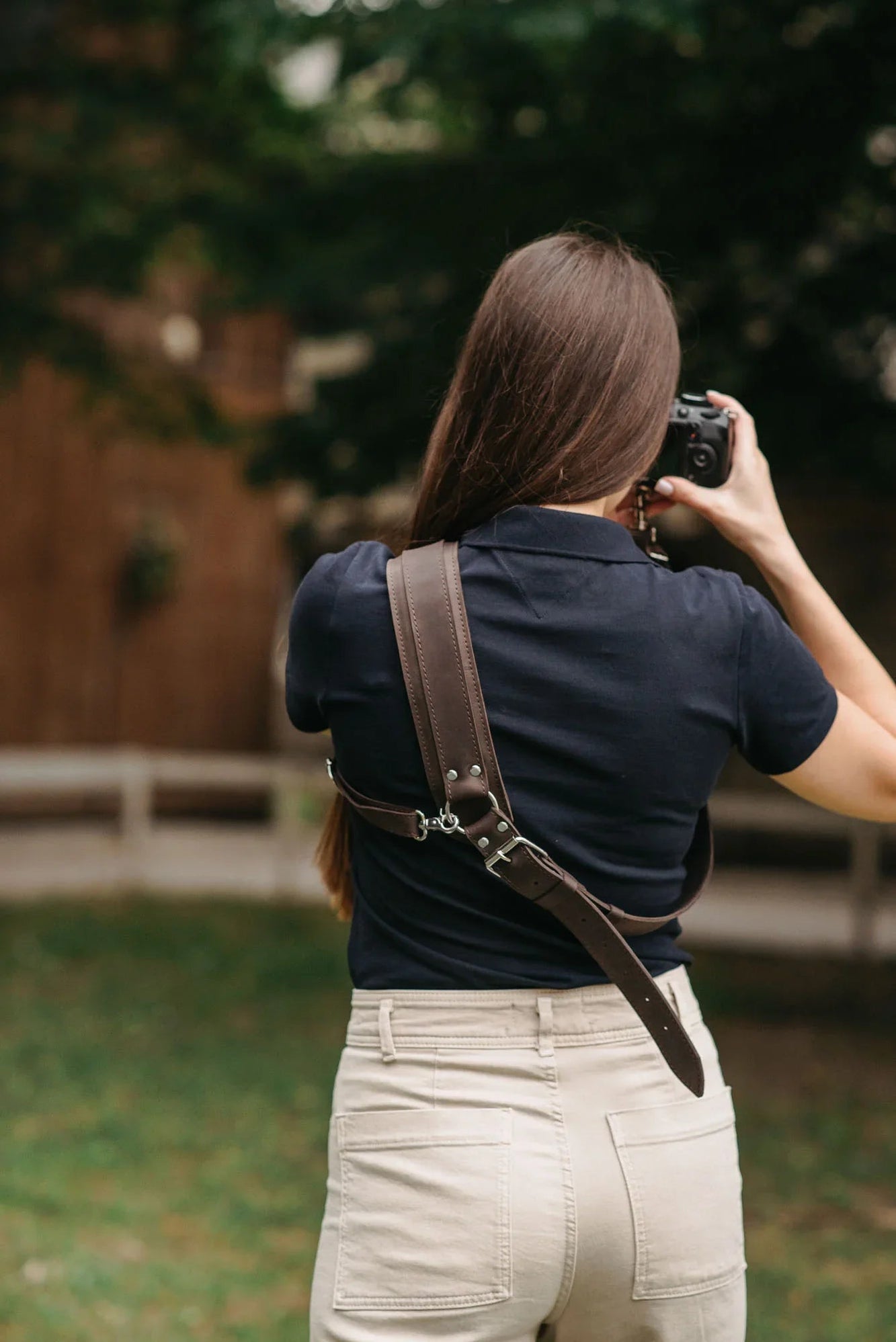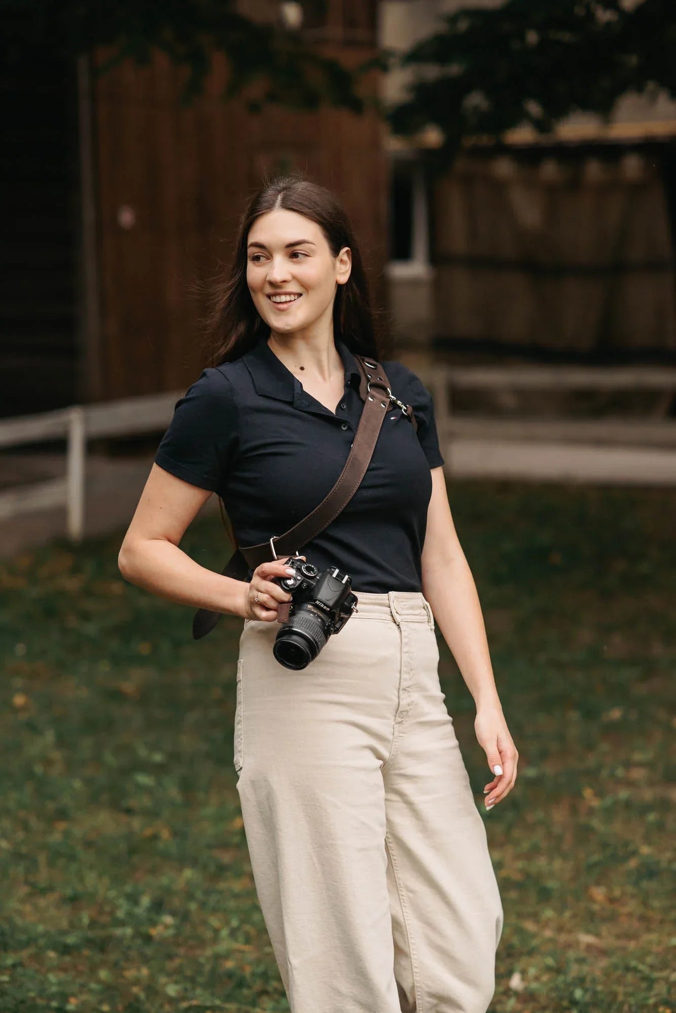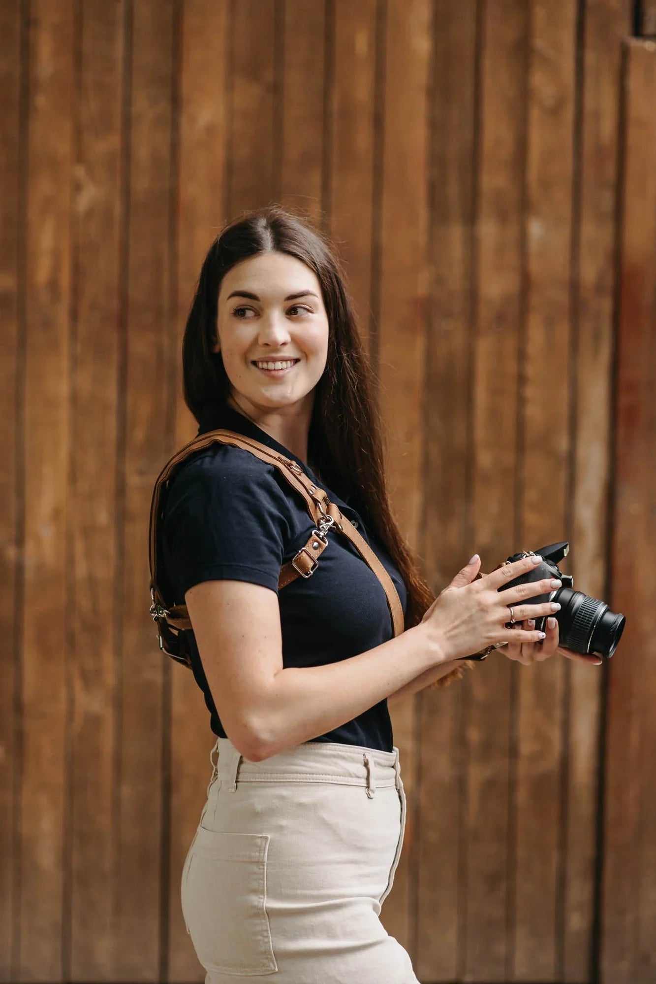 Сумісна з усіма камерами, що мають стандартне різьблення 1/4”. Завдяки кросбоді-дизайну та стабілізатору ремінь плавно ковзає з положення на боці до робочої позиції. М’яка накладка на плече опційна – можна використовувати з нею або без неї, залежно від уподобань.