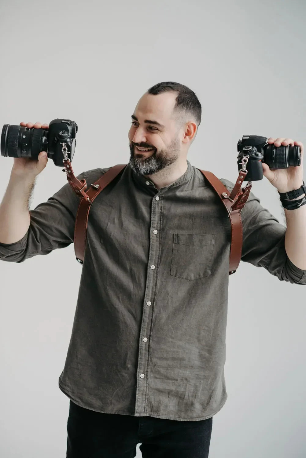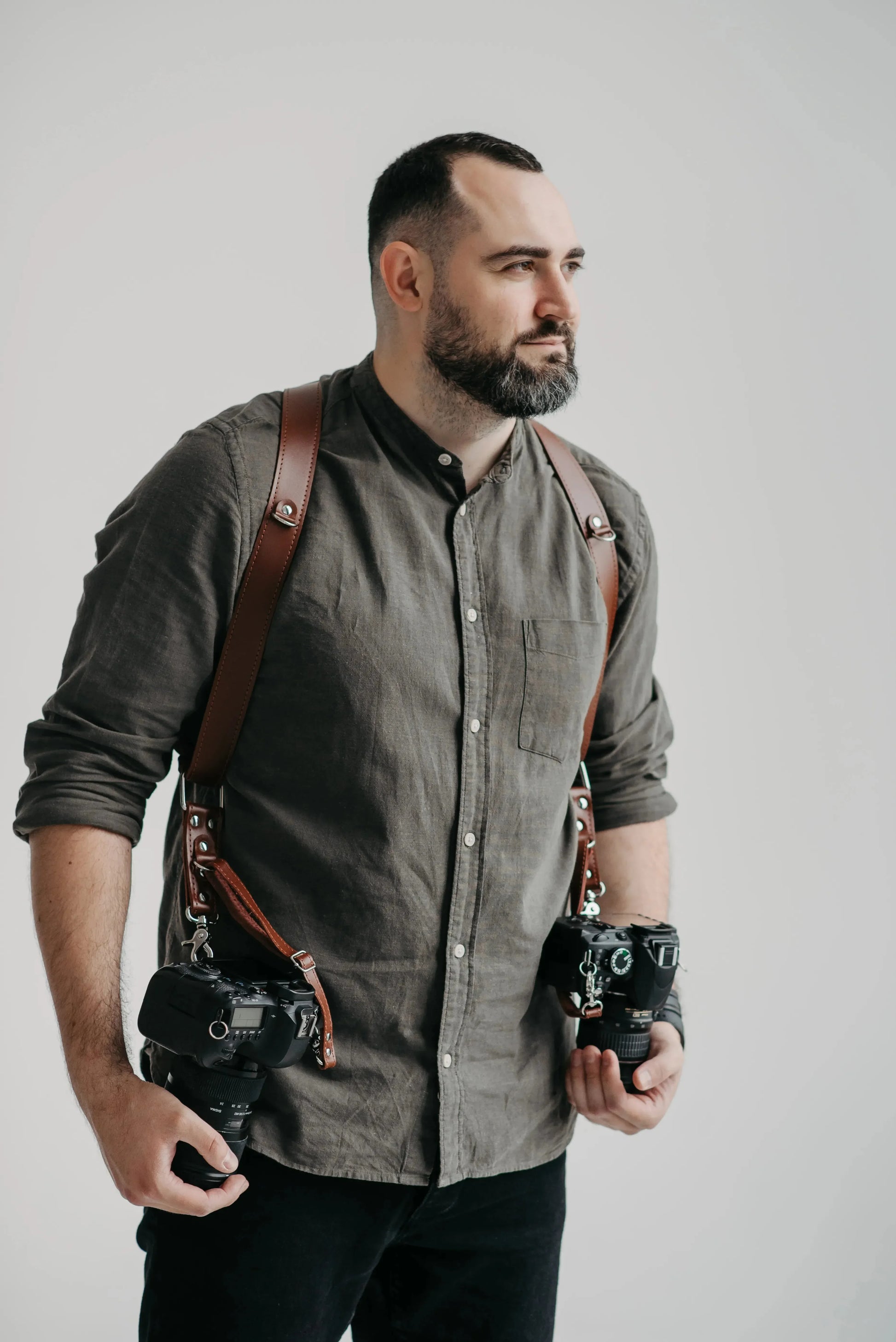 Шкіряна ремінна система на дві камери для фотографів Skin&Skin