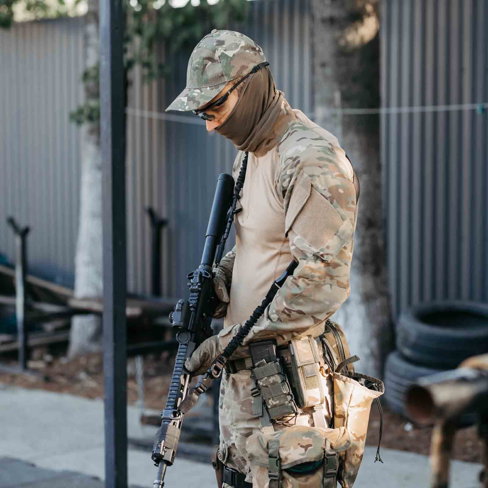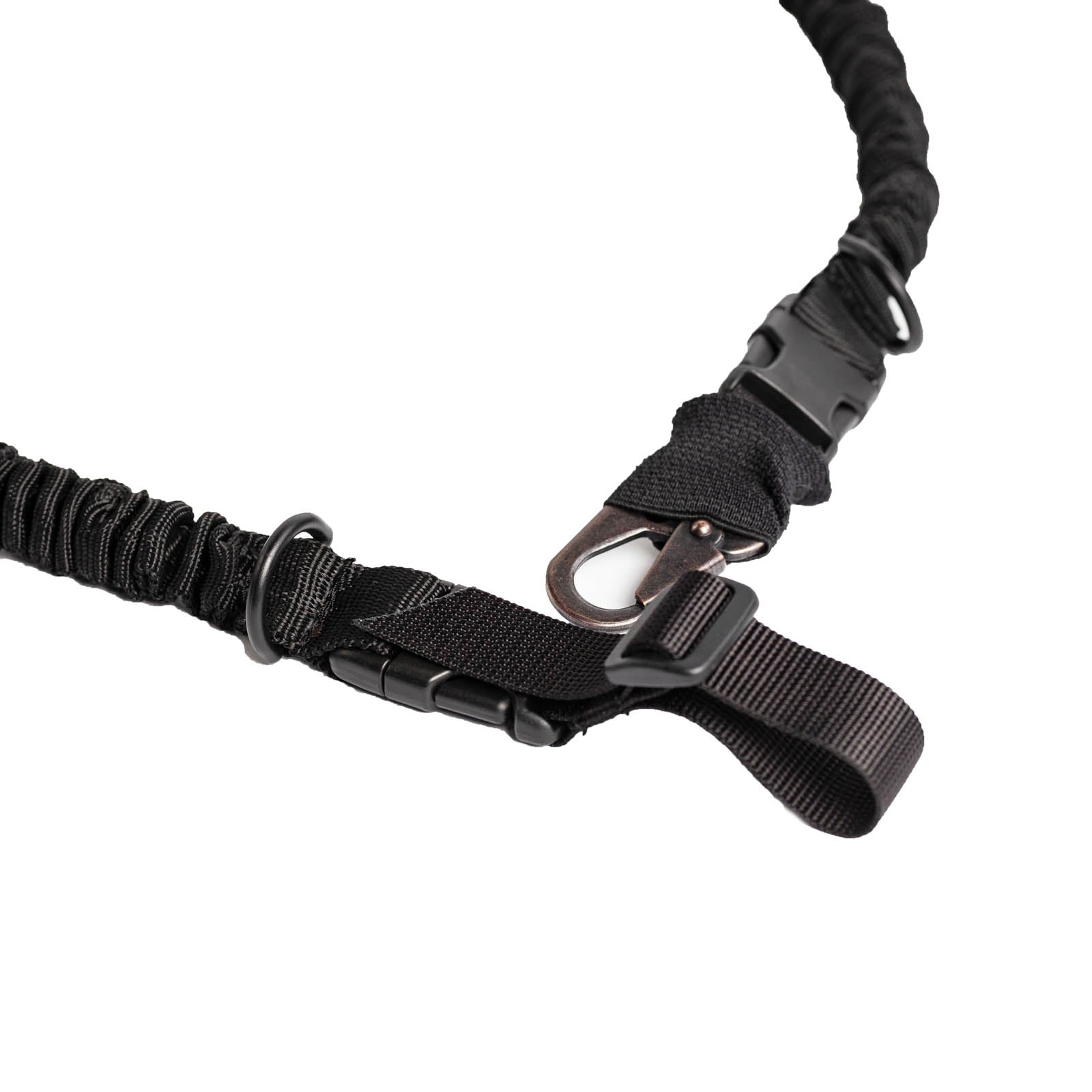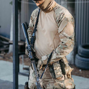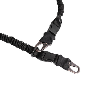 Двоточковий ремінь з еластичною стропою та м’яким плечем виготовлений із надійного, міцного матеріалу типу кордура, що забезпечує високу стійкість до зношування. Конструкція додає комфорту при використанні, а загальна довжина ременя 170 см. За необхідності, ви можете легко скоротити його довжину.