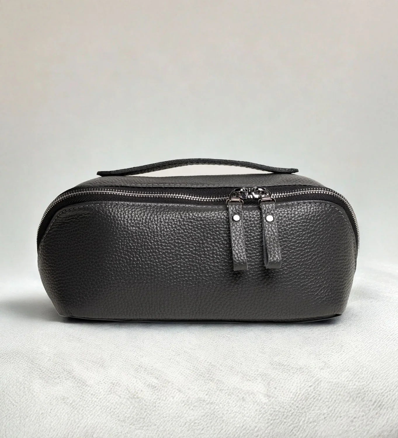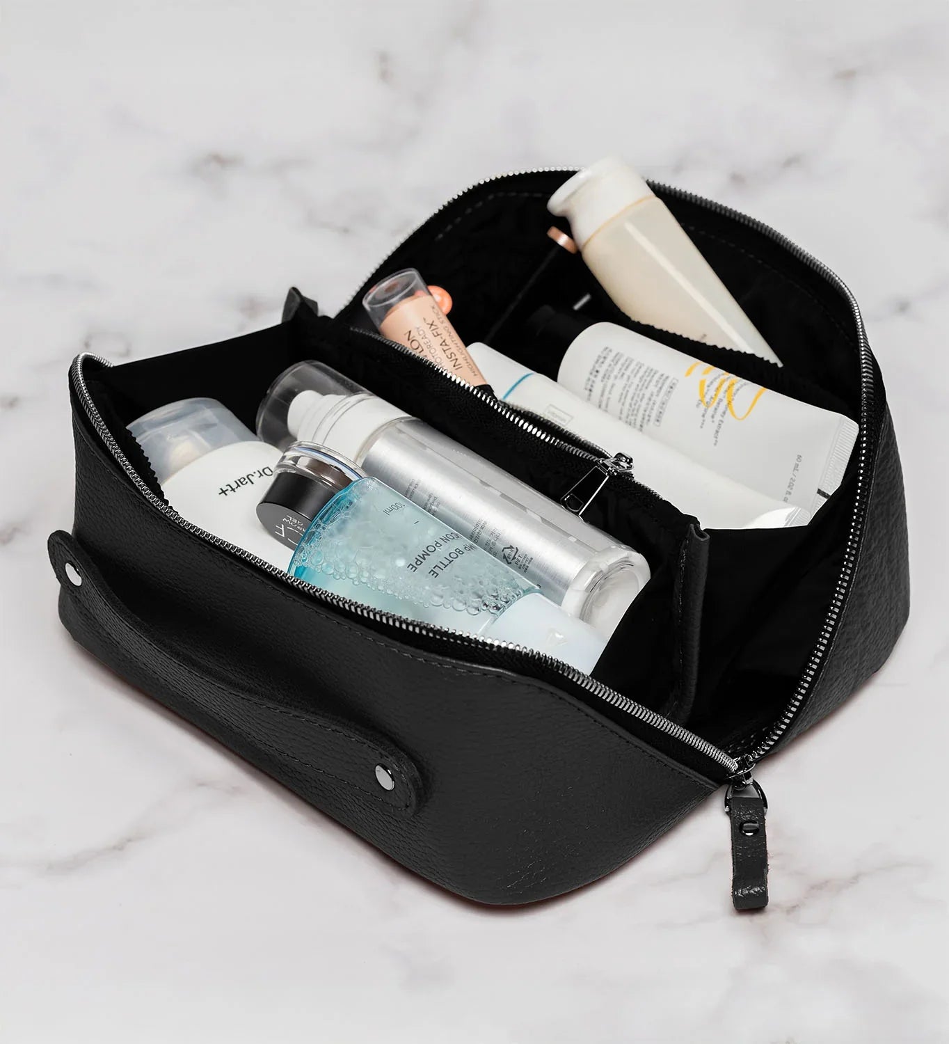 Fullgrain Leather Cosmetic Bag - BeautyBox | Graini Black - Skin and Skin