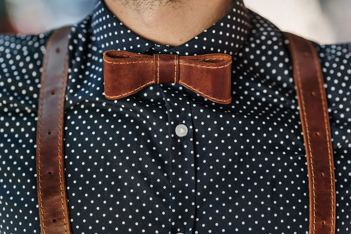 Шкіряна краватка-метелик має лаконічний дизайн. Чудово поєднується з різноманітним одягом: брюками, сорочками, костюмами, піджаками. Її неодмінно оцінять любителі мінімалізму. Ви можете підібрати краватку під штани, туфлі, ремінь, підтяжки або в тон до сорочки, піджака.