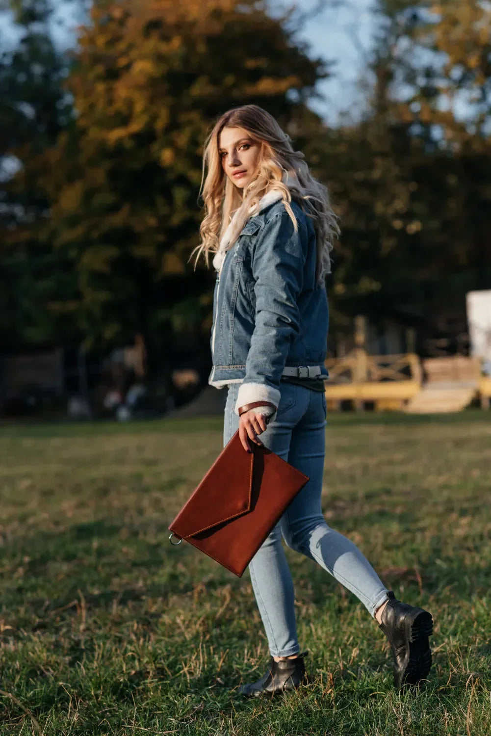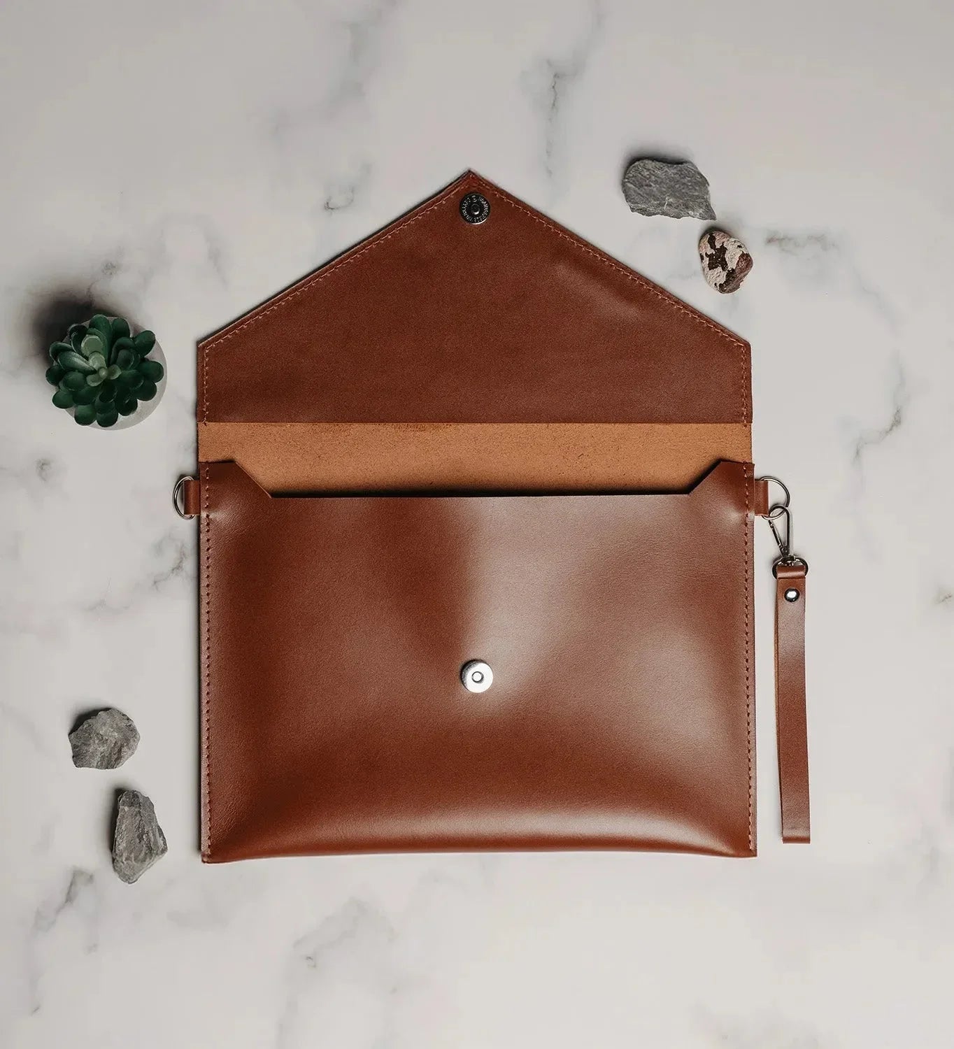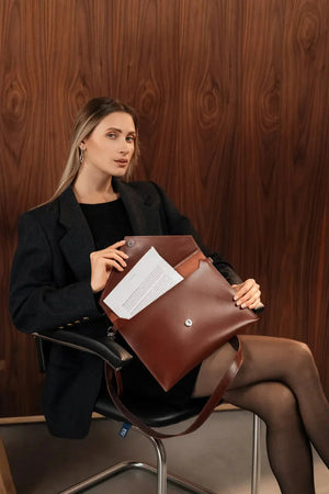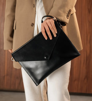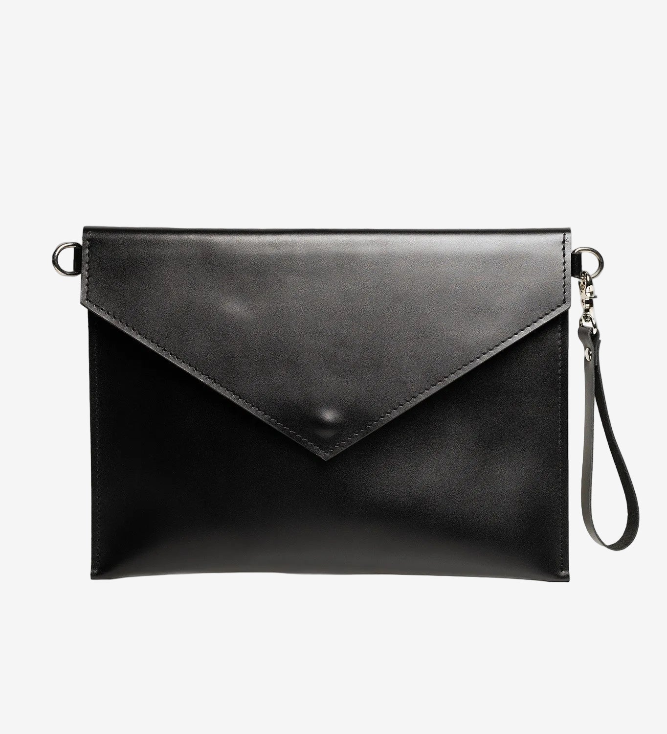 Носіть його в руці або використовуйте як лаконічну сумку через плече – цей клатч допоможе тримати документи впорядкованими та виглядати впевнено щодня.