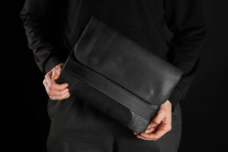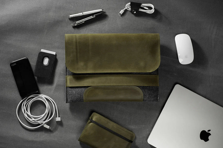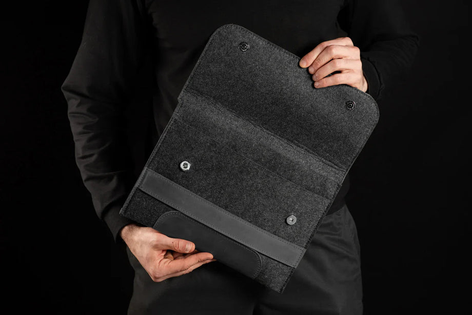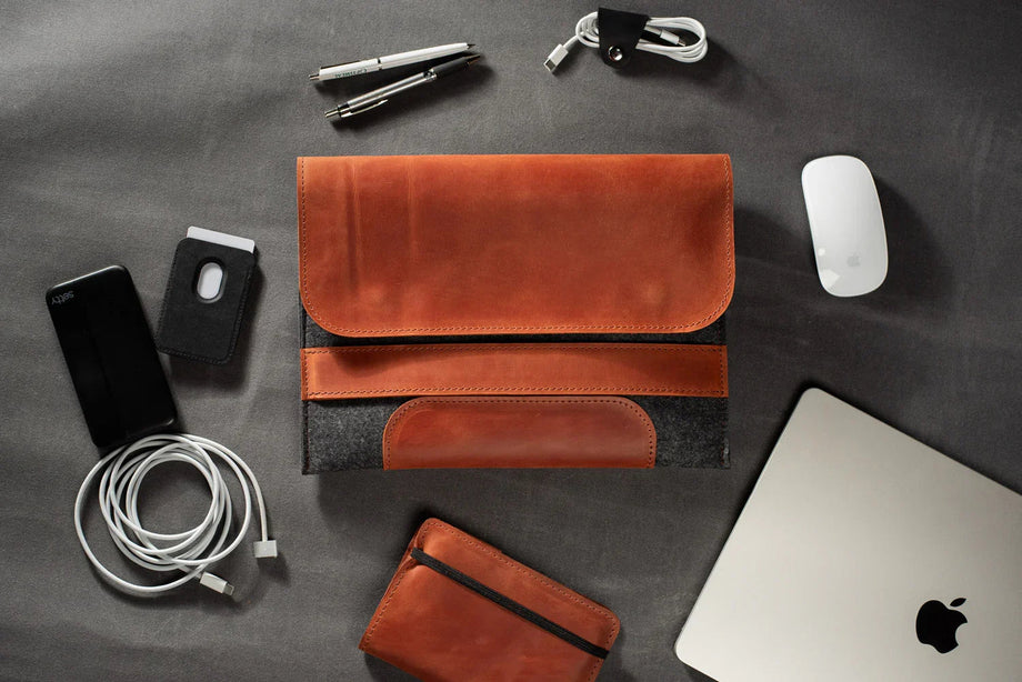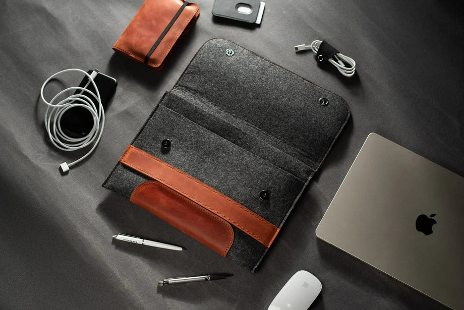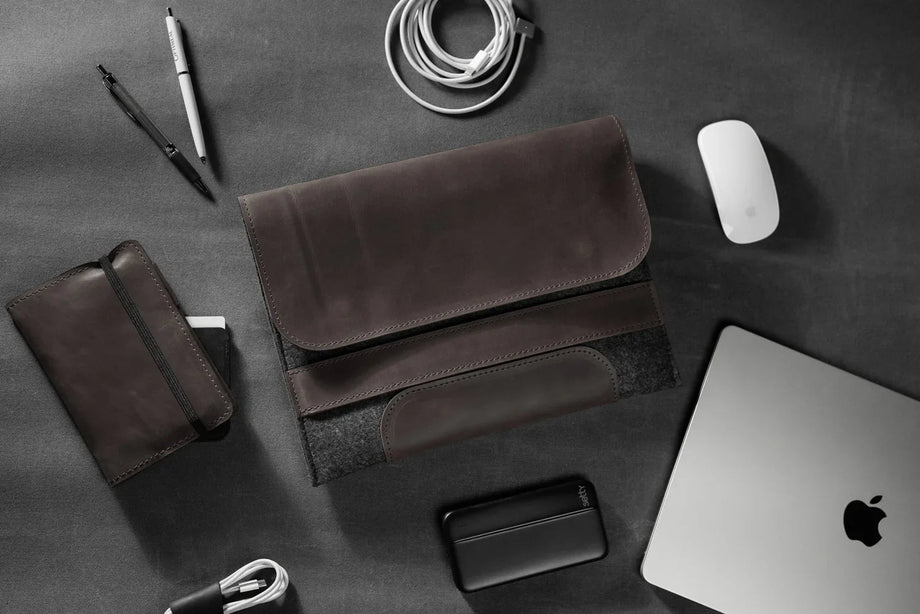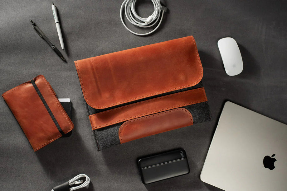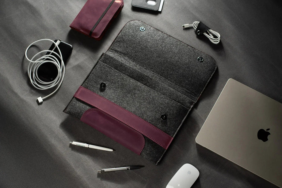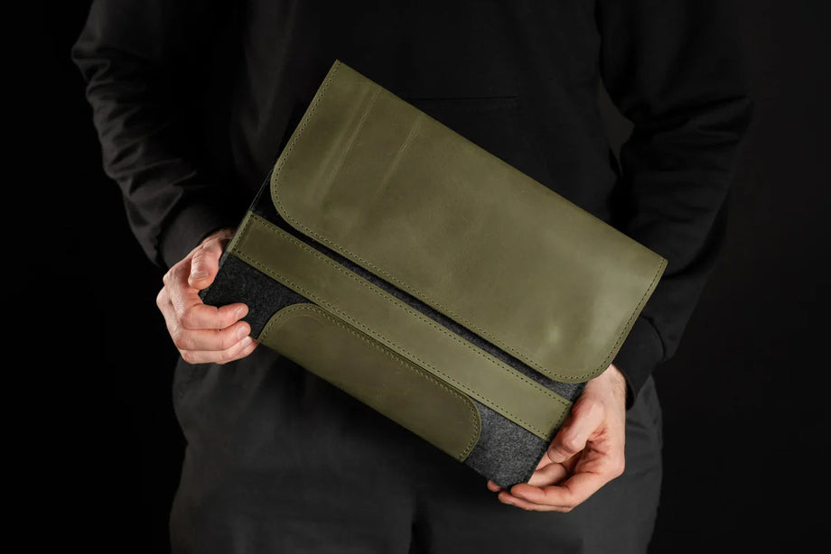 Забезпечте своєму MacBook або iPad гідний захист із цим чохлом-клапаном, виготовленим вручну з щільного вовняного фетру та воскової шкіри Crazy Horse. Винтажна фактура та ефект “pull-up” надають кожному виробу унікального характеру, який розкривається з часом – роблячи його не лише практичним, а й особистим аксесуаром.