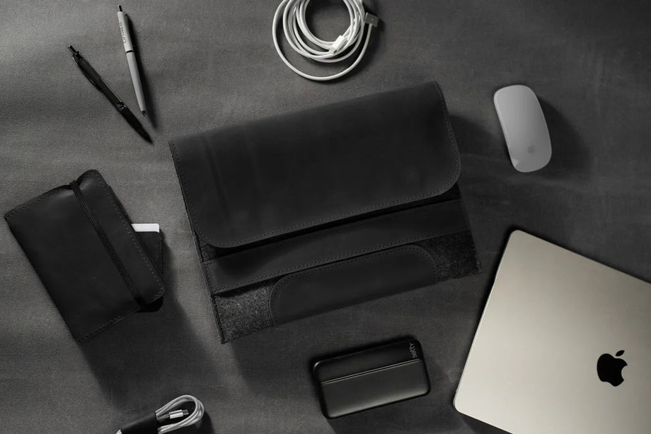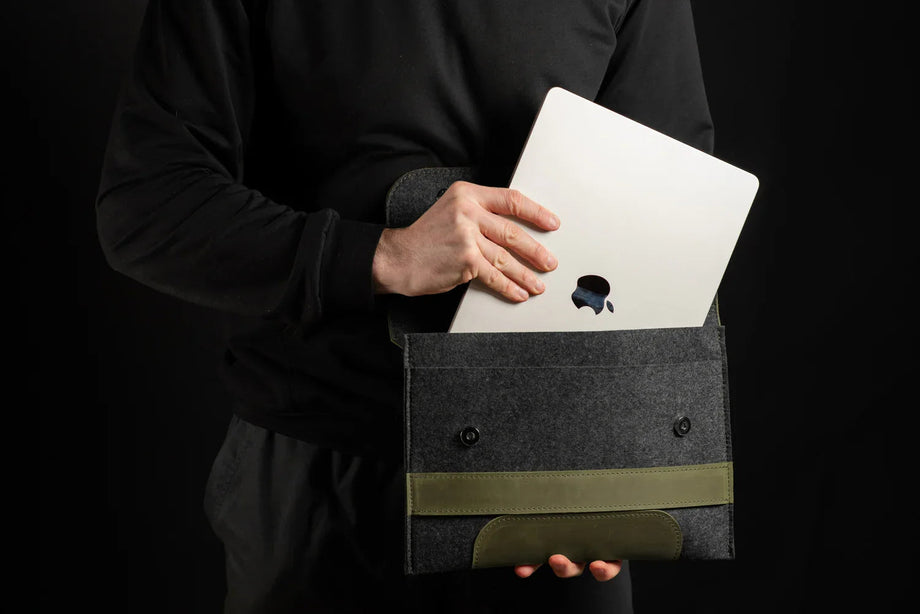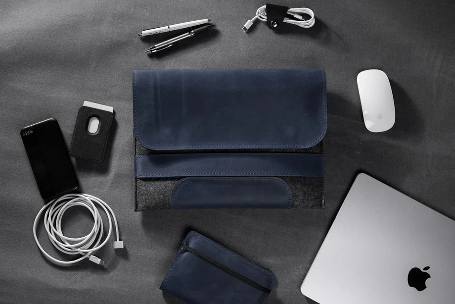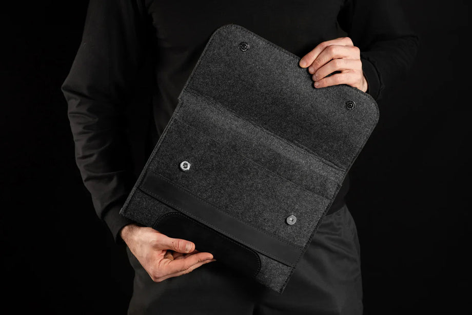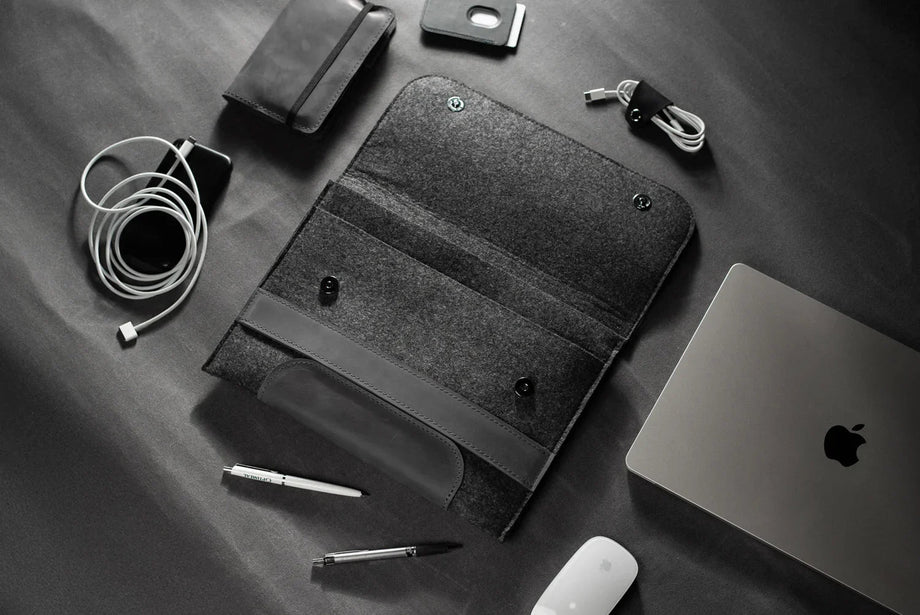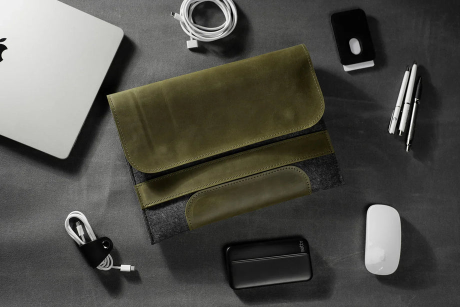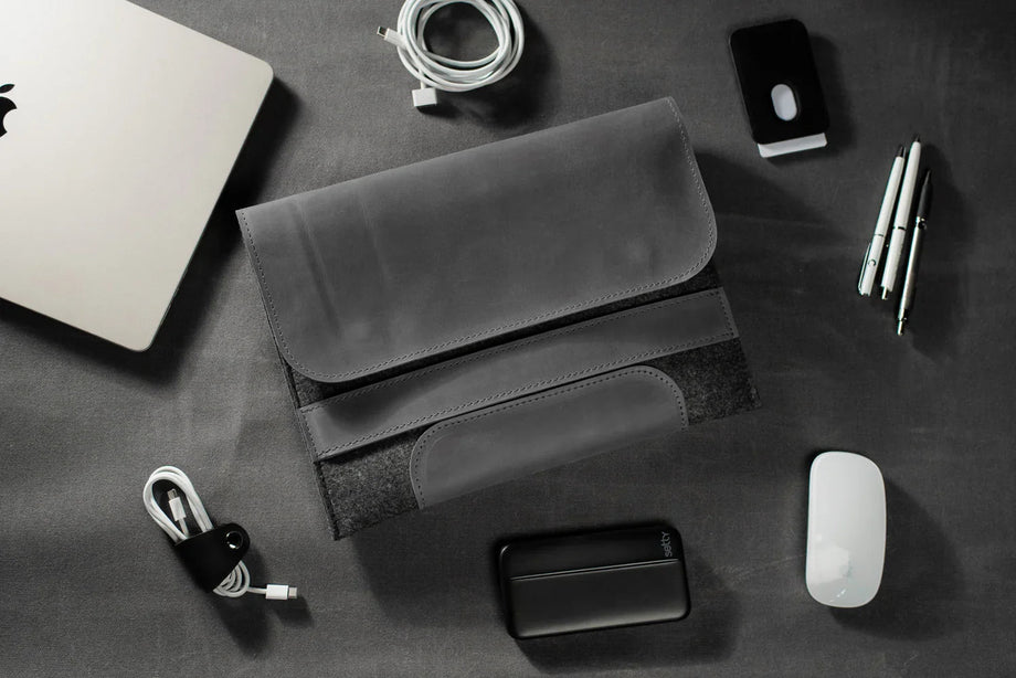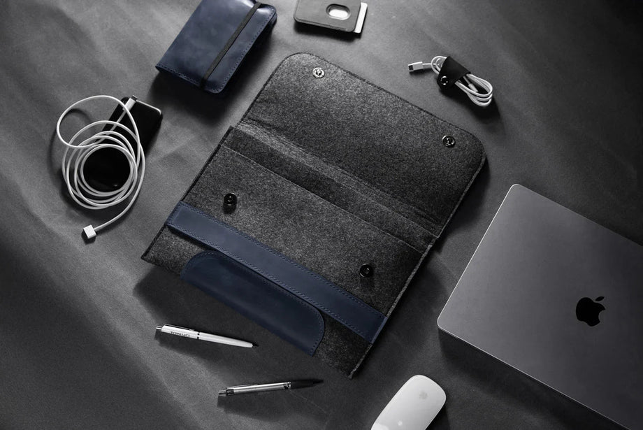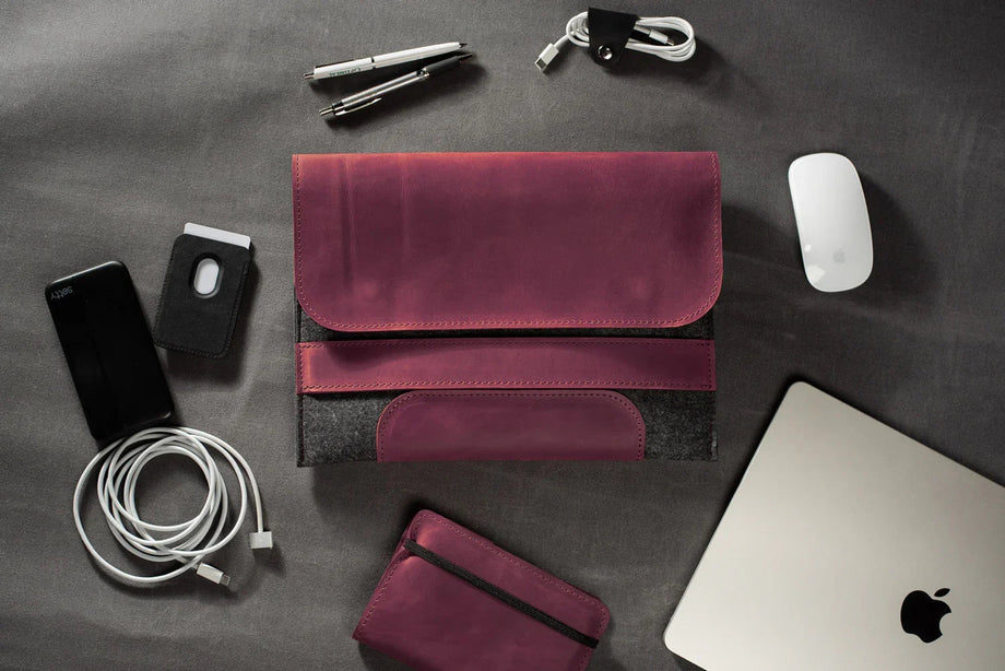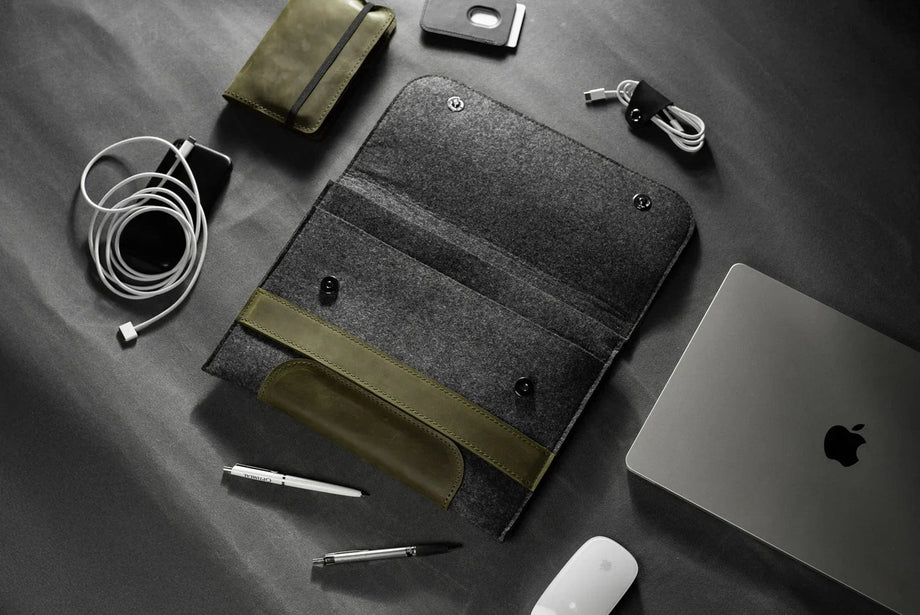 Забезпечте своєму MacBook або iPad гідний захист із цим чохлом-клапаном, виготовленим вручну з щільного вовняного фетру та воскової шкіри Crazy Horse. Винтажна фактура та ефект “pull-up” надають кожному виробу унікального характеру, який розкривається з часом – роблячи його не лише практичним, а й особистим аксесуаром.