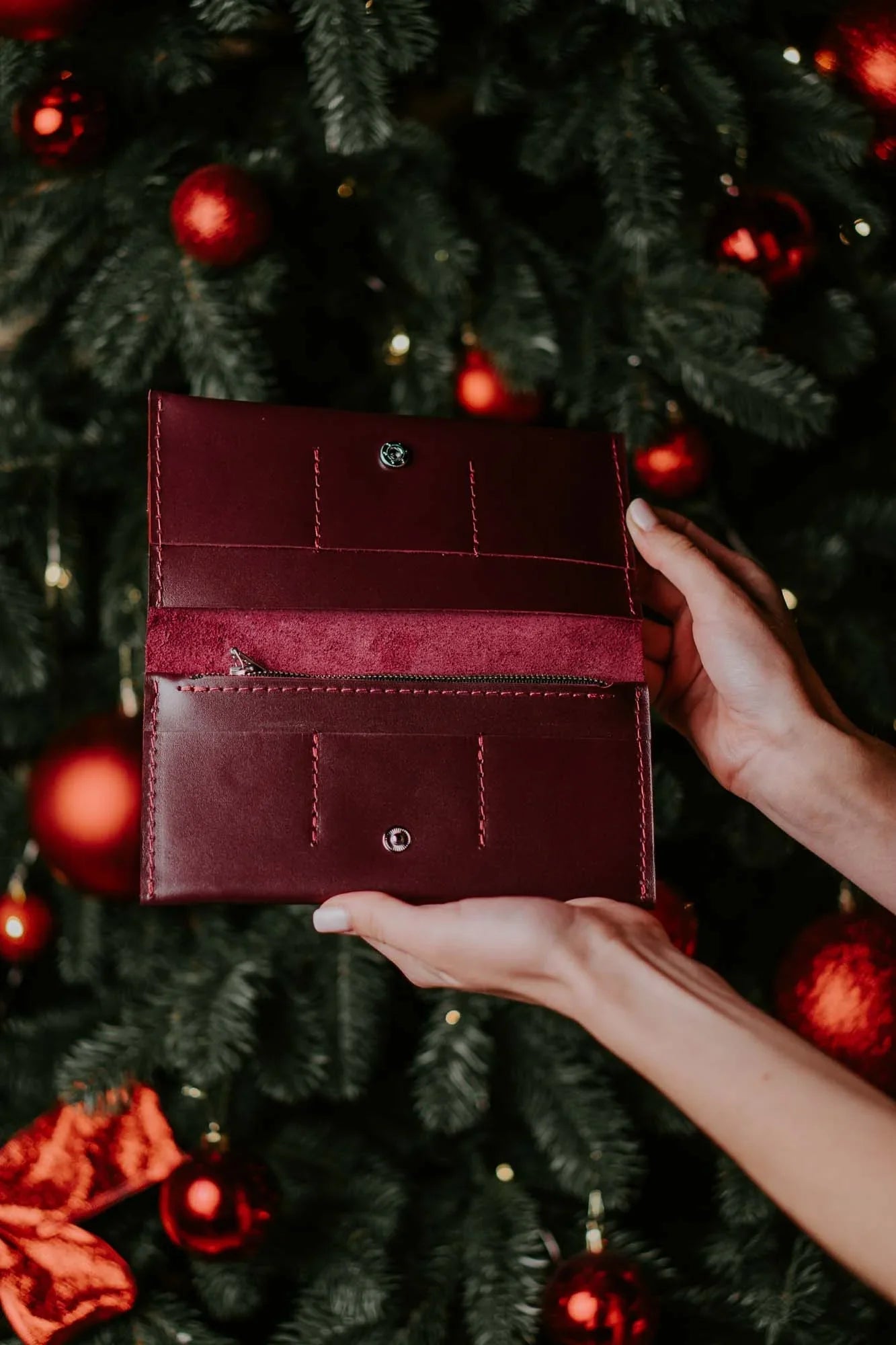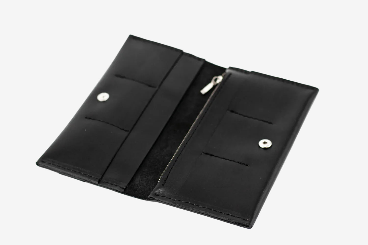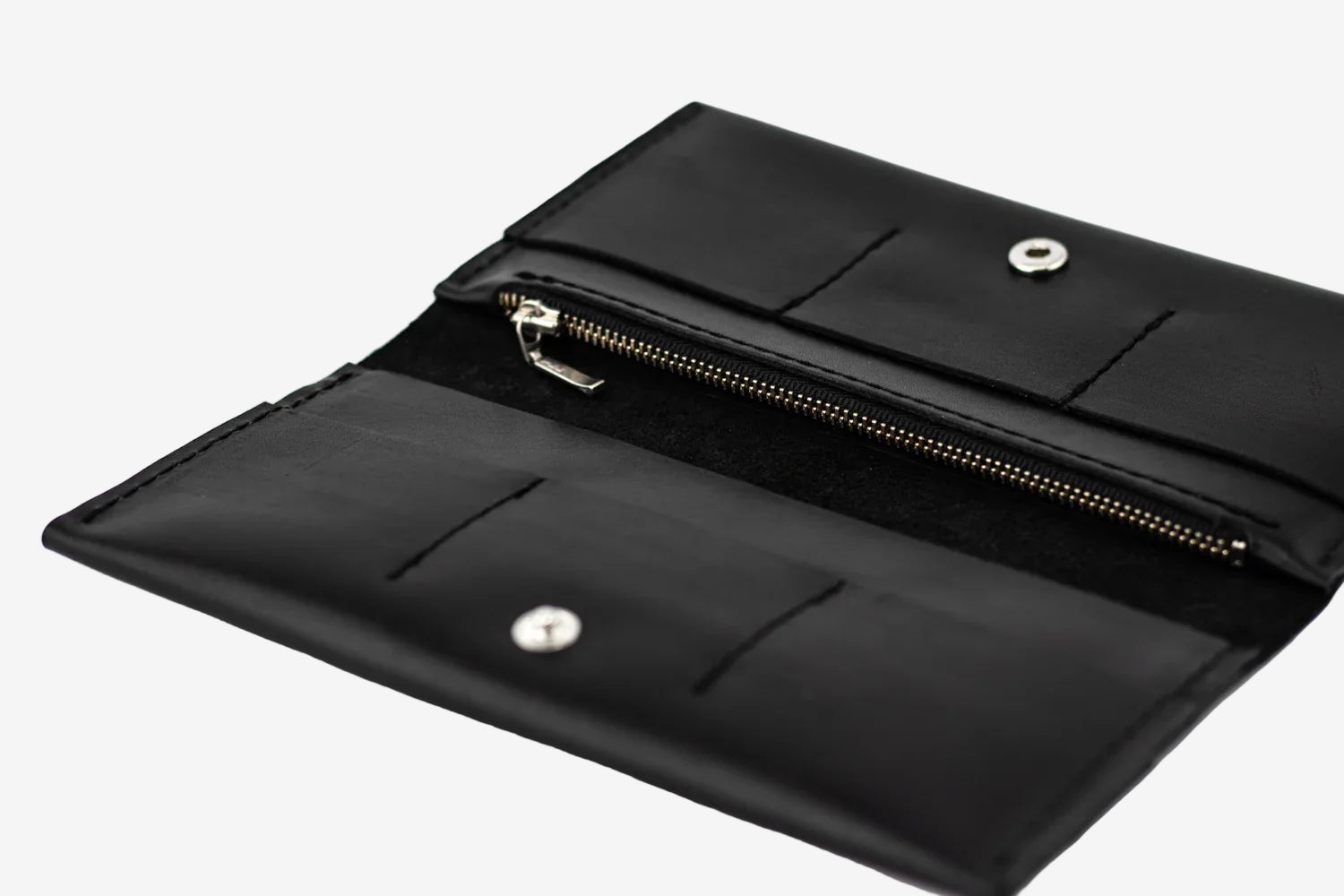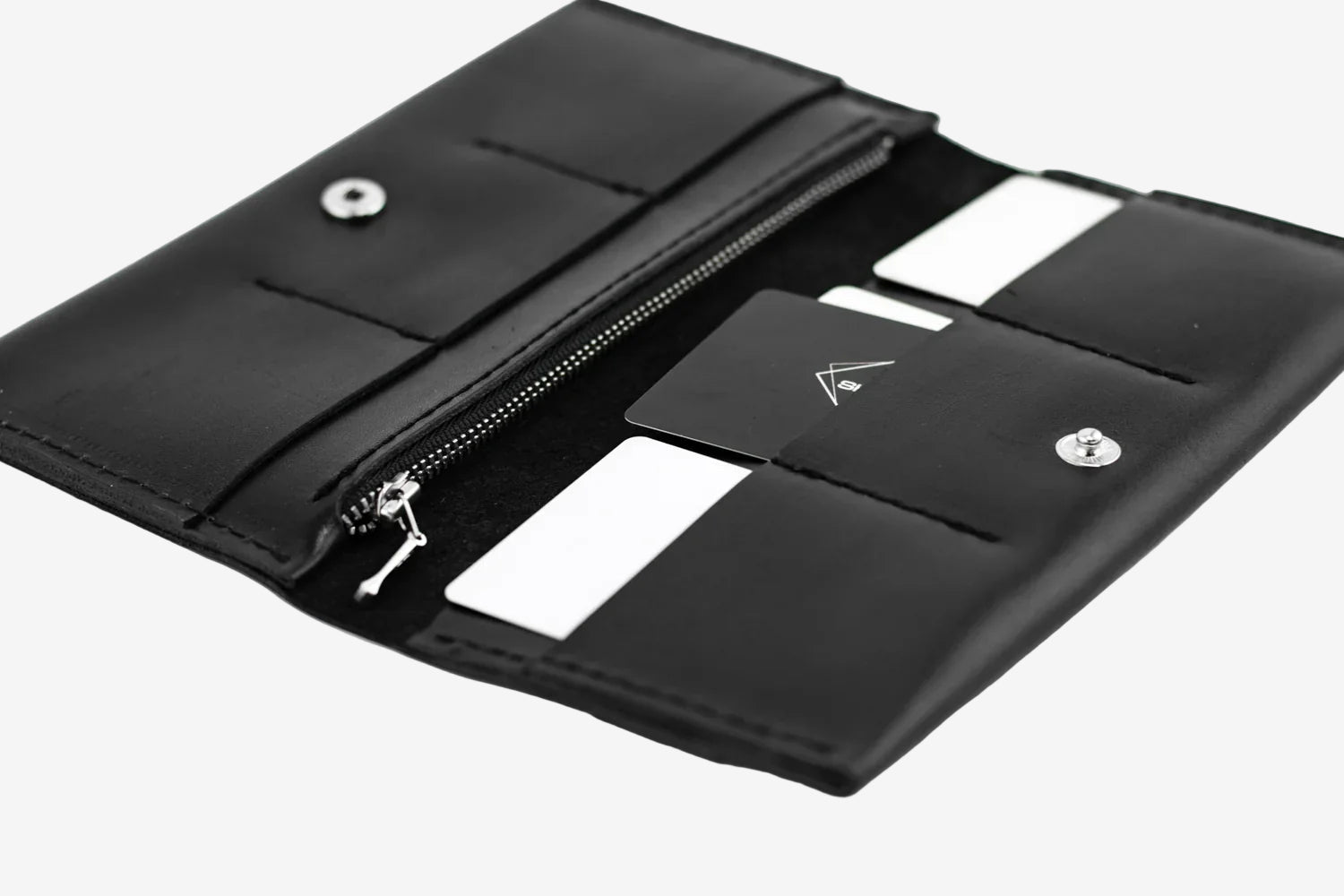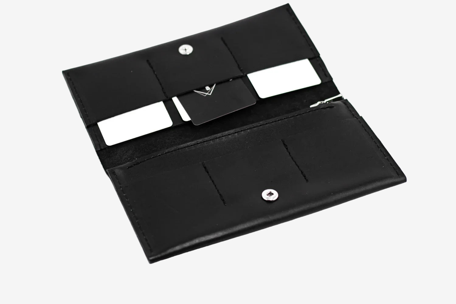 - Тонкий, але місткий – легко вміщує купюри, картки, монети й документи.