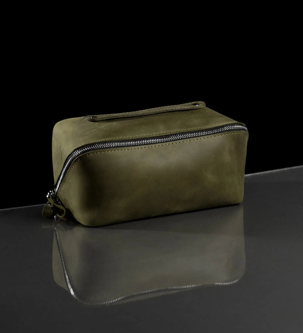 Натисніть «Додати в кошик», щоб замовити косметичку зі шкіри Crazy Horse, яка поєднує функціональність і характер ручної роботи.