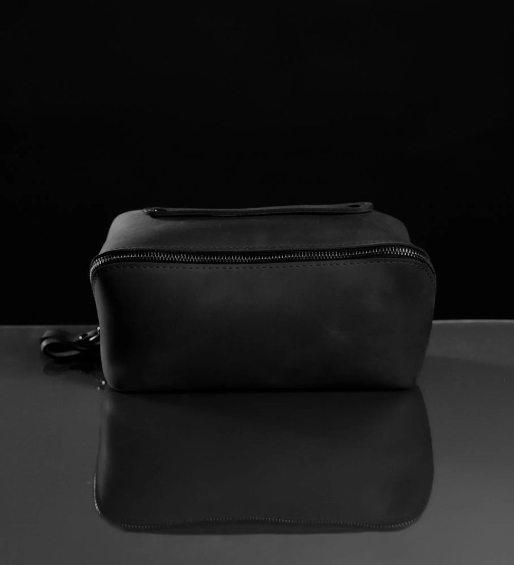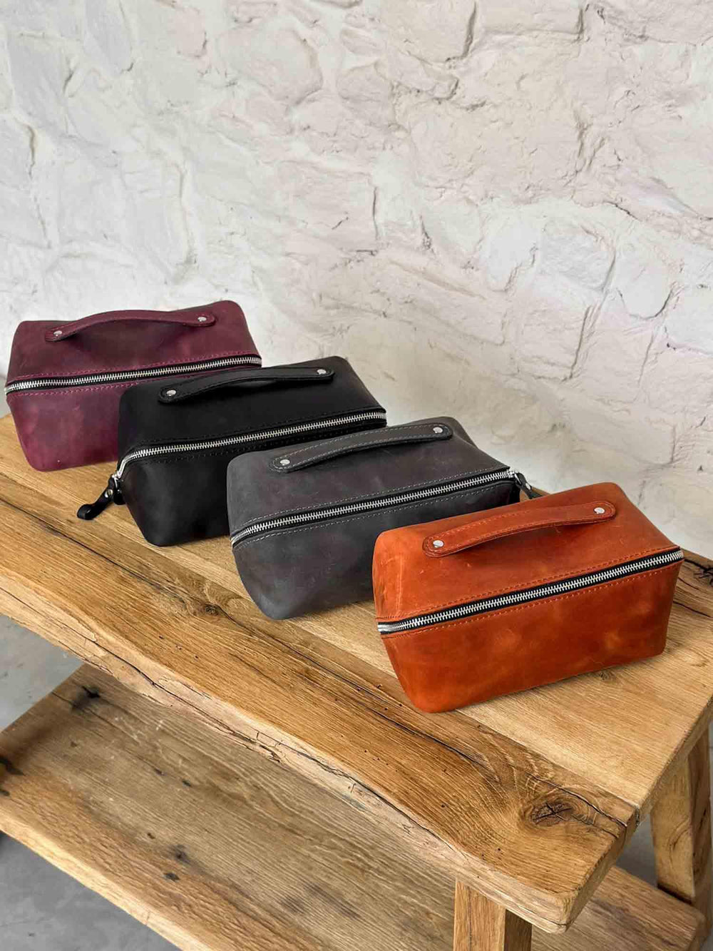 Ця косметичка ручної роботи виготовлена з натуральної вощеної шкіри Crazy Horse, яка з часом набуває благородної патини. Її поверхня з матовим ефектом має природну фактуру, а сама косметичка відзначається надійністю, практичністю та зручністю у використанні. Підходить як для повсякденного користування, так і для подорожей.