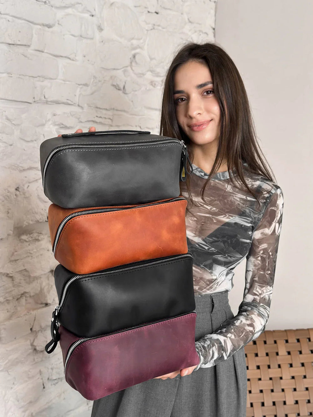Зверніть увагу: кожна косметичка має унікальний відтінок і фактуру через природну обробку шкіри Crazy Horse. Колір може дещо відрізнятися залежно від налаштувань екрана.