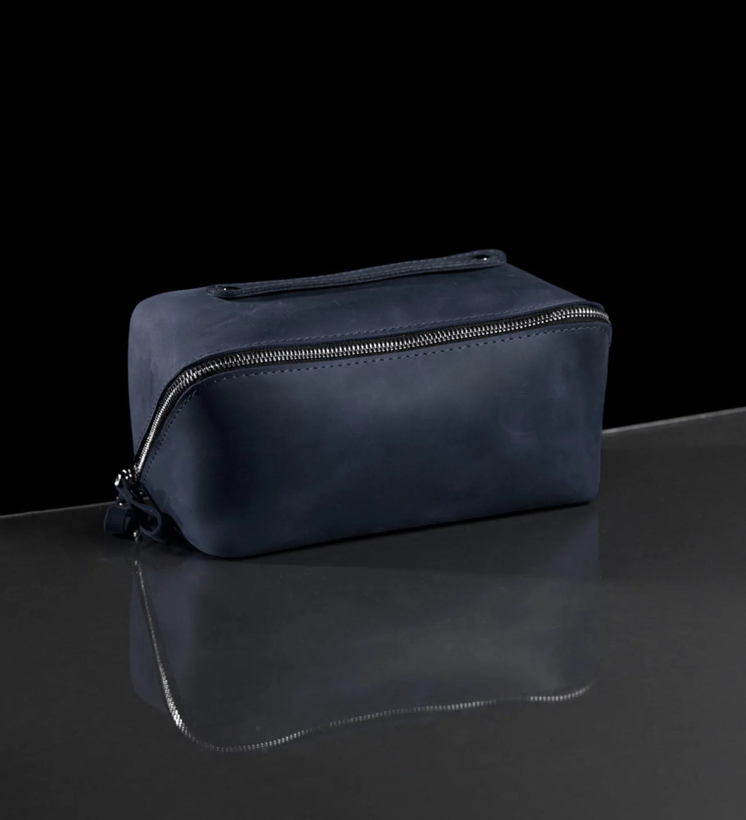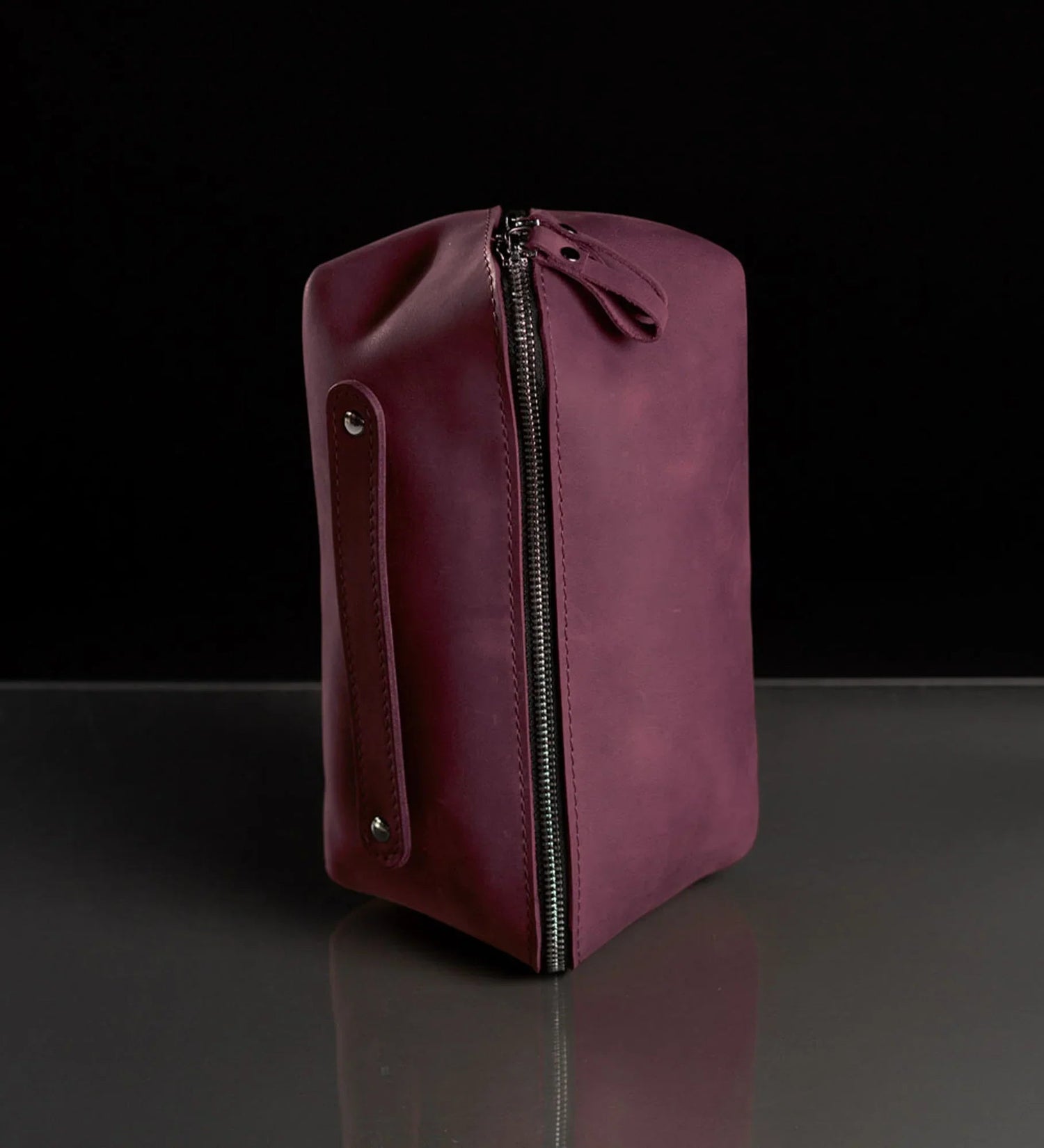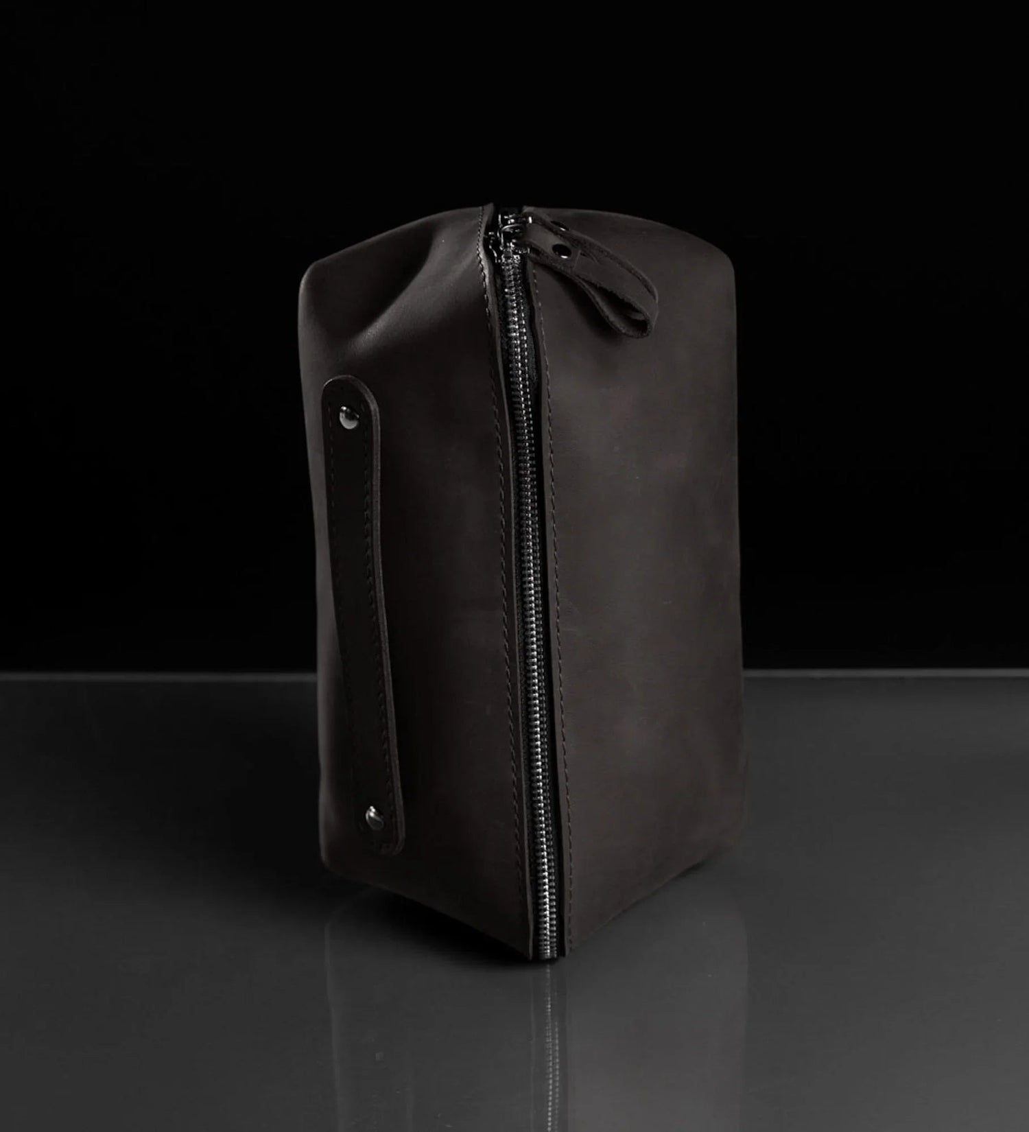 Ця косметичка ручної роботи виготовлена з натуральної вощеної шкіри Crazy Horse, яка з часом набуває благородної патини. Її поверхня з матовим ефектом має природну фактуру, а сама косметичка відзначається надійністю, практичністю та зручністю у використанні. Підходить як для повсякденного користування, так і для подорожей.