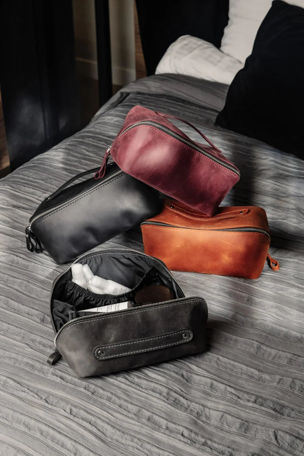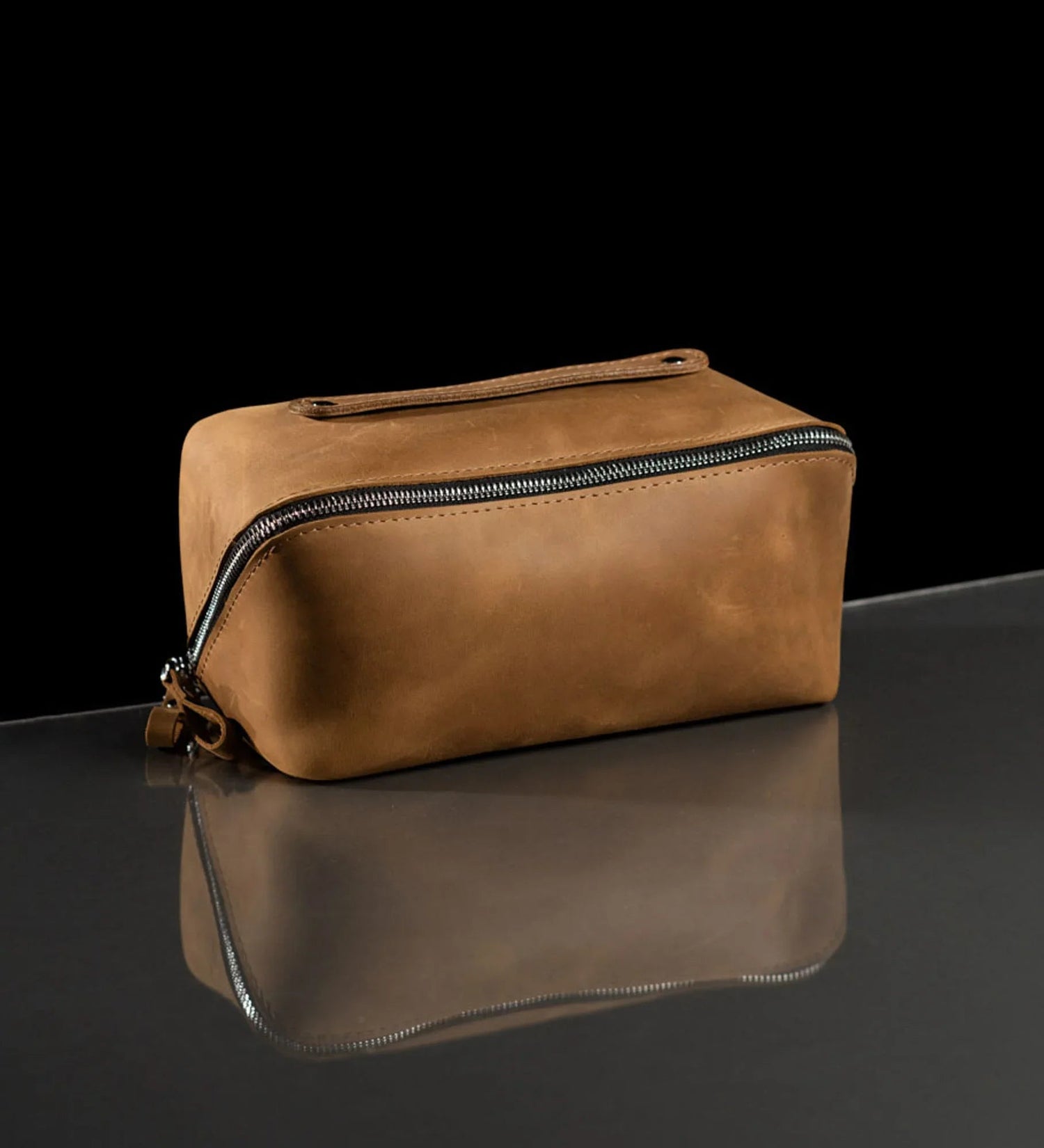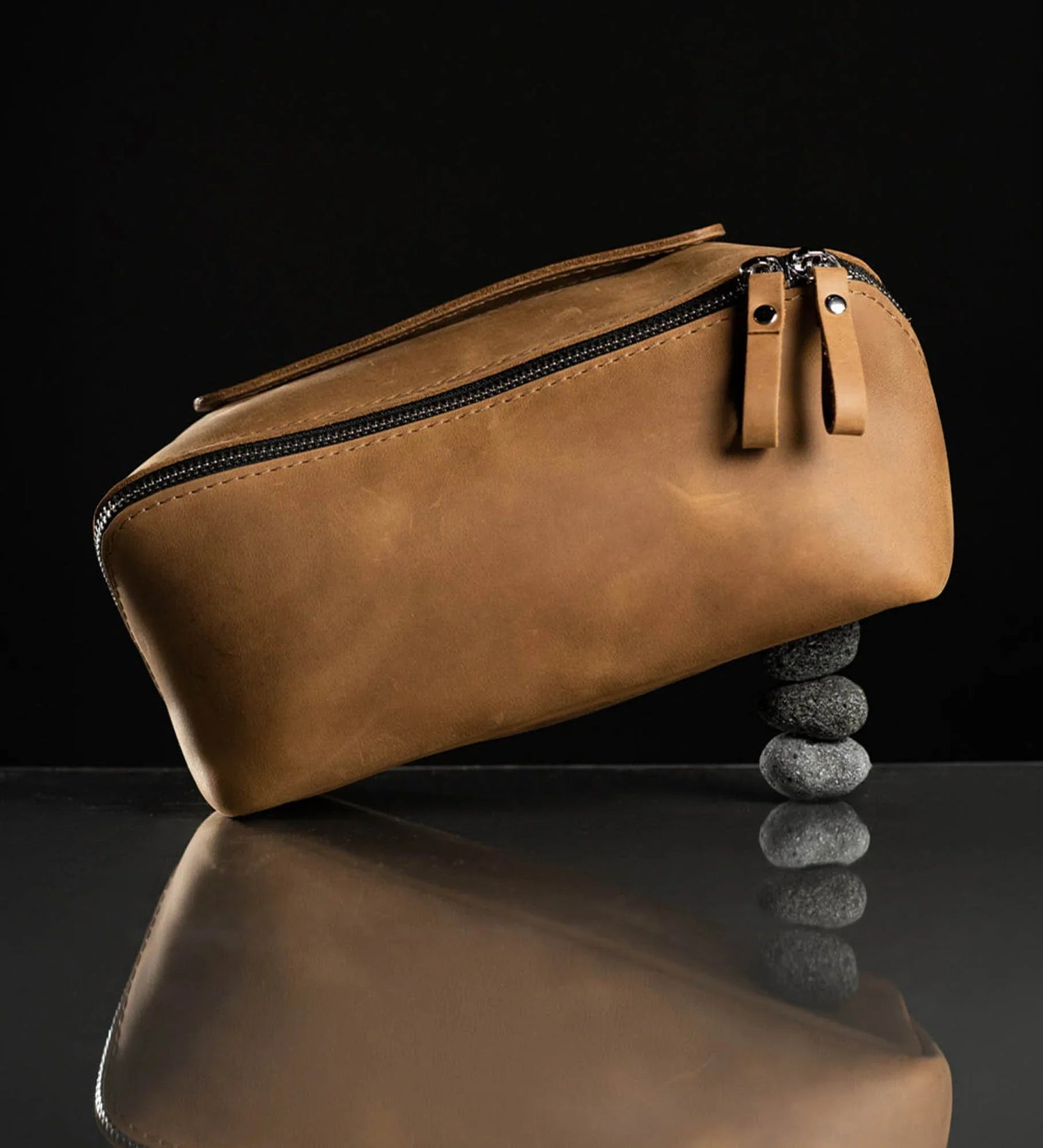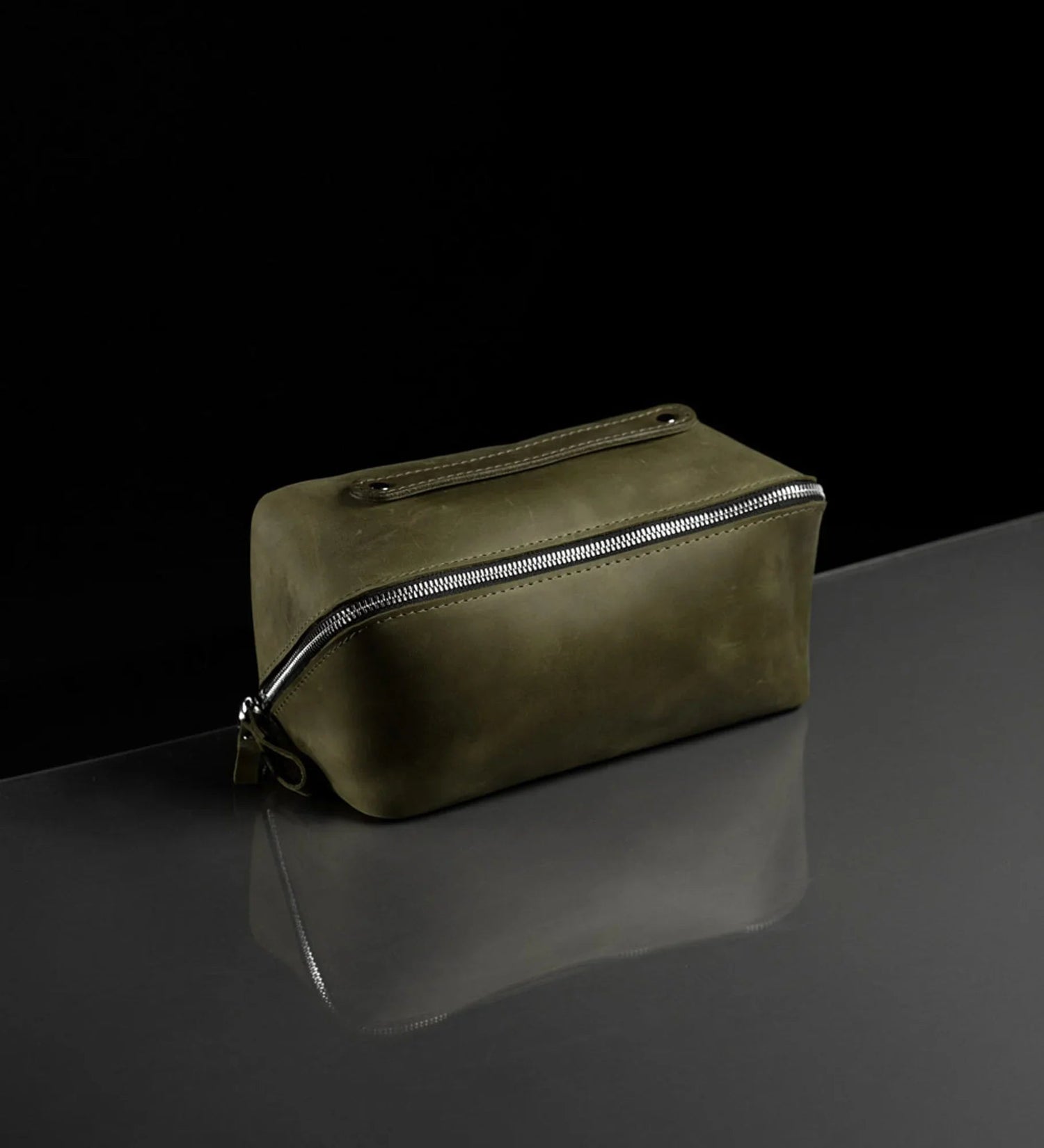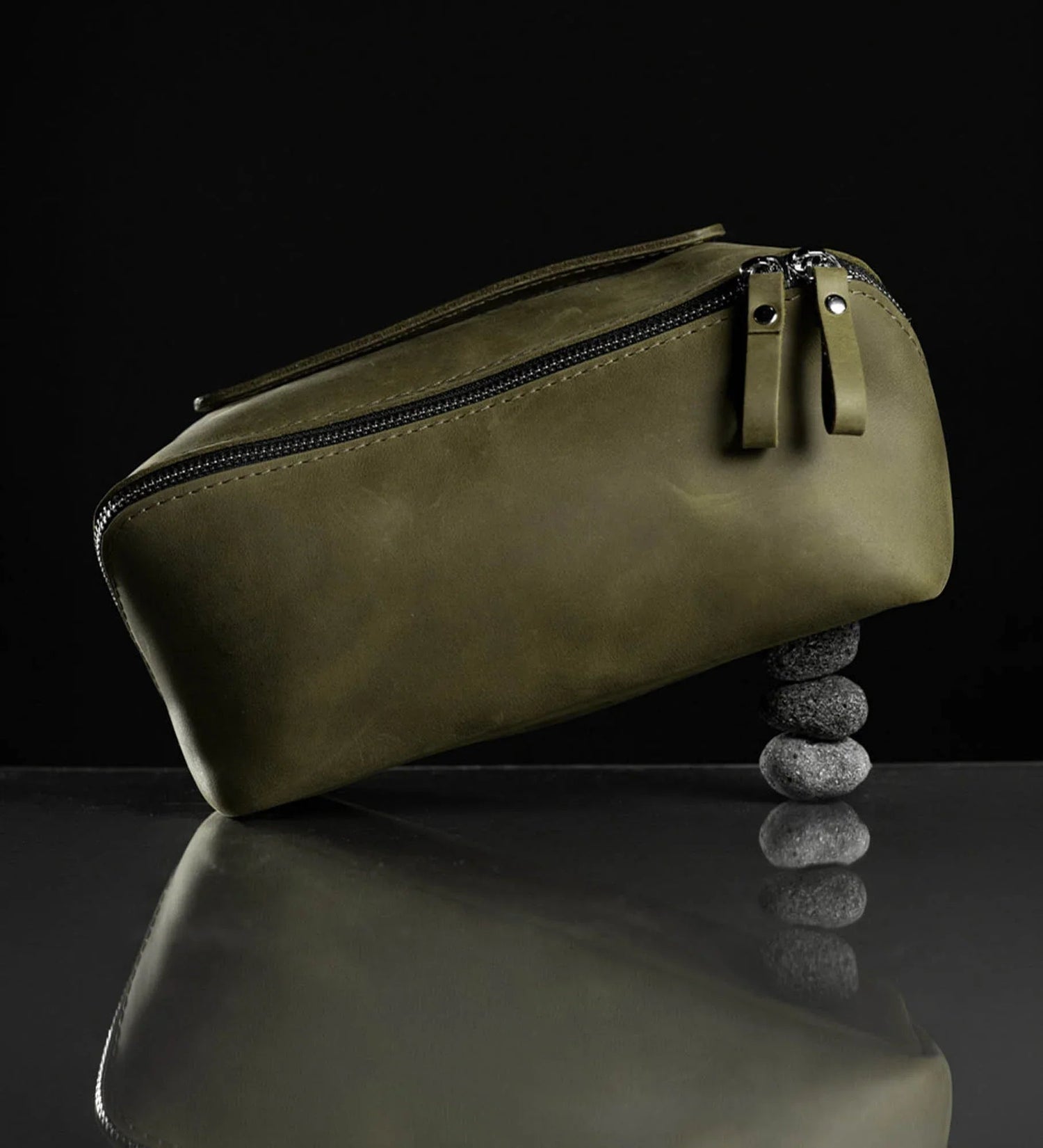 Натисніть «Додати в кошик», щоб замовити косметичку зі шкіри Crazy Horse, яка поєднує функціональність і характер ручної роботи.