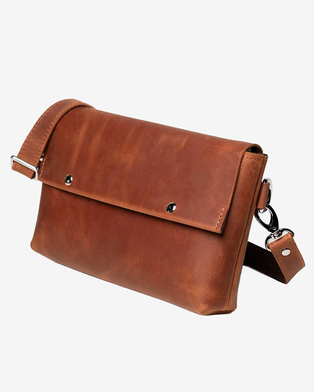 Універсальна сумка з натуральної шкіри Crazy Horse створена для тих, хто цінує функціональність і свободу руху. Носіть її як поясну сумку, перекиньте через плече або відстебніть ремінець і тримайте в руках як клатч. Вона вмістить усе необхідне – телефон, гаманець, ключі, документи – і при цьому залишиться компактною.
