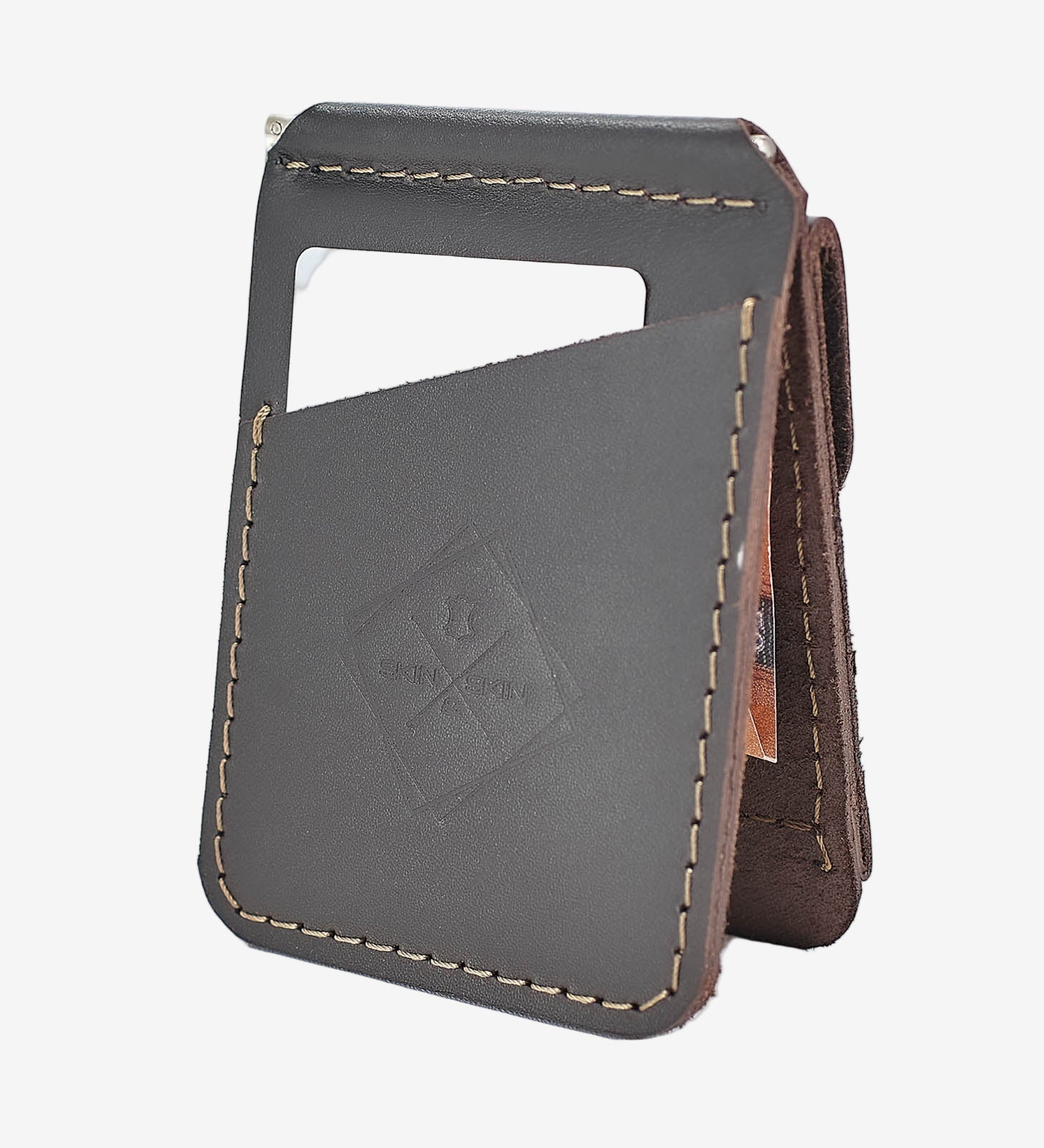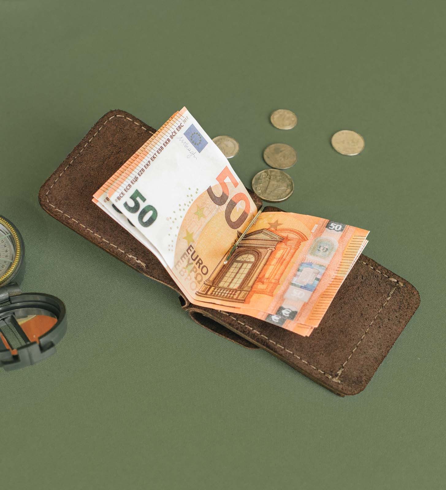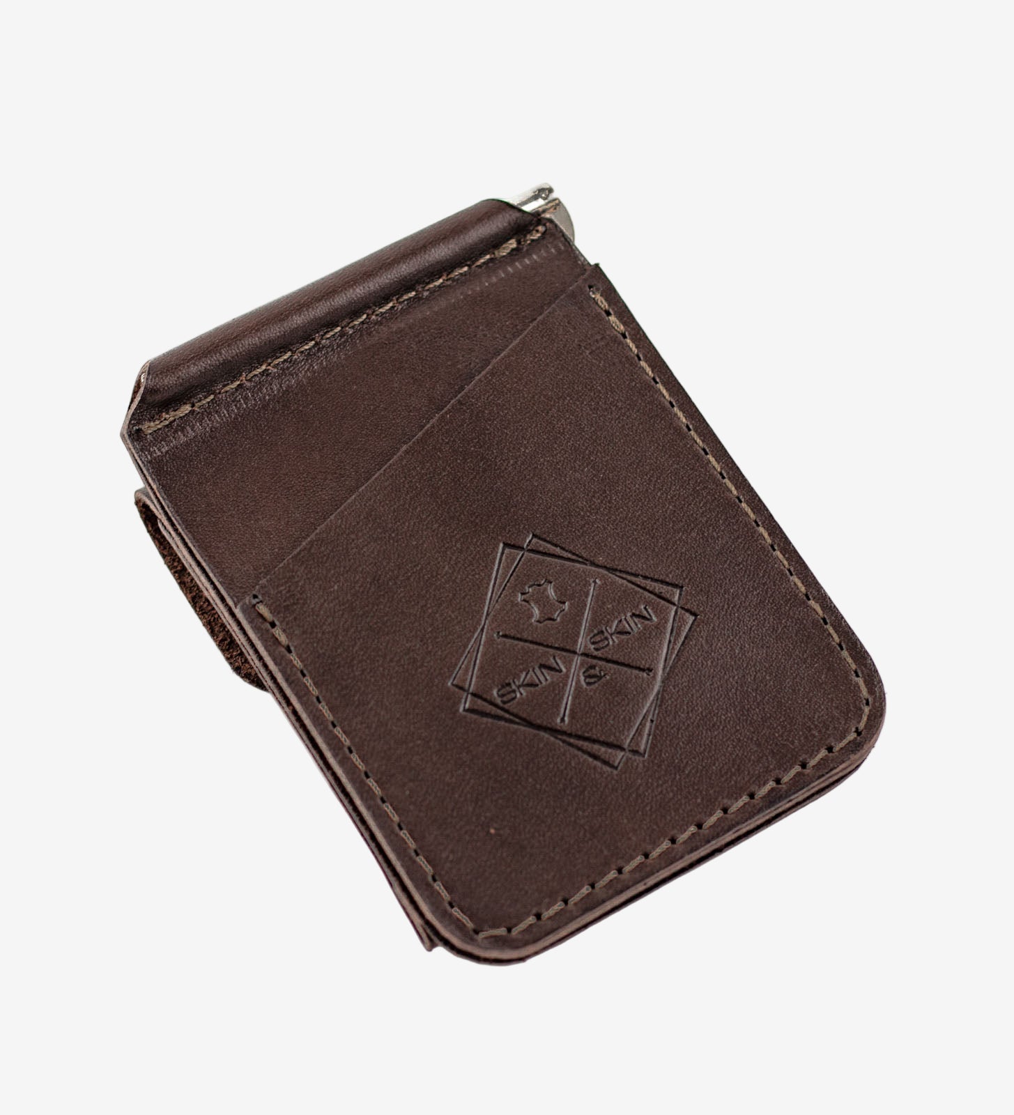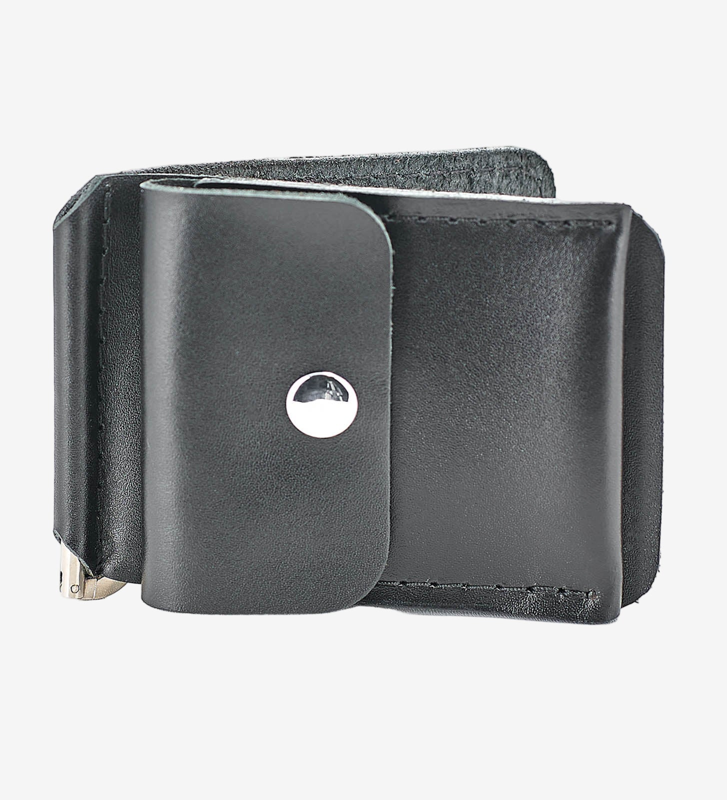 - Затискач для купюр виготовлений із натуральної шкіри. Модель неймовірно зручна у використанні – вона з легкістю поміщається навіть у кишеню брюк або джинсів.