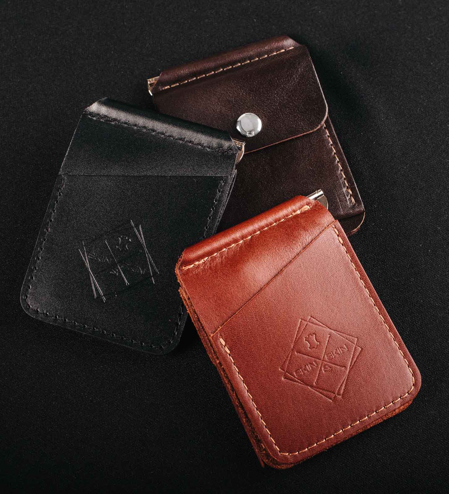 У затискачі для купюр передбачена модифікація – з двох сторін аксесуара можуть бути тільки кишеньки під карти – за вашим бажанням. Або як у класичному варіанті – модель з монетницею.