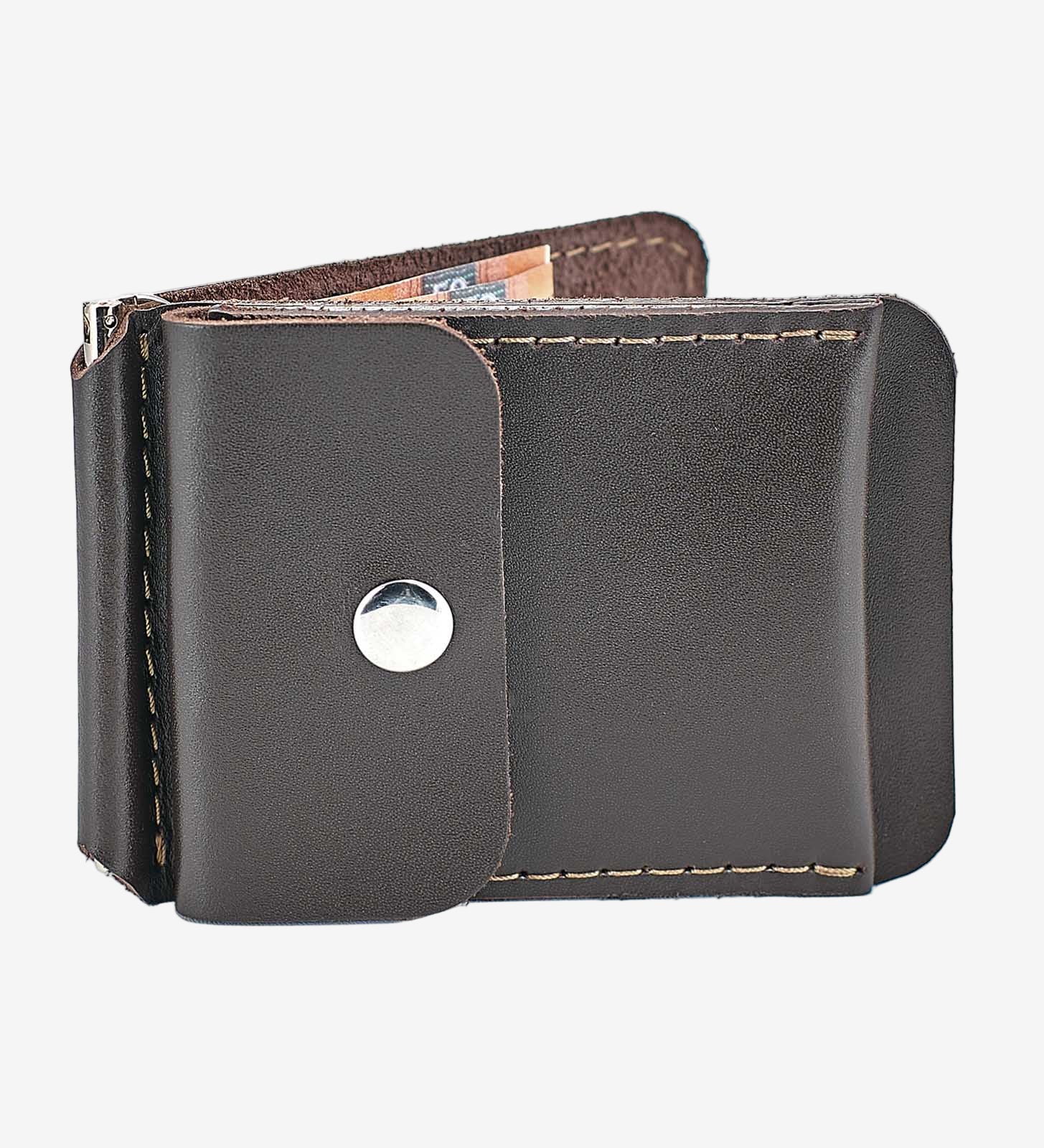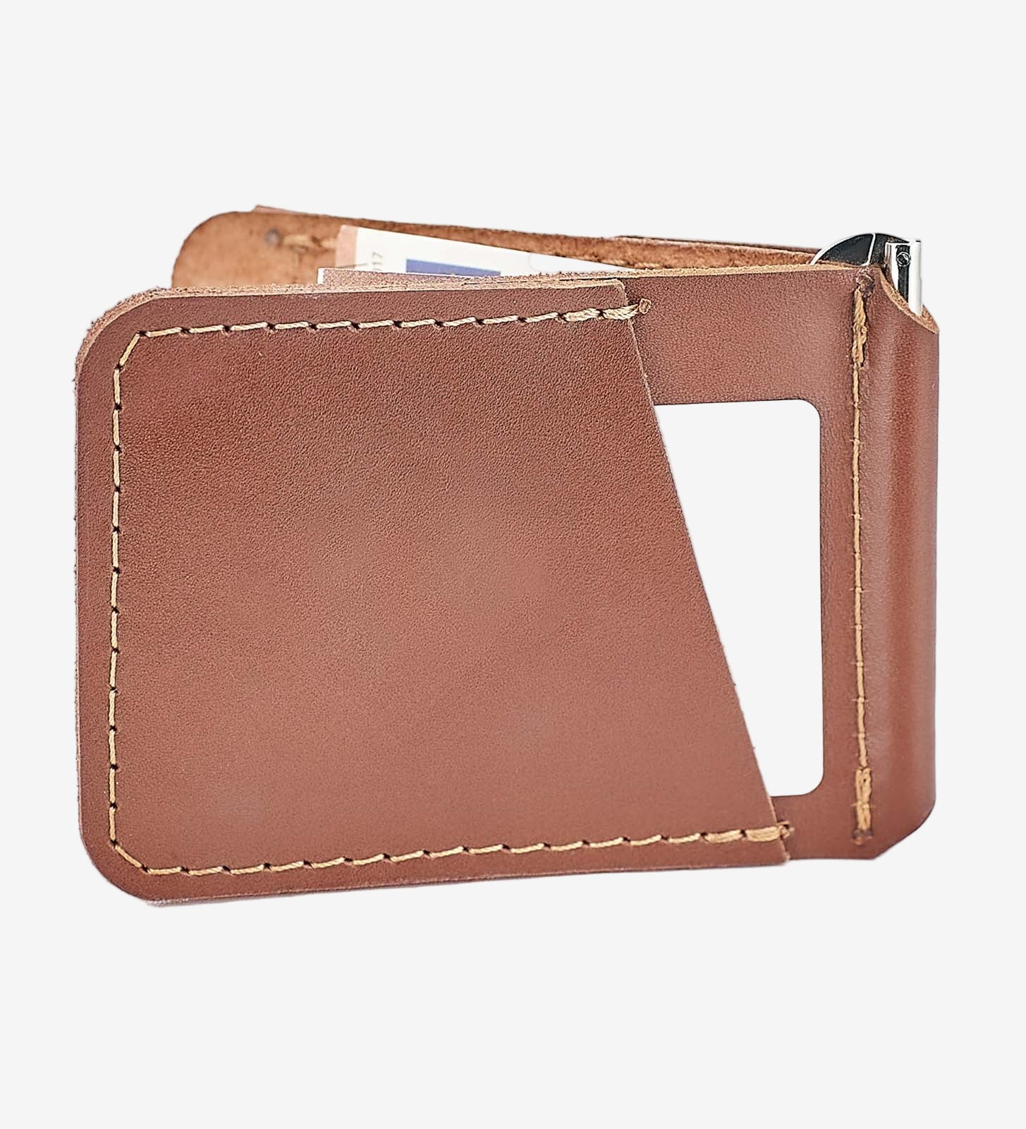 - Шкіряний затискач вміщує до 15 купюр. Усередині розташований міцний металевий тримач.