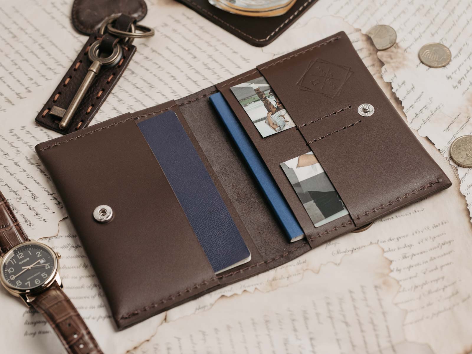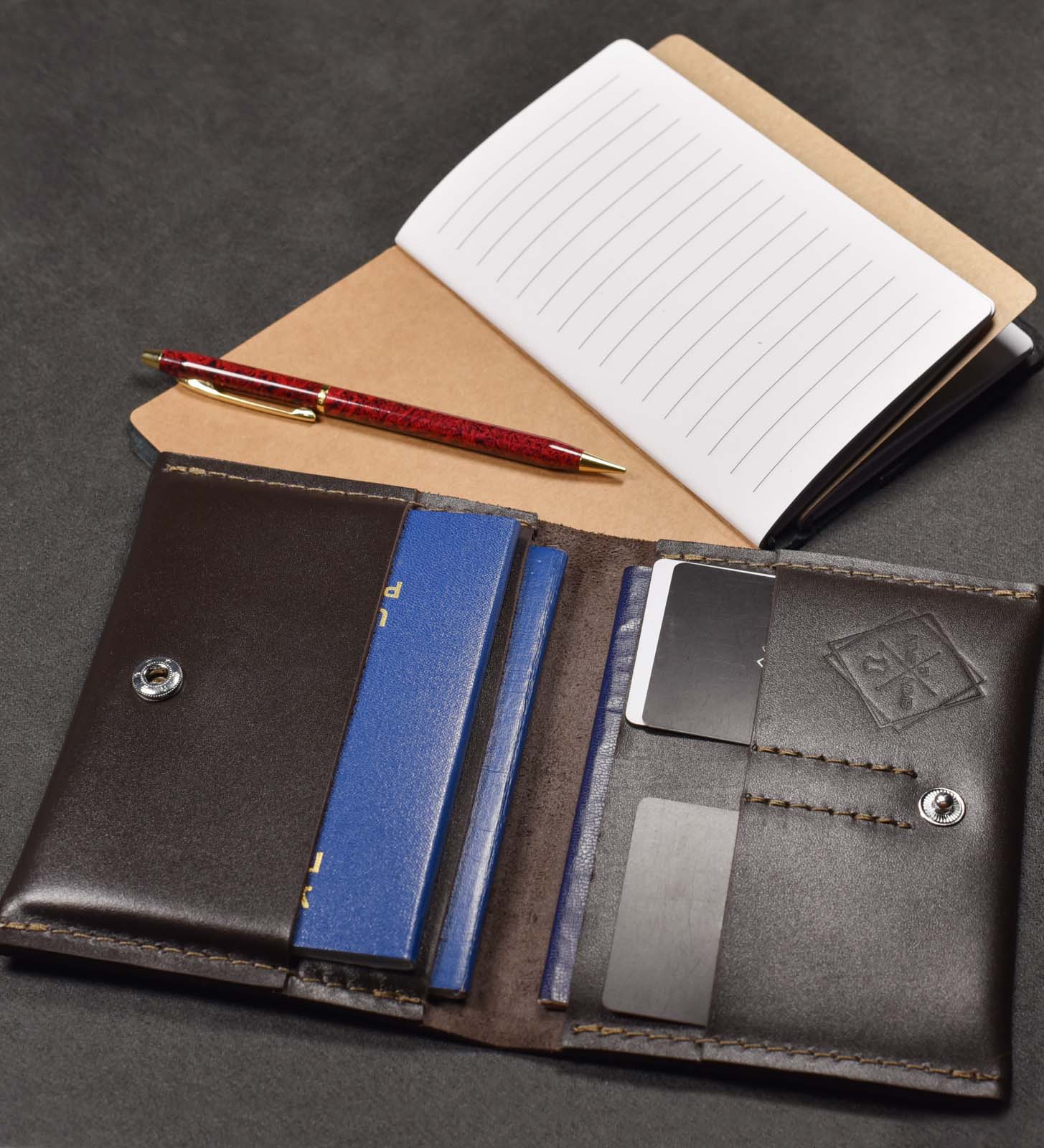 Виріб ручної роботи виготовлений із високоякісної натуральної шкіри. Це міцний матеріал, який служитиме вам протягом багатьох років. Зручний аксесуар для пари або сім'ї. Вирушивши у подорож зі своїми близькими, ви можете зберігати всі паспорти в одному місці. А також кредитні картки, візитівки, які використовуєте постійно або взяли про всяк випадок.