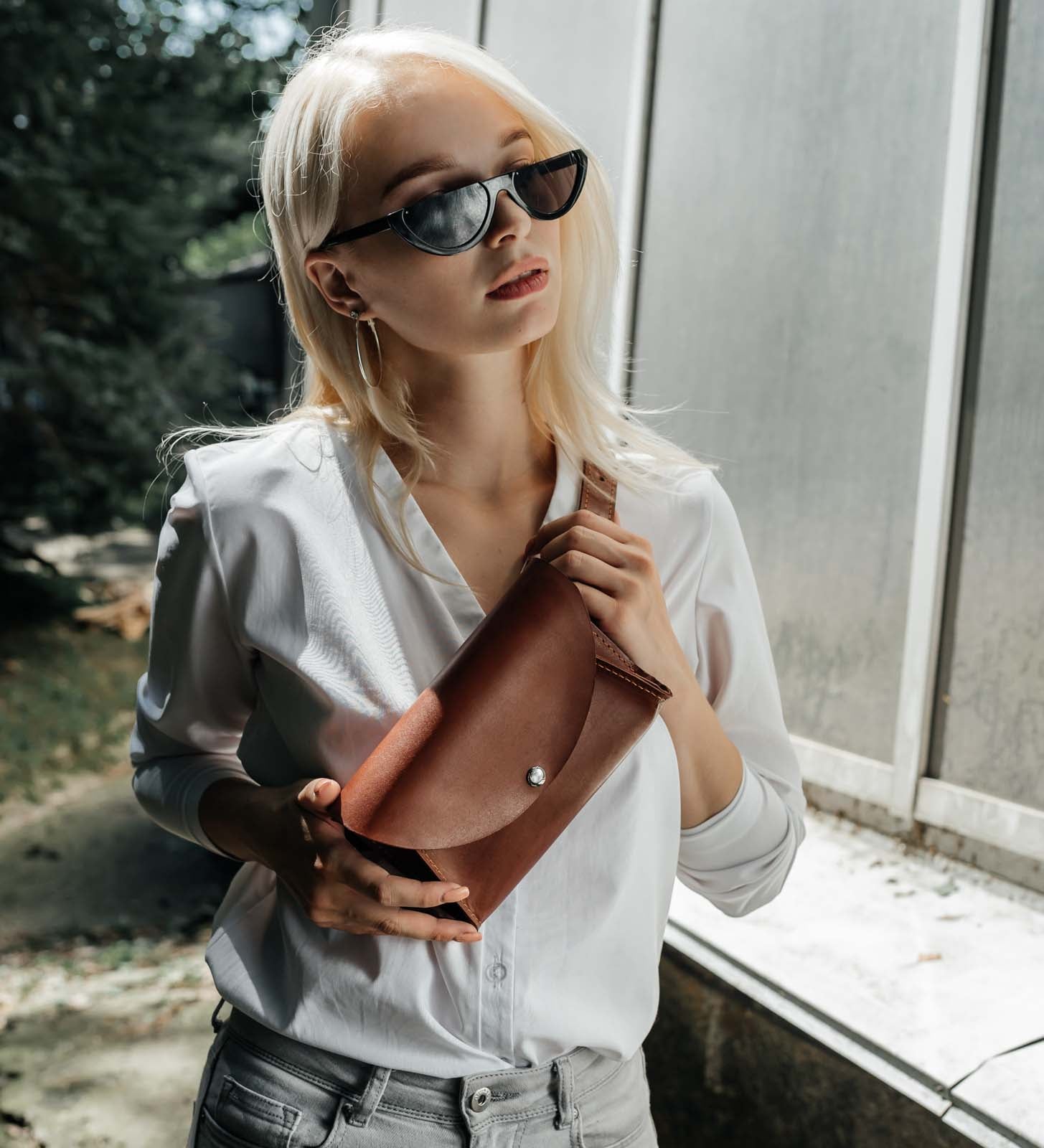 У каталозі шкіряна сумка на пояс представлена ​​в чорному, рожевому, червоному, бордовому, зеленому, сірому, коричневому, коньячному кольорах.