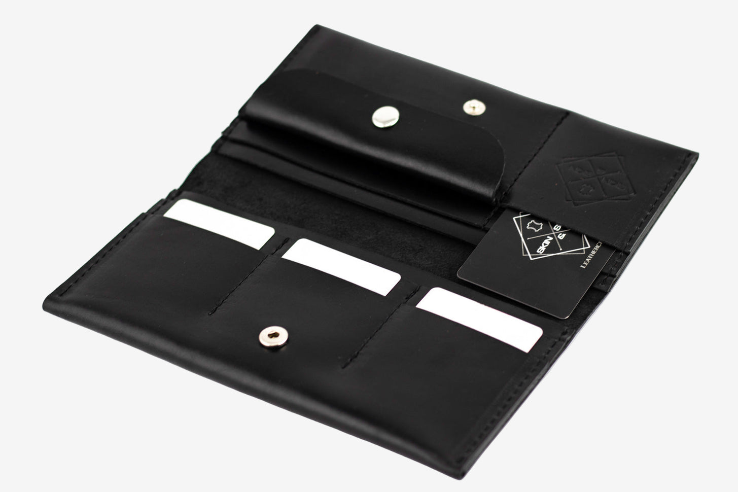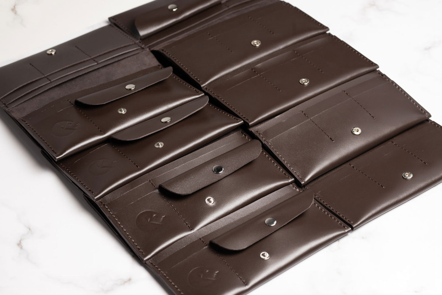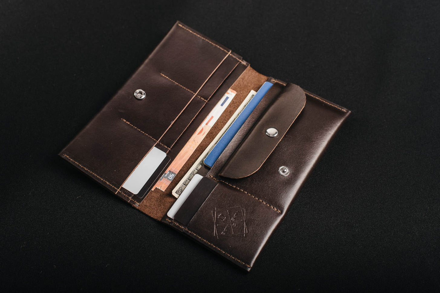 2. Аксесуар має 2 відділи під купюри, 2 відділи під паспорт, 8 слотів під карти (в кожен із яких можна помістити по 2-3 штуки), кишеню для монет і дрібниць.
