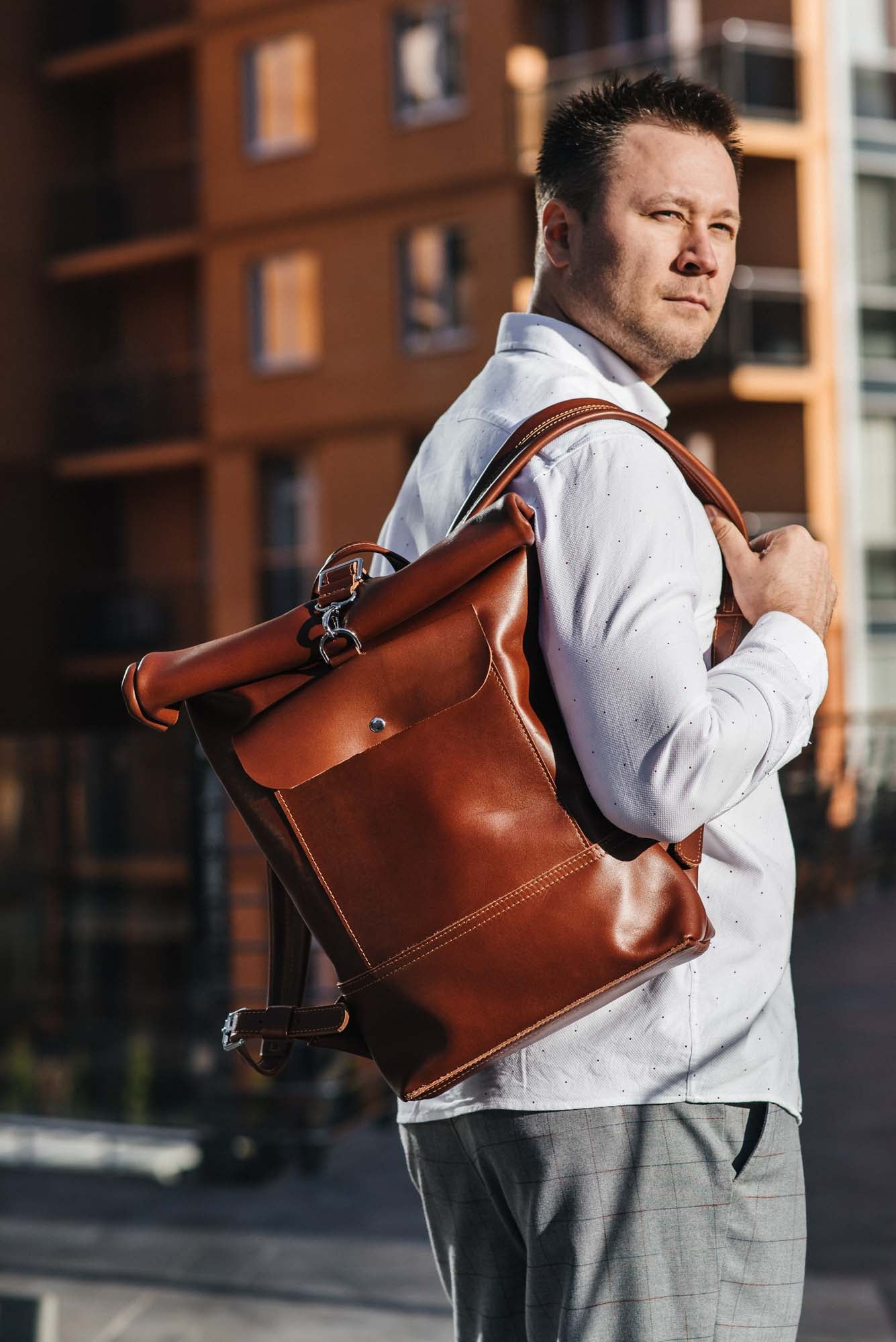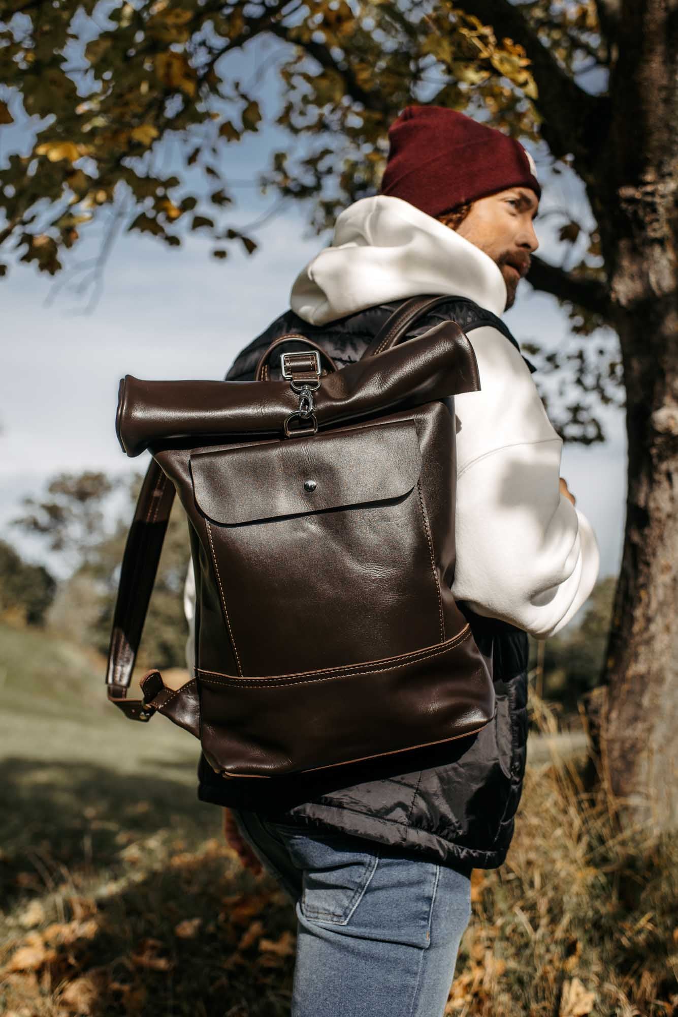 Шкіряний рюкзак RollTop – гідний компаньйон на роботі та в подорожах