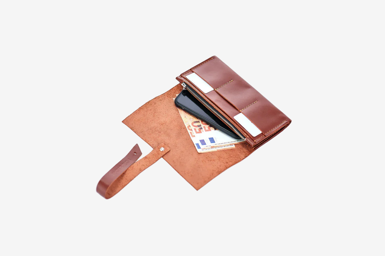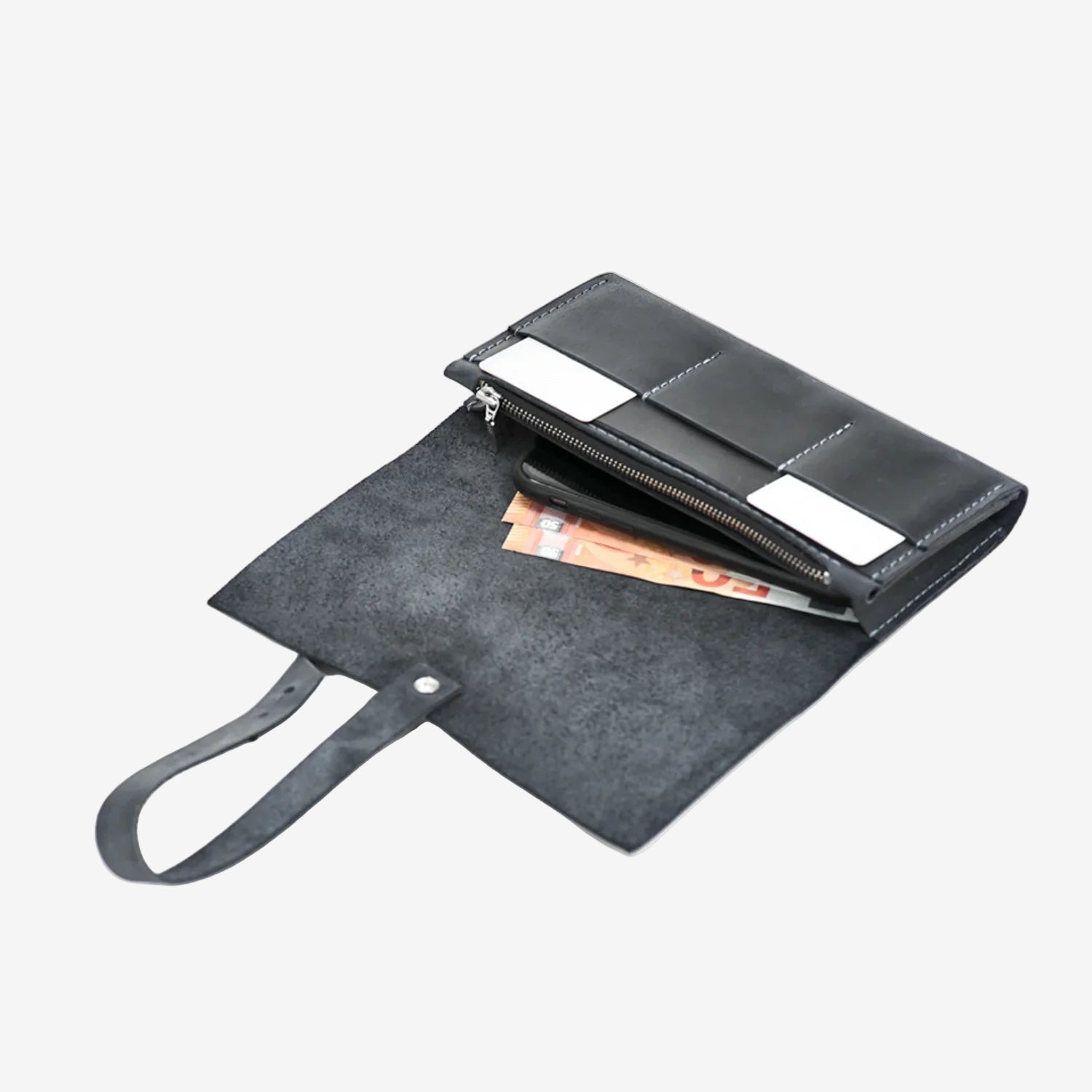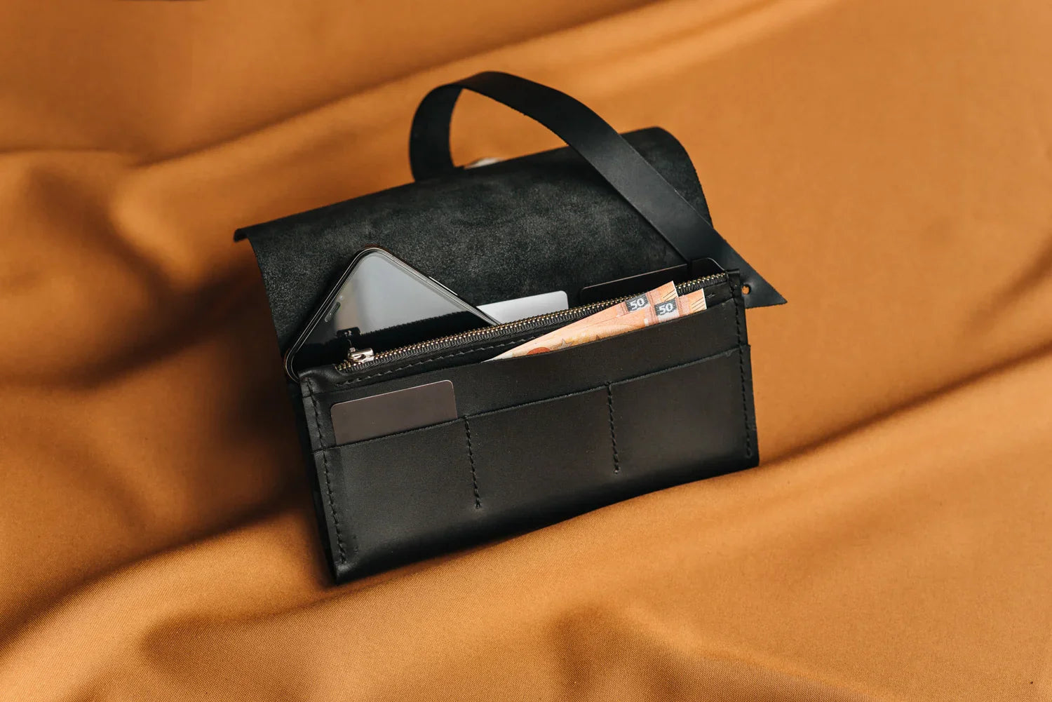 - У ньому є 2 відділення під купюри та смартфони.