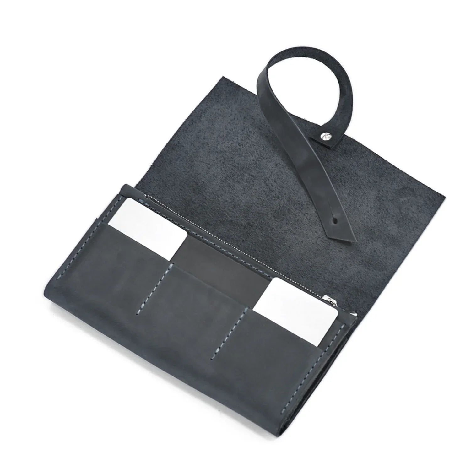 Завдяки габаритам портмоне з натуральної шкіри можна використовувати в якості клатчу. Він стане вірним помічником у поїздках, походах у гості та навіть на вечірках. Аксесуар застібається на кобурну кнопку та закривається на клапан, завдяки чому надійно зберігає гроші, банківські картки та цінні дрібниці.