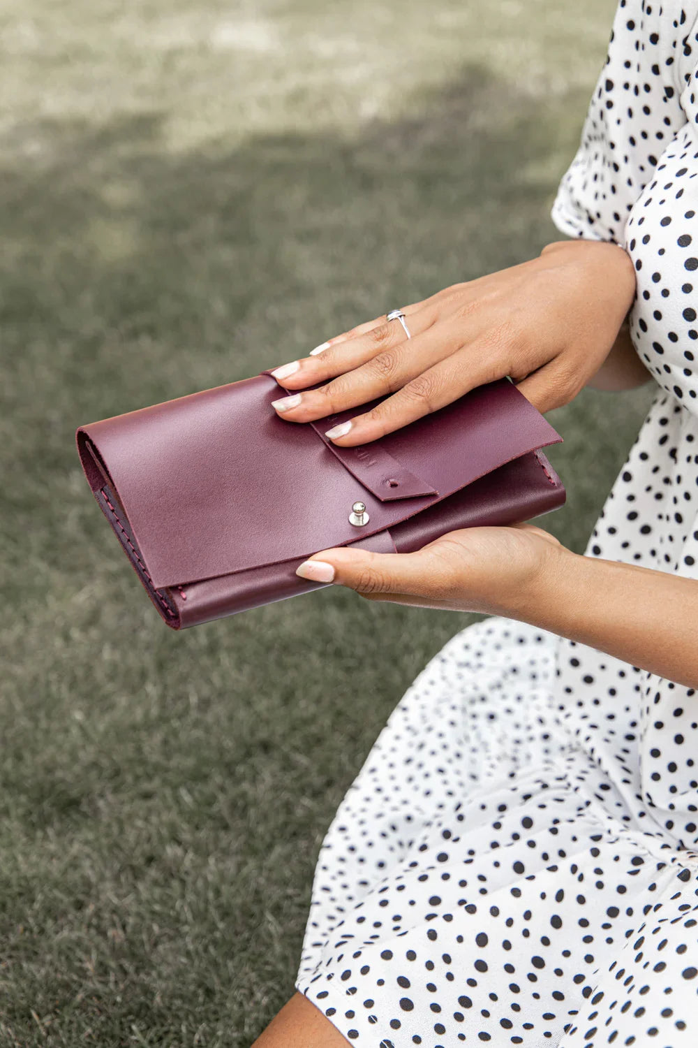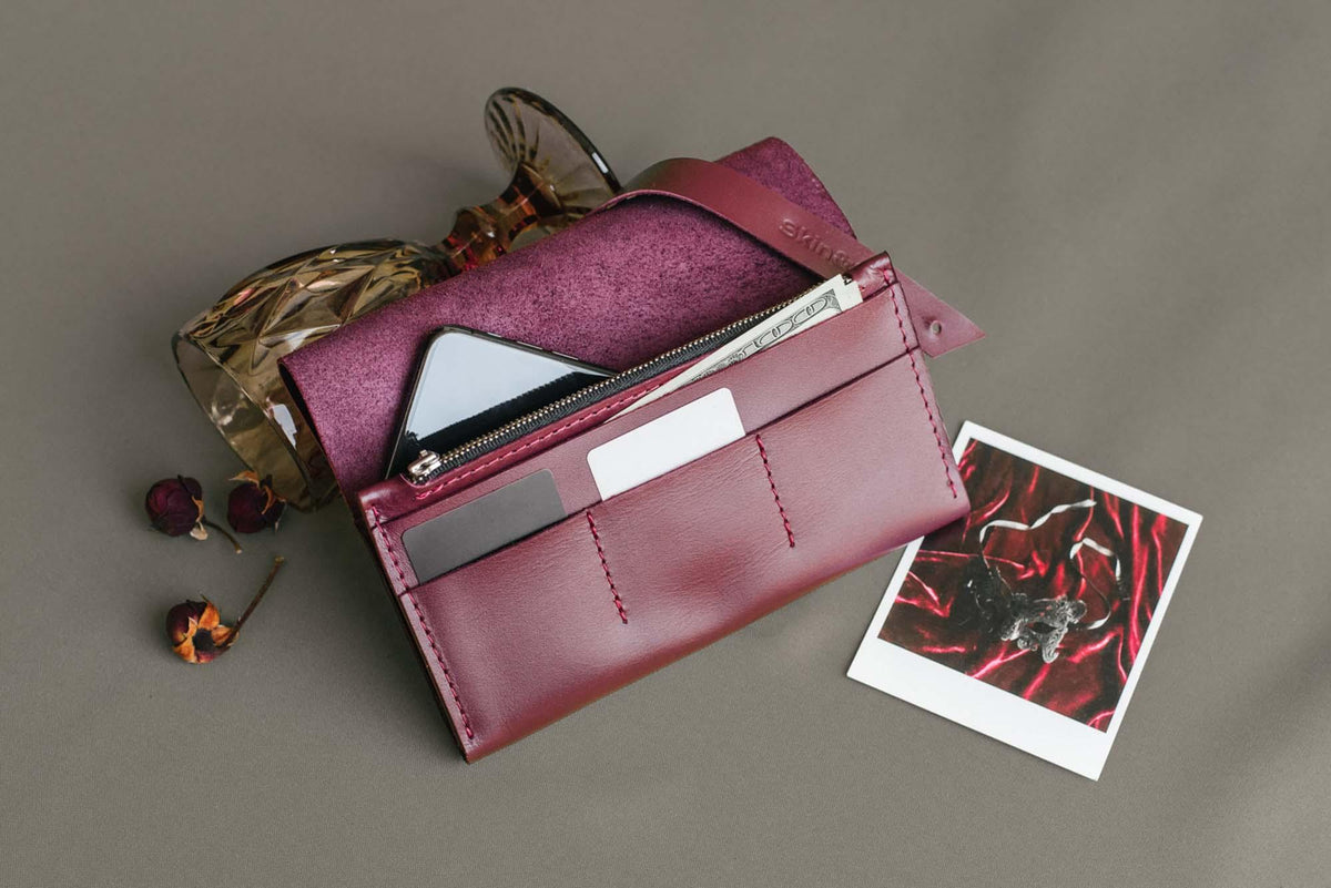 Завдяки габаритам портмоне з натуральної шкіри можна використовувати в якості клатчу. Він стане вірним помічником у поїздках, походах у гості та навіть на вечірках. Аксесуар застібається на кобурну кнопку та закривається на клапан, завдяки чому надійно зберігає гроші, банківські картки та цінні дрібниці.