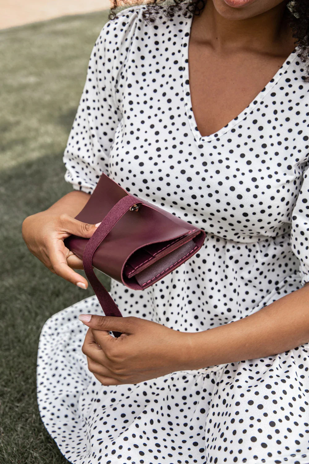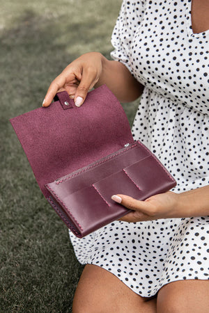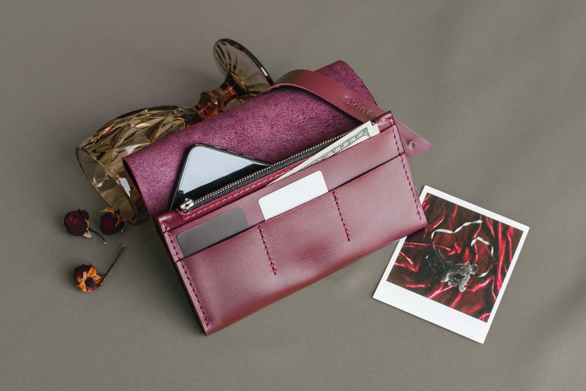 Завдяки габаритам портмоне з натуральної шкіри можна використовувати в якості клатчу. Він стане вірним помічником у поїздках, походах у гості та навіть на вечірках. Аксесуар застібається на кобурну кнопку та закривається на клапан, завдяки чому надійно зберігає гроші, банківські картки та цінні дрібниці.