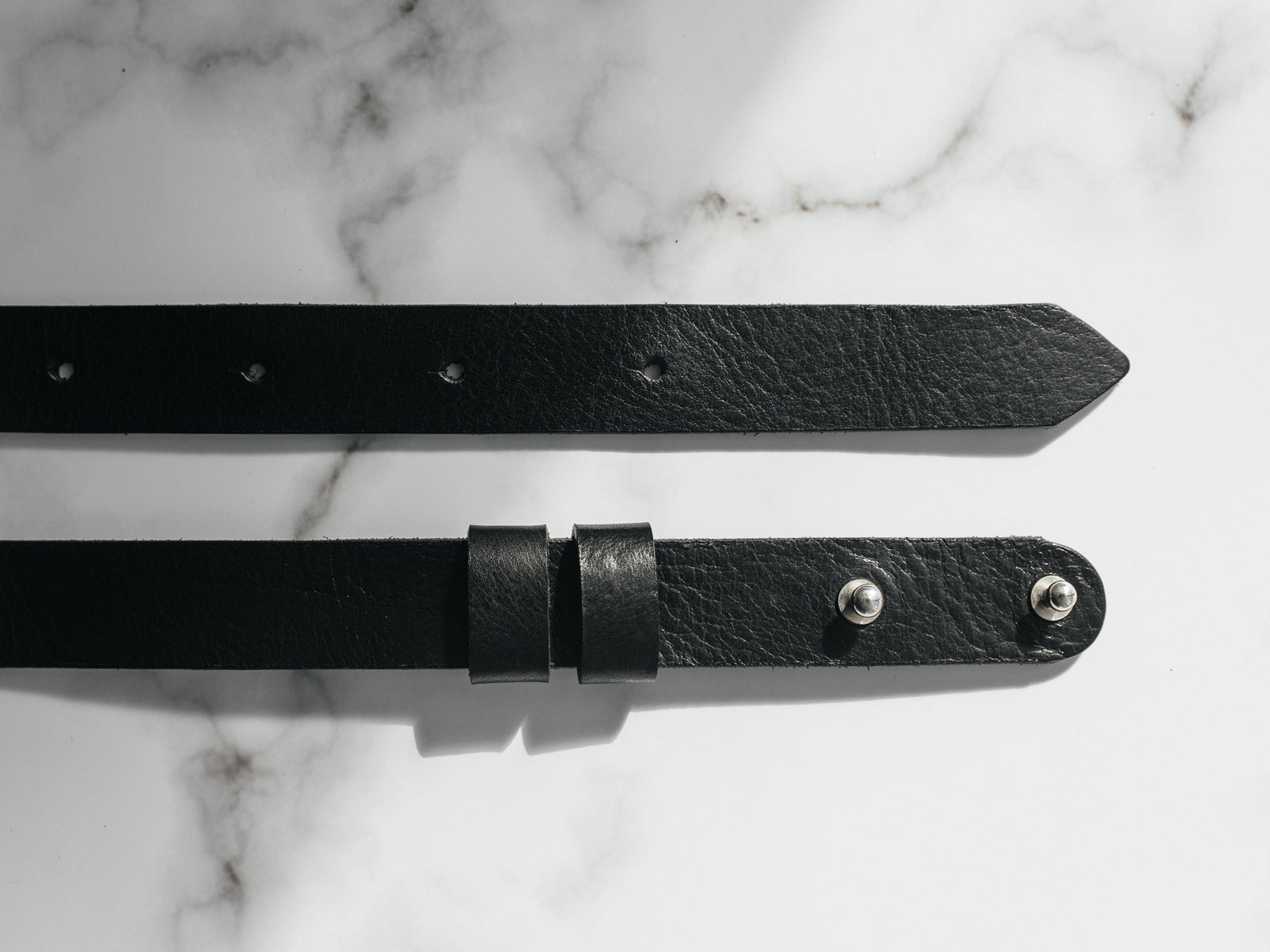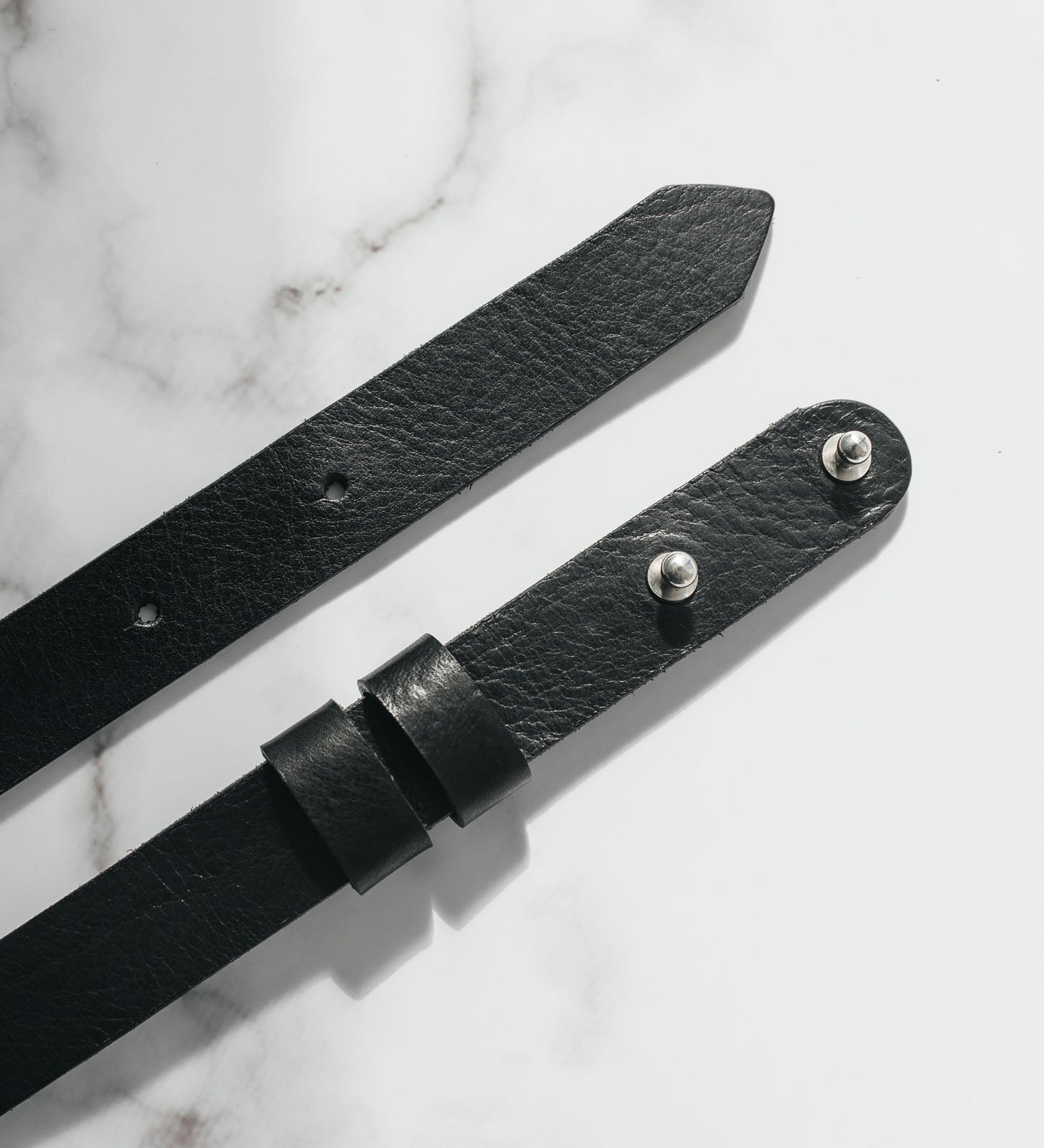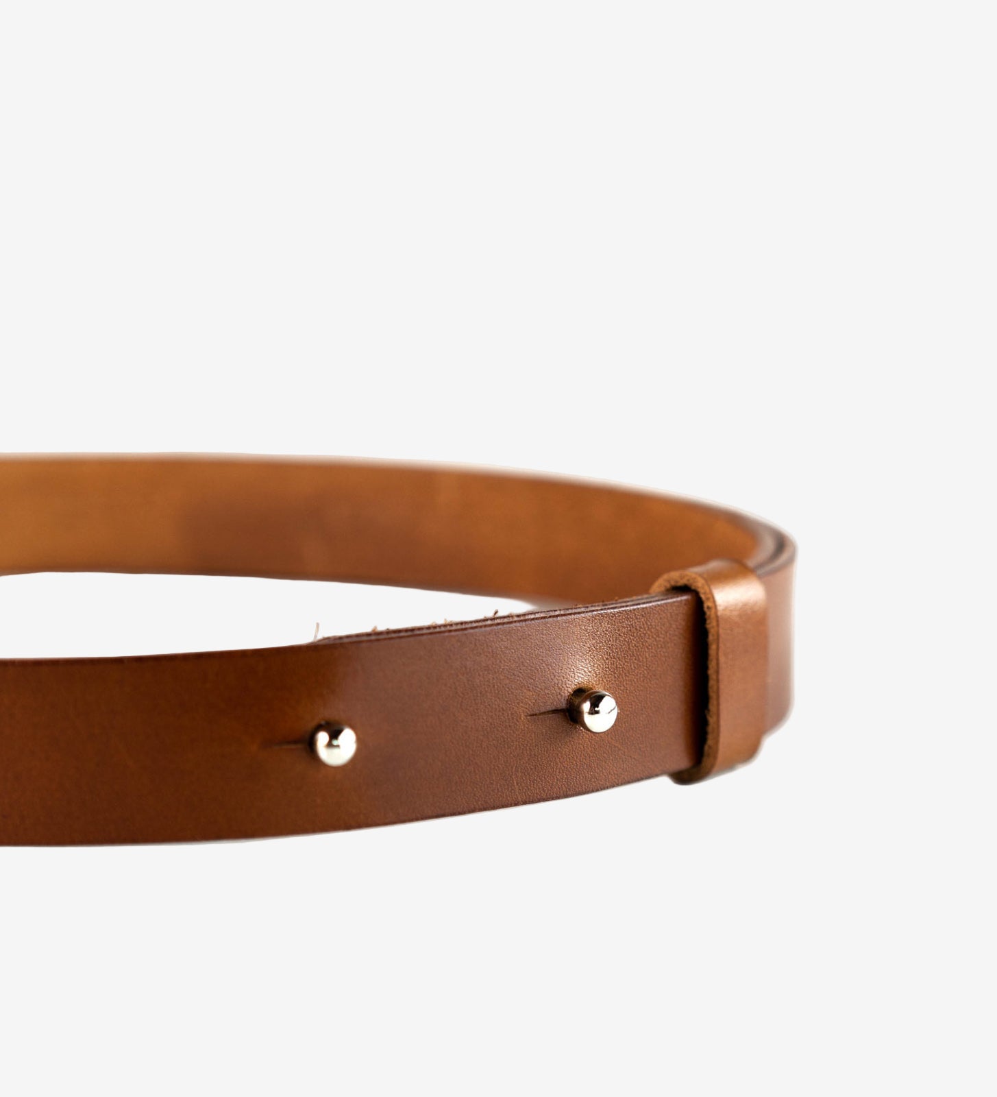 Виготовлений із цілісного шматка шкіри рослинного дублення товщиною 3.5–4 мм, ремінь має гладку поверхню, приємну фактуру й благородний природний блиск. Цей тип шкіри з часом розкриває свій характер, набуваючи індивідуальної патини. Краї ременя ретельно заполіровані без прошивки, що підкреслює мінімалістичний дизайн і підвищує довговічність, запобігаючи розшаруванню.