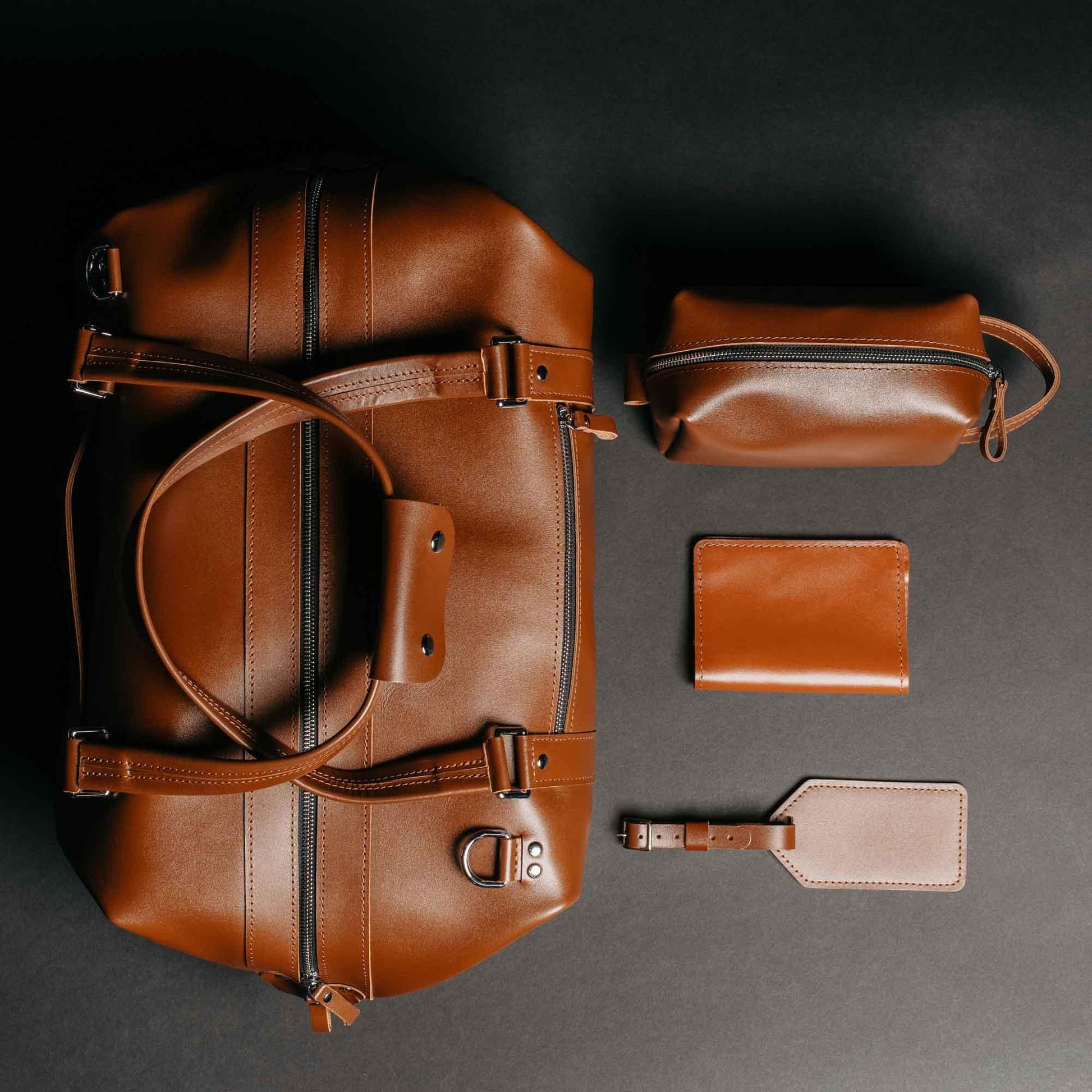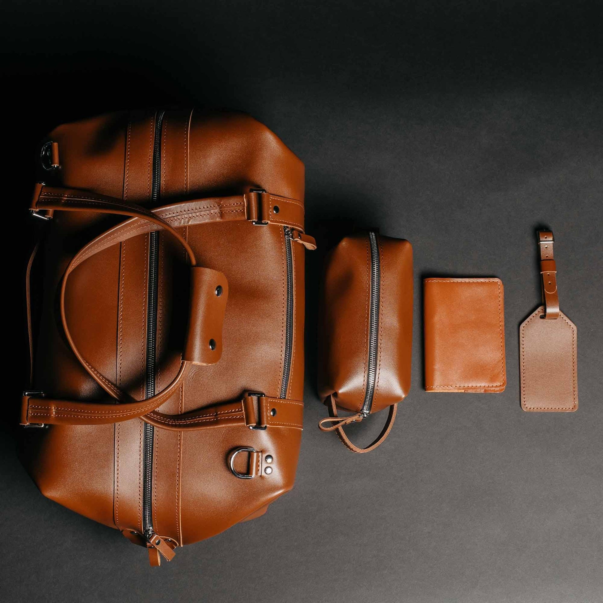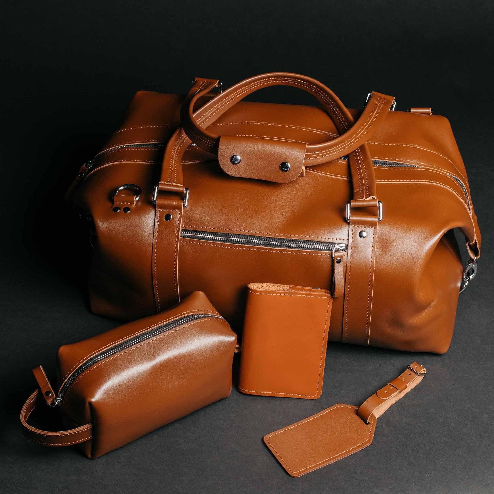 Повний шкіряний тревел-сет – дорожня сумка, косметичка + безкоштовна обкладинка для паспорта та багажна бірка