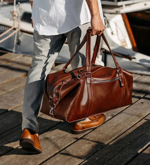 Містка, міцна та практична – виготовлена зі 100% натуральної шкіри top grain. Доступна у двох розмірах (28L / 34L), має зовнішні й внутрішні кишені, підкладку, посилене шкіряне дно, металеві ніжки для захисту й регульований плечовий ремінь. Створена для довговічності та зручності під час подорожей. -