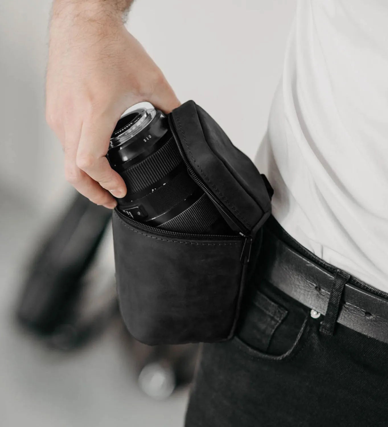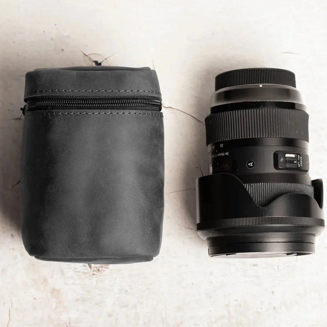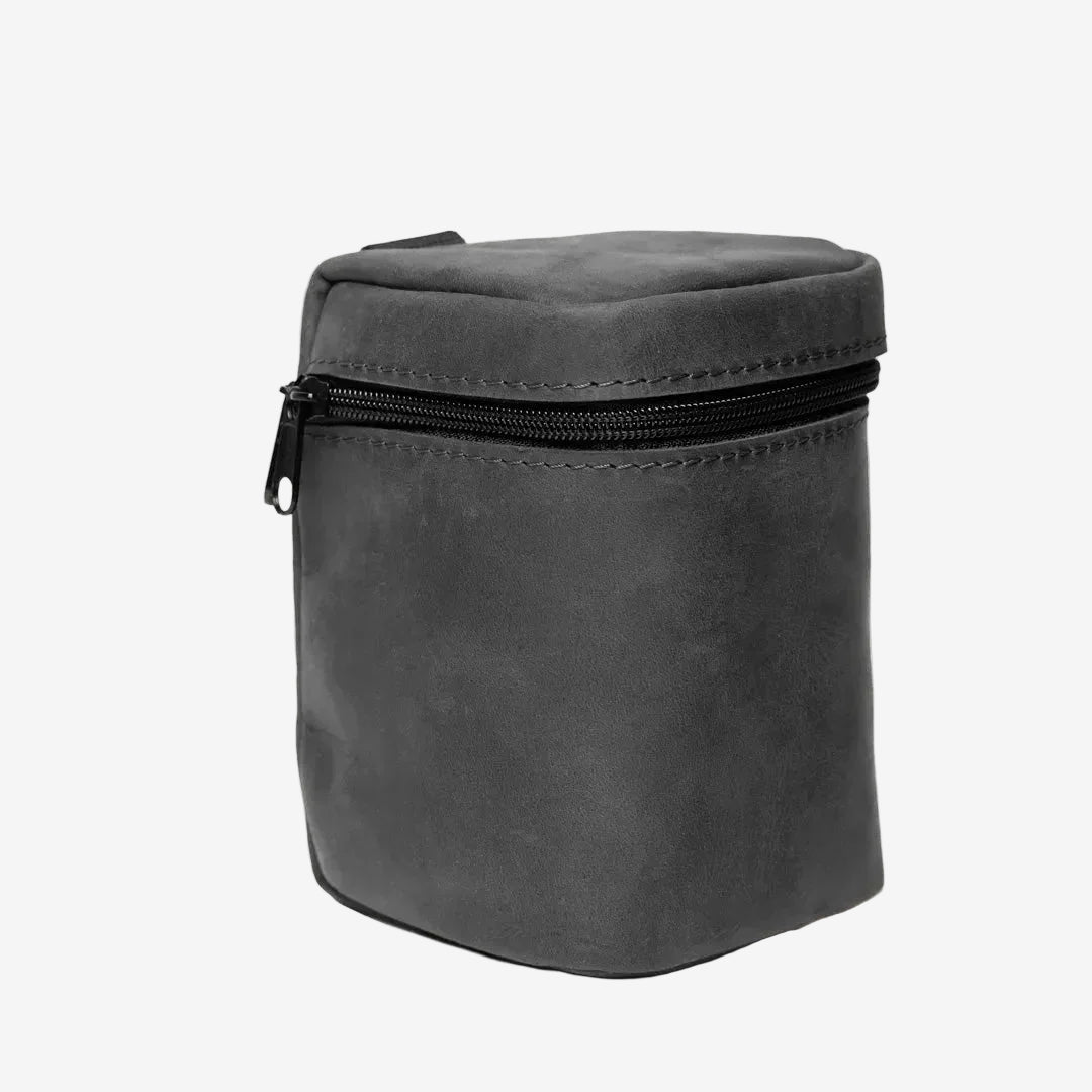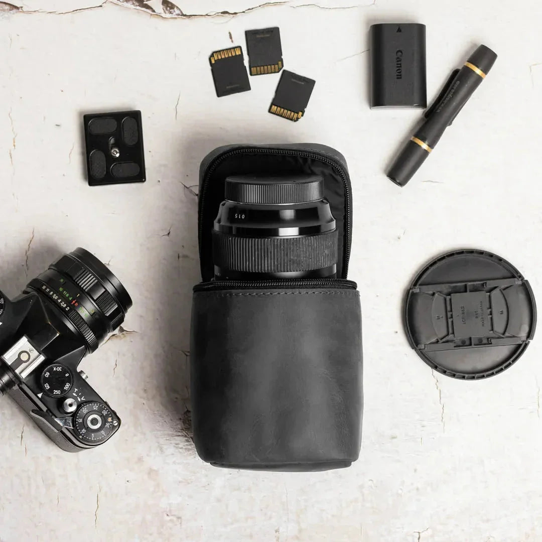 Distressed Leather Camera Lens Pouch | Black - Skin and Skin